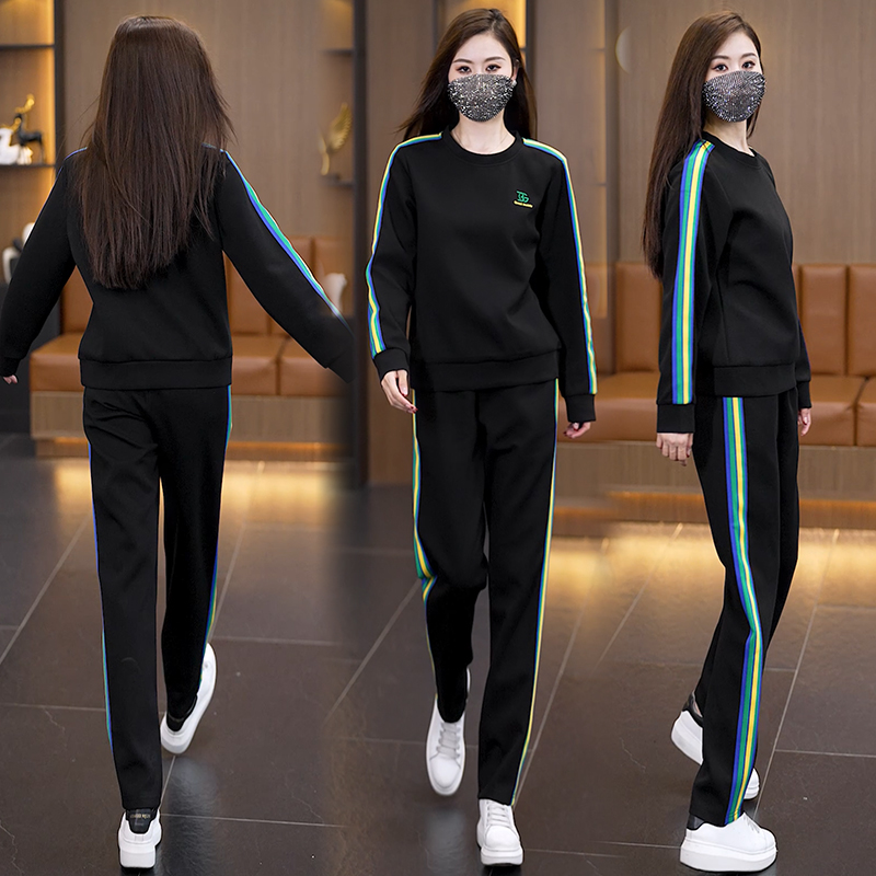 빅 사이즈 루즈핏 슬림해 보이는 투피스 슈트 2026 새로운 가을 패션 외국 가스 운동 캐주얼 투피스 세트