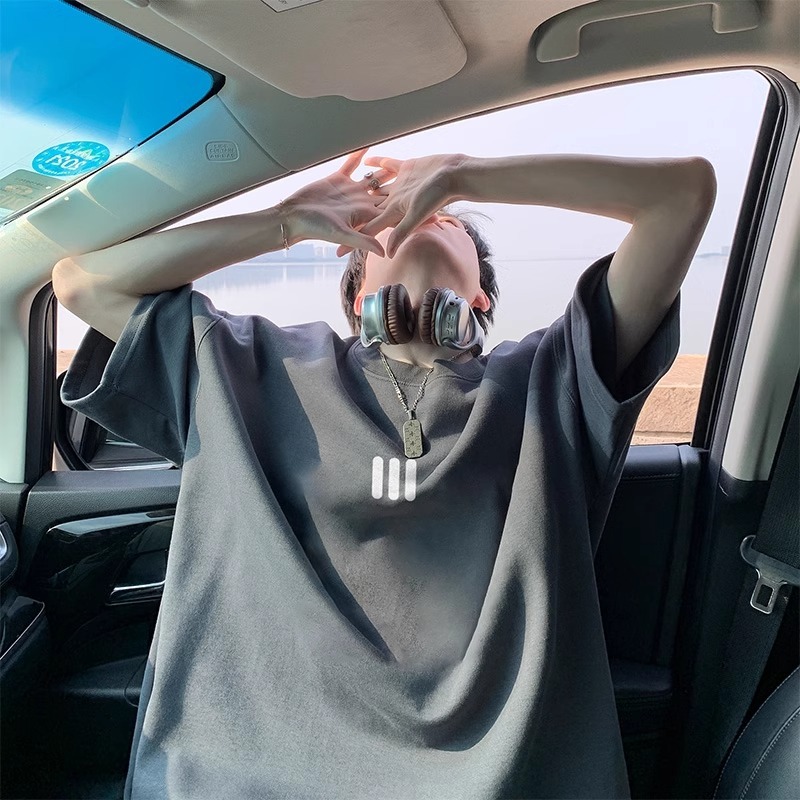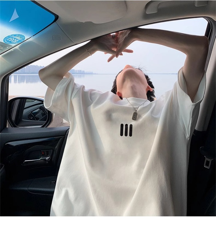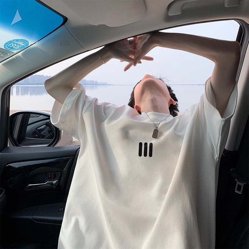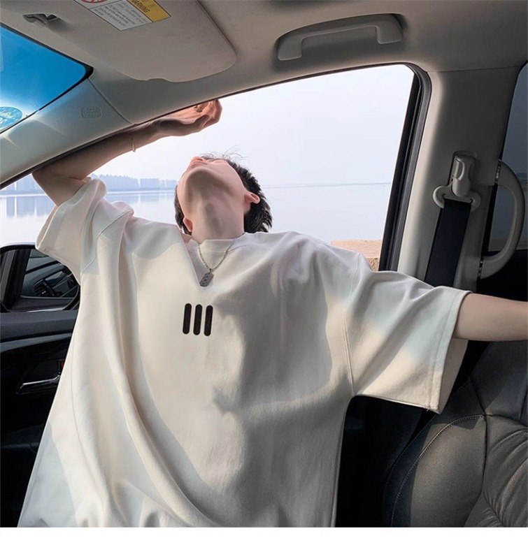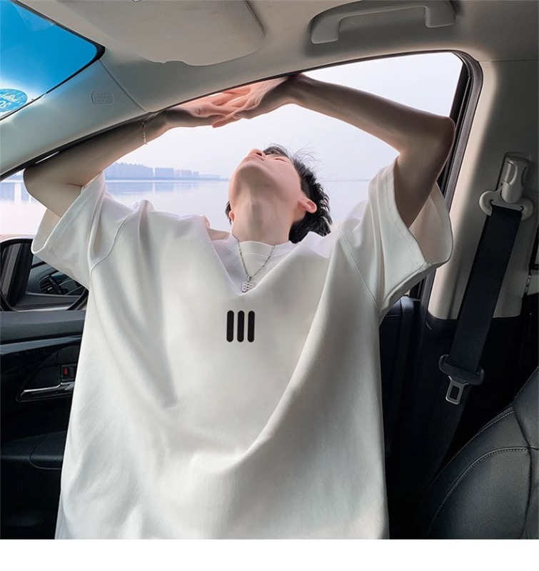 순면 짧은 티셔츠 남자 여름 옷 아메리칸 높음 거리 루즈핏 ins 조수 브랜드 남성 의류 동정 반소매 맨위