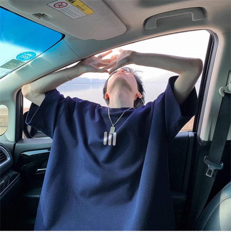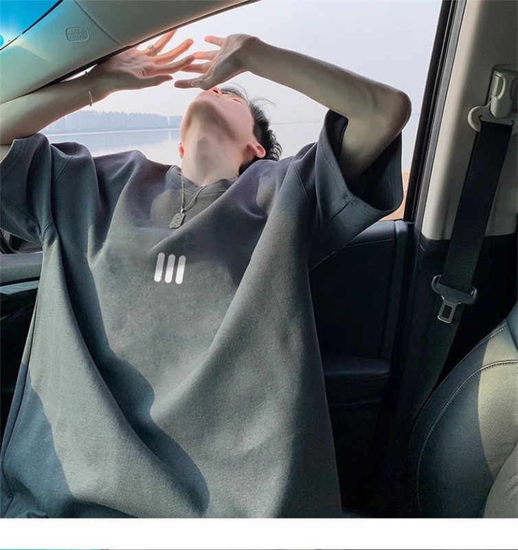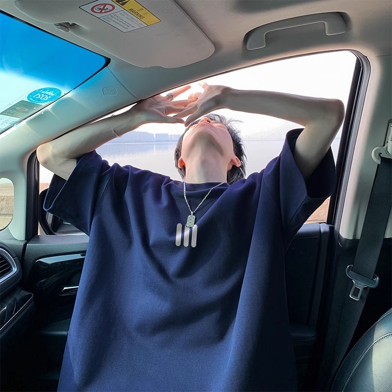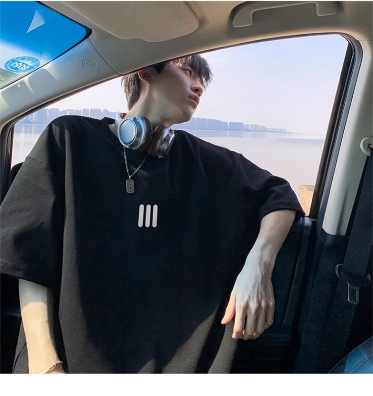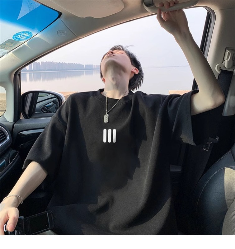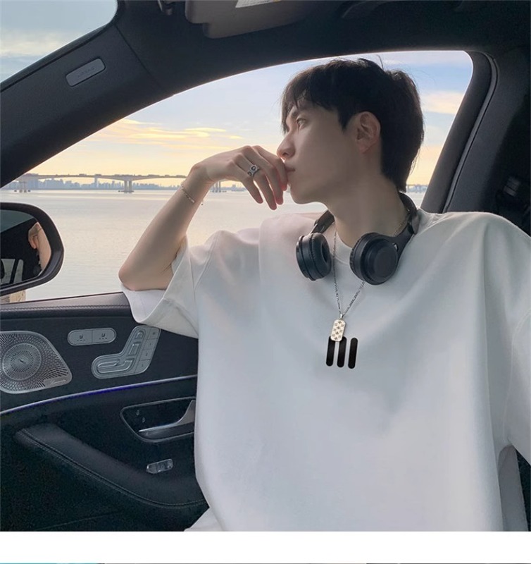 순면 짧은 티셔츠 남자 여름 옷 아메리칸 높음 거리 루즈핏 ins 조수 브랜드 남성 의류 동정 반소매 맨위