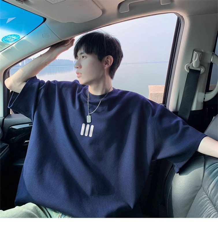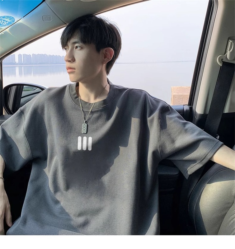 반팔 소년 여름 티셔츠 새로운 아메리칸 여름 조수 브랜드 반소매 루즈핏 무거운 순면 맨위 동정