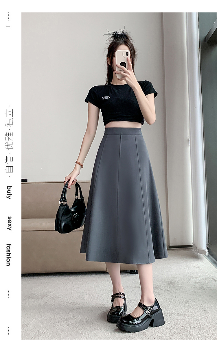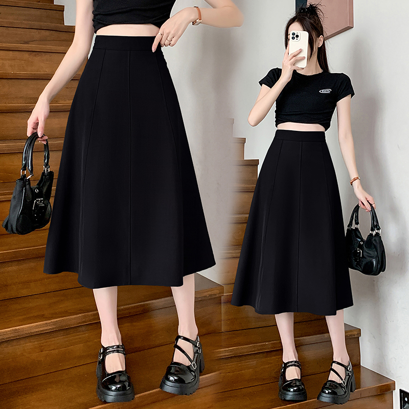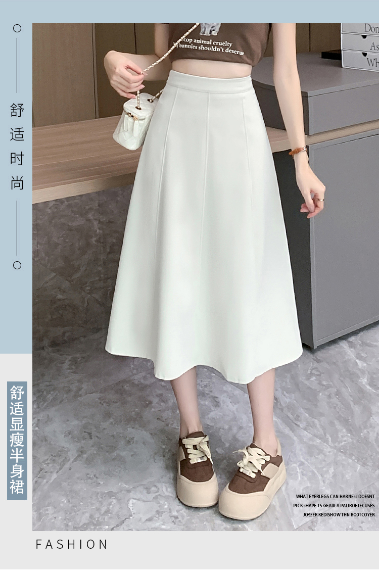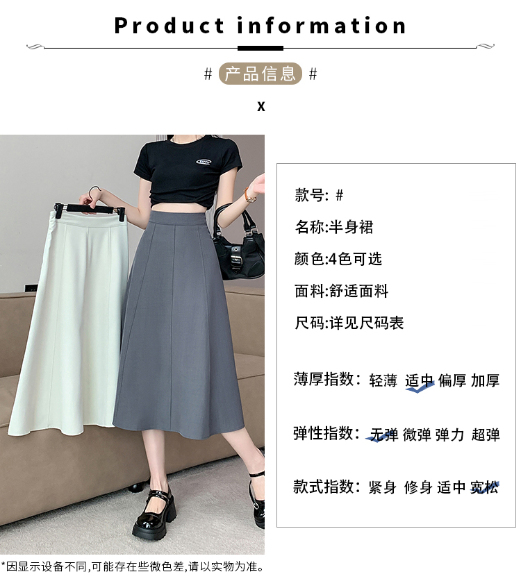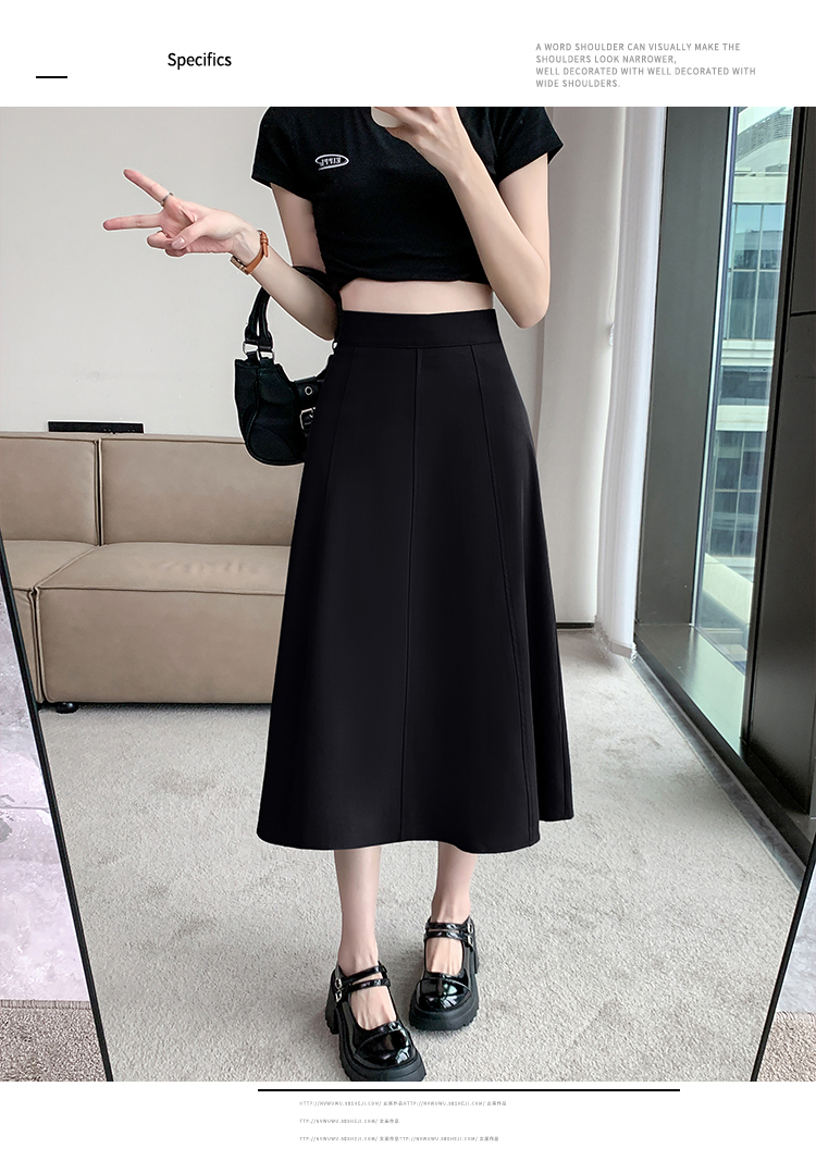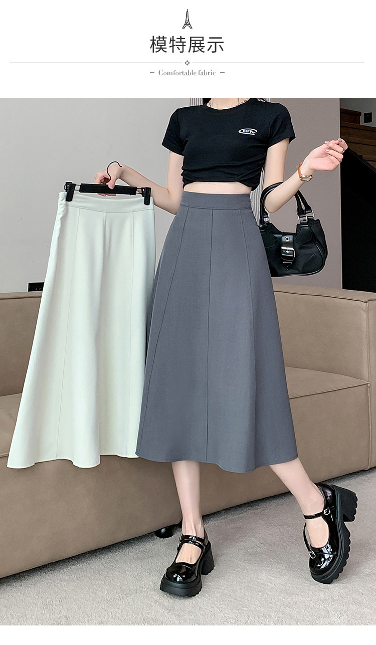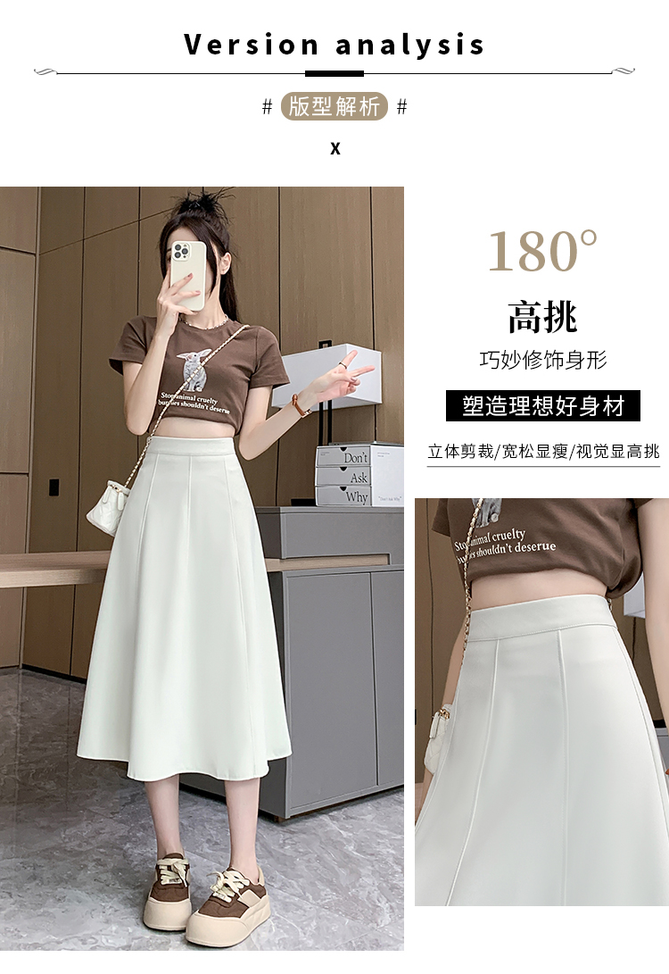 봄 여름 새로운 중간 길이 정장 A라인 스커트 여성 의류 새로운 하이웨이스트 우산 치마 단색 다용도