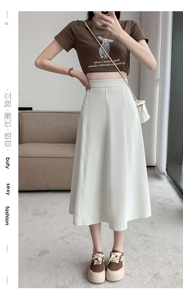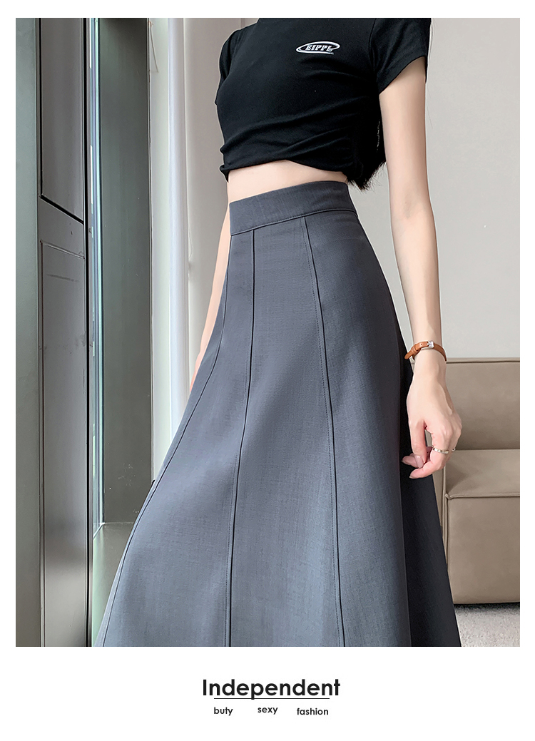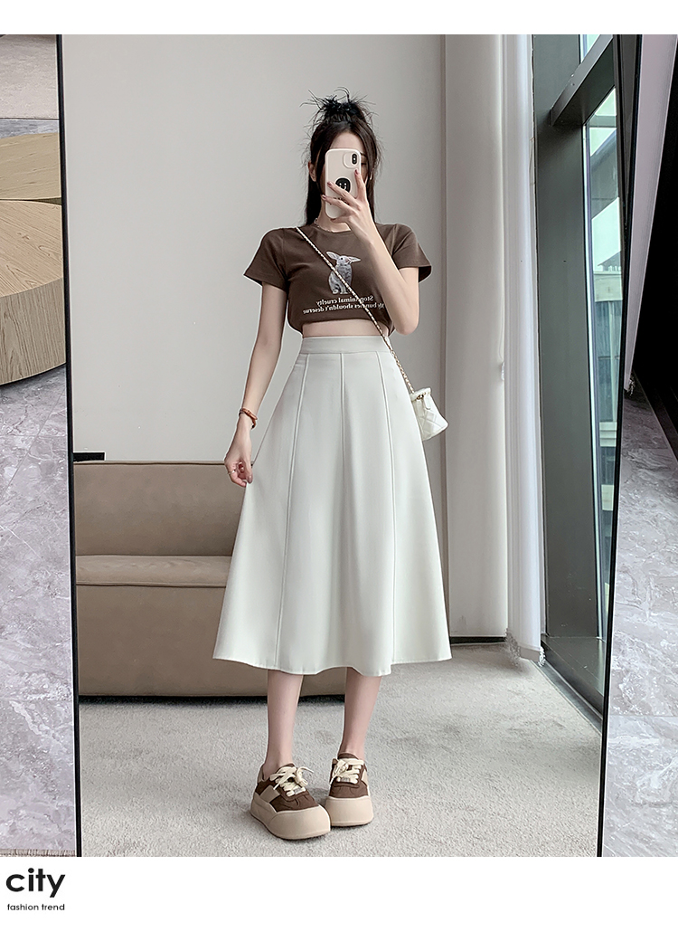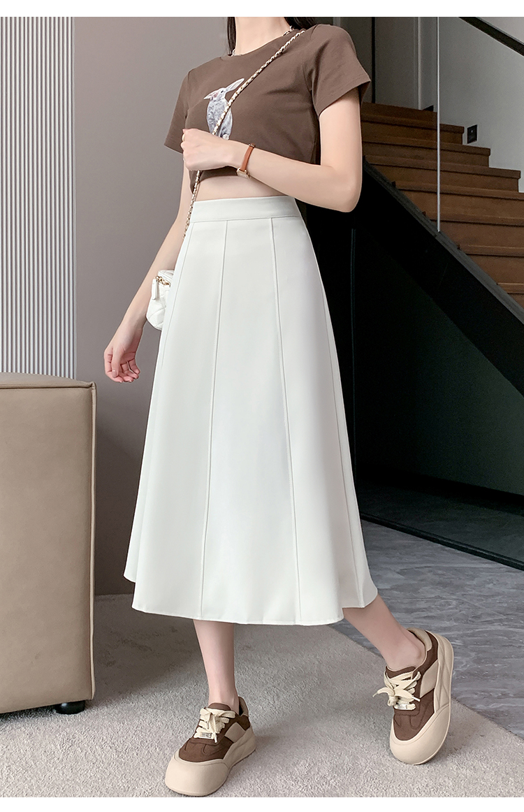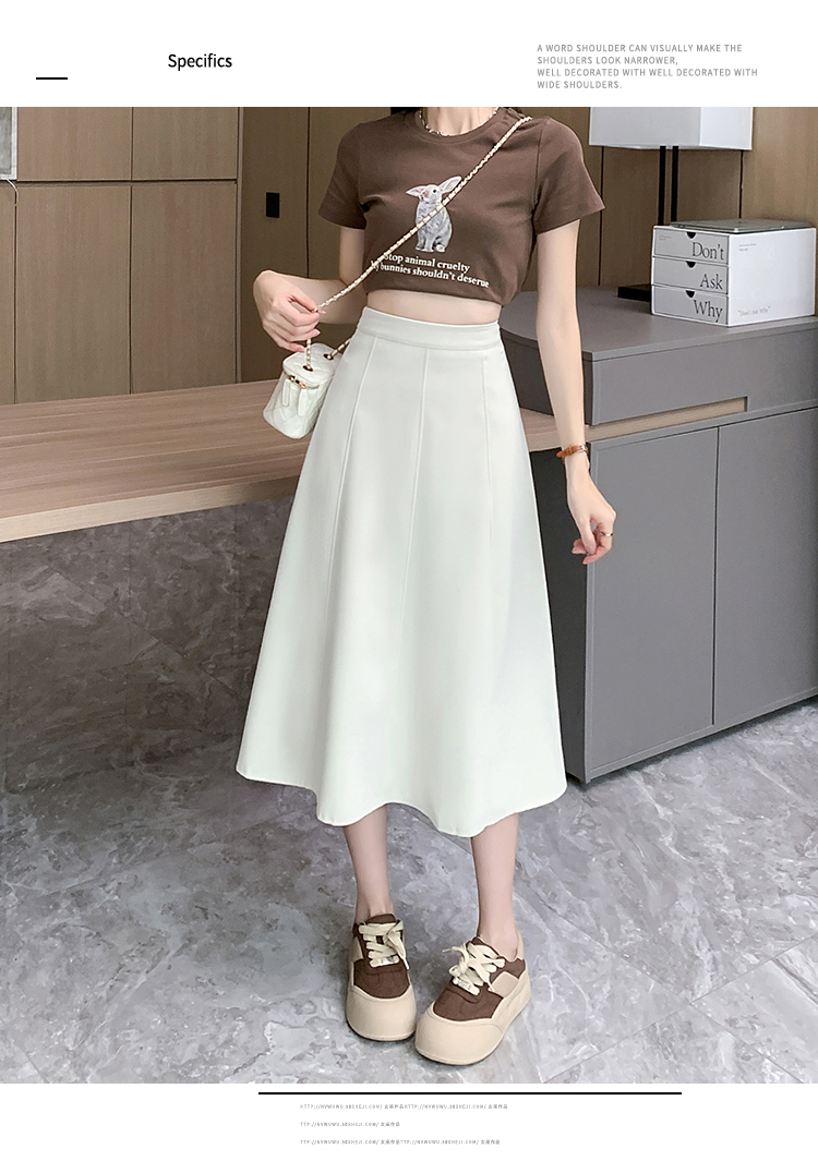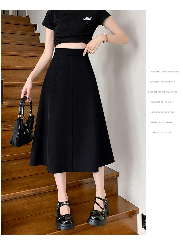 봄 여름 새로운 중간 길이 정장 A라인 스커트 여성 의류 새로운 하이웨이스트 우산 치마 단색 다용도