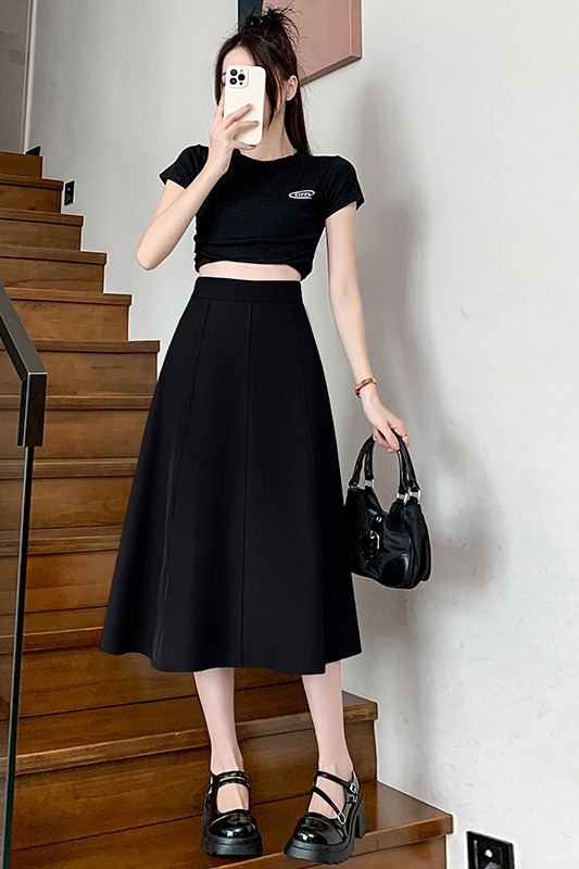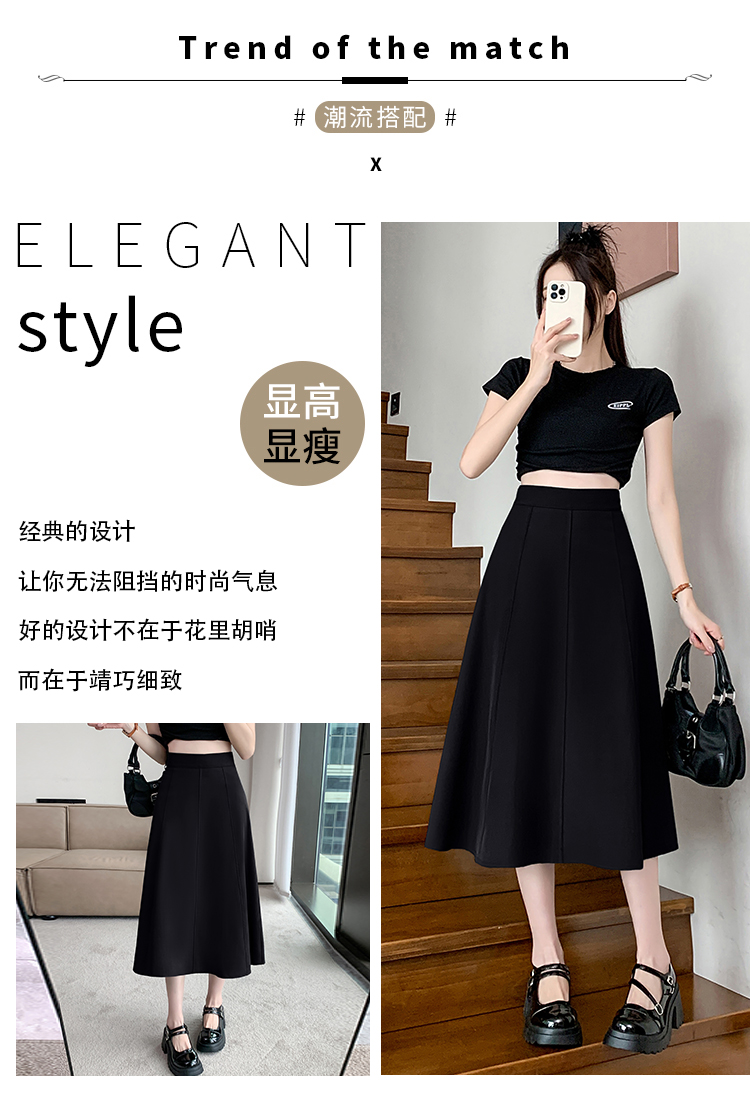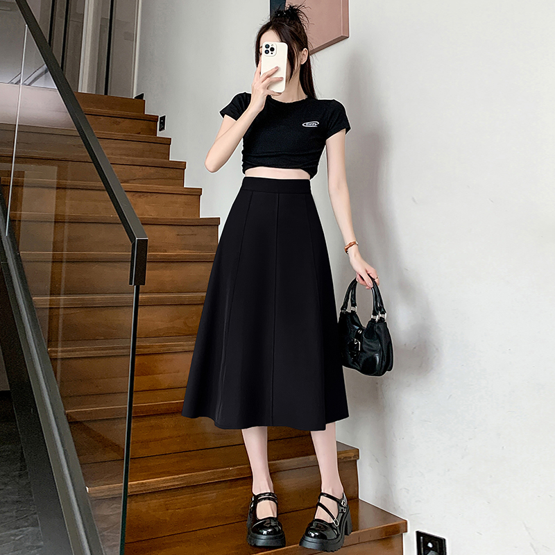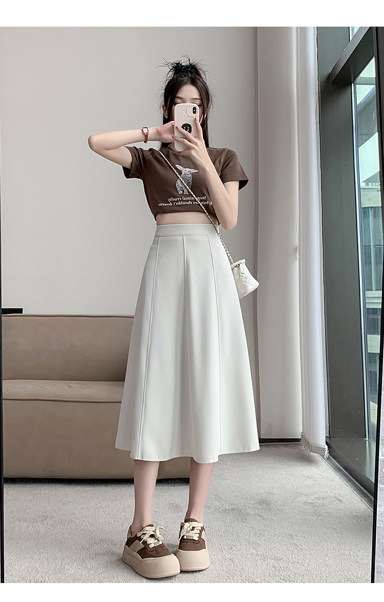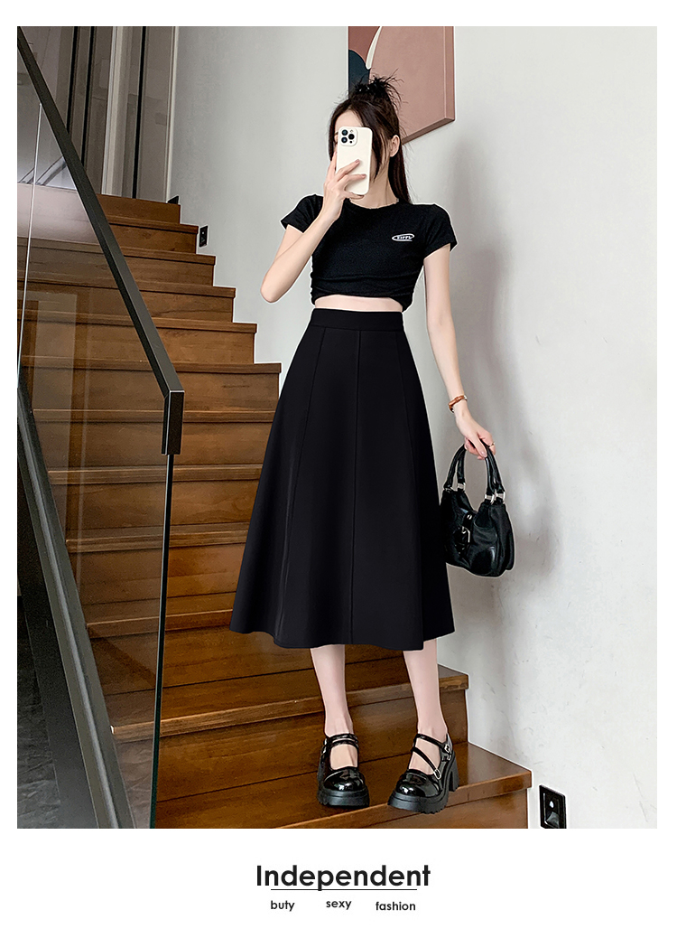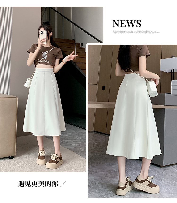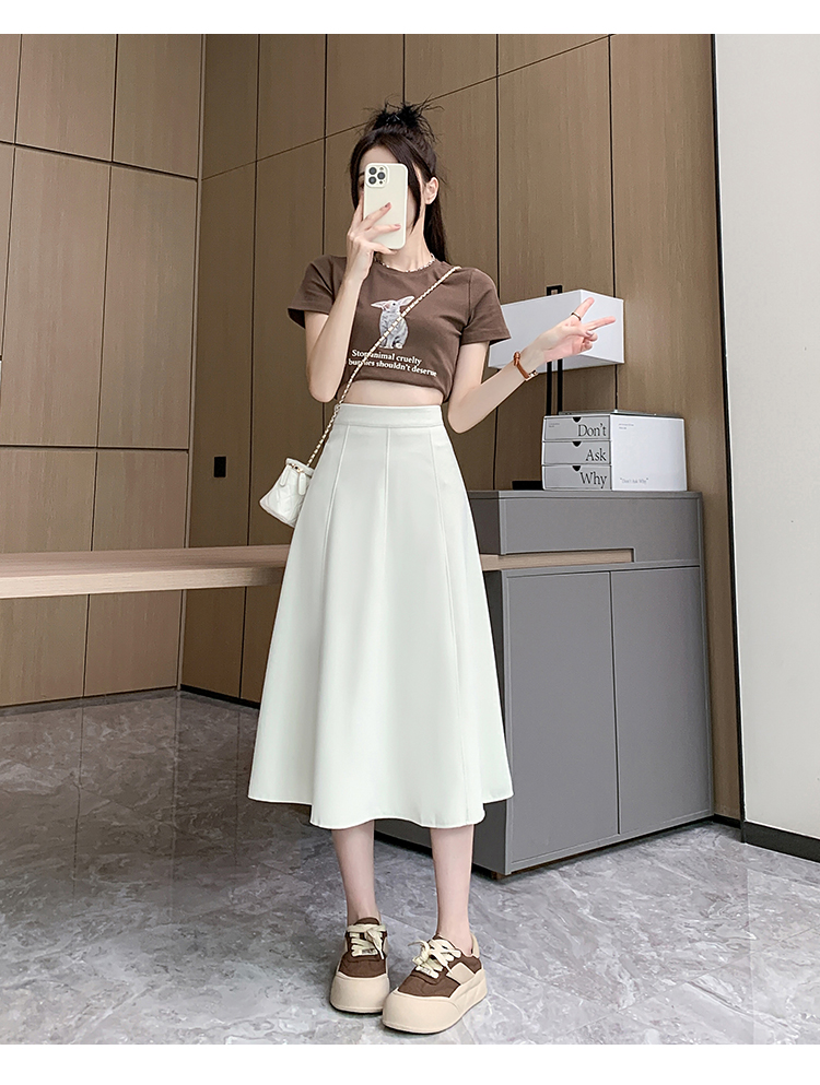 봄 여름 새로운 중간 길이 정장 A라인 스커트 여성 의류 새로운 하이웨이스트 우산 치마 단색 다용도