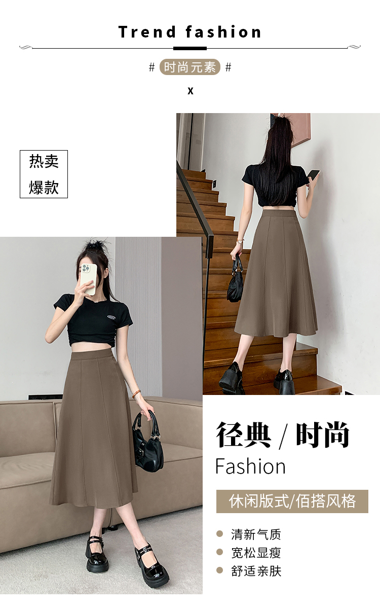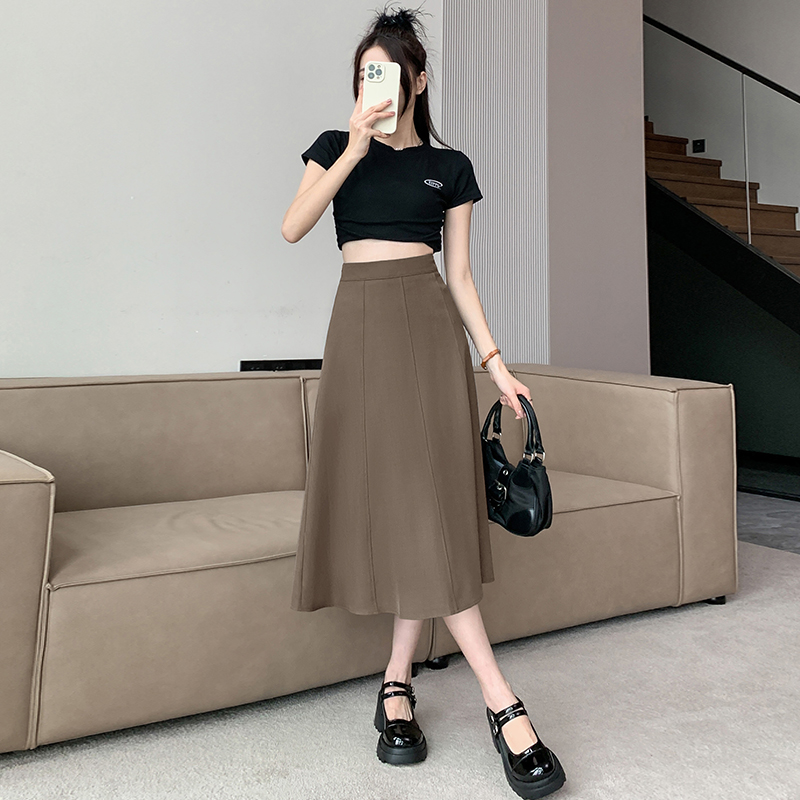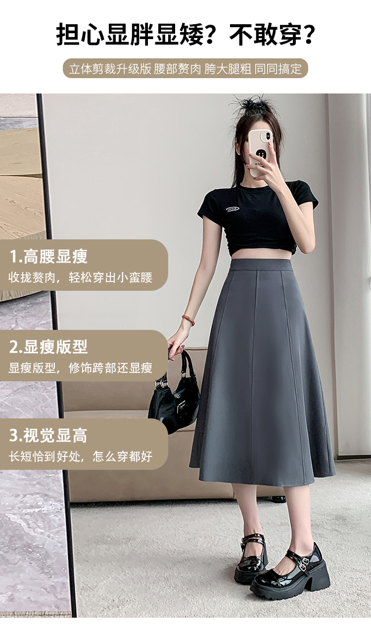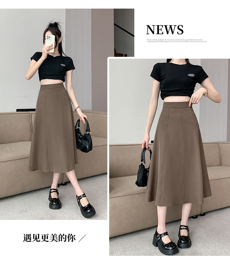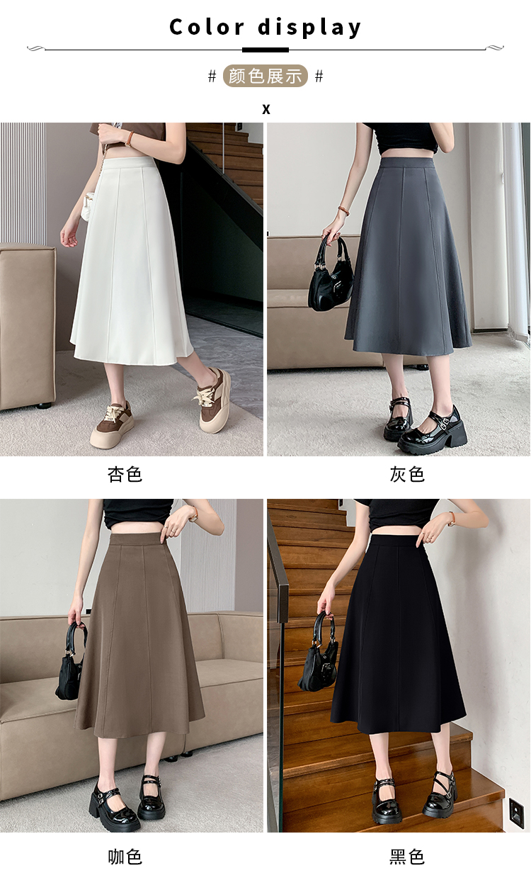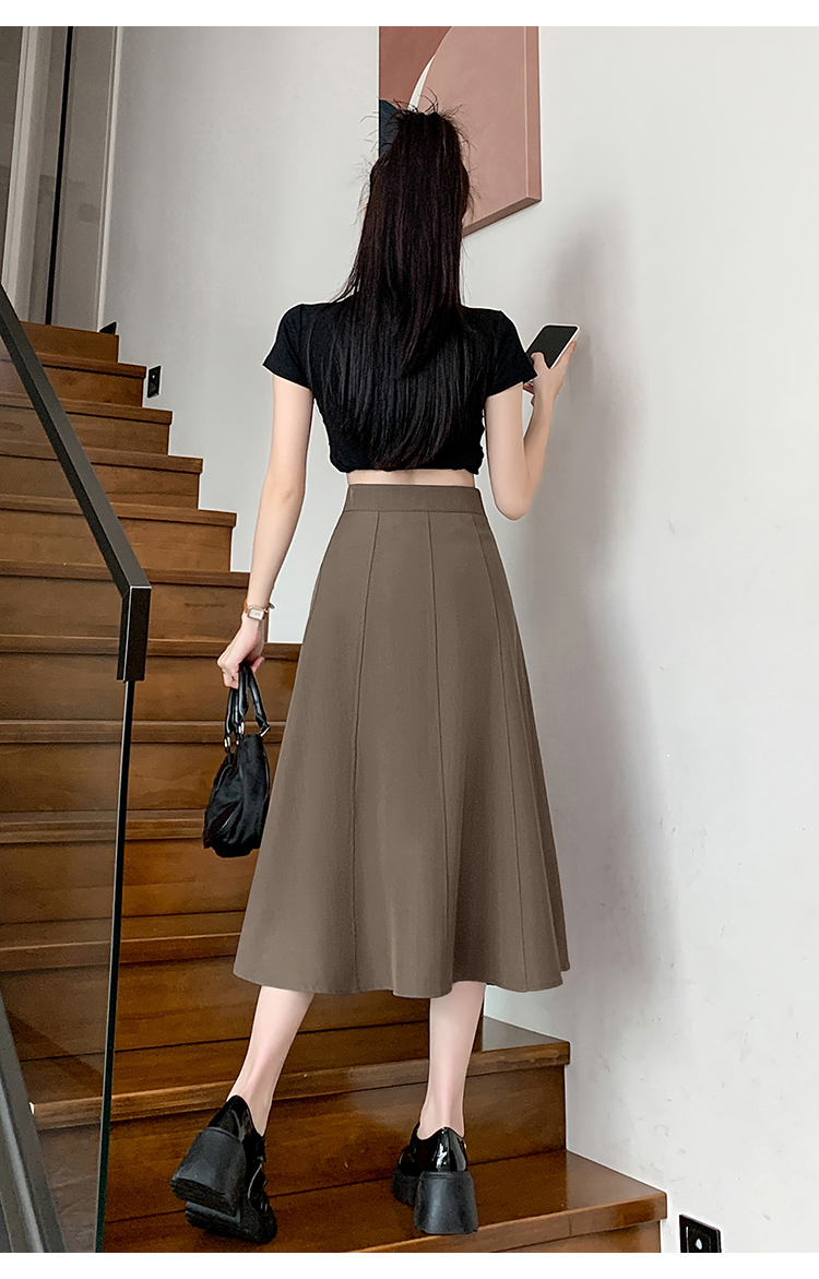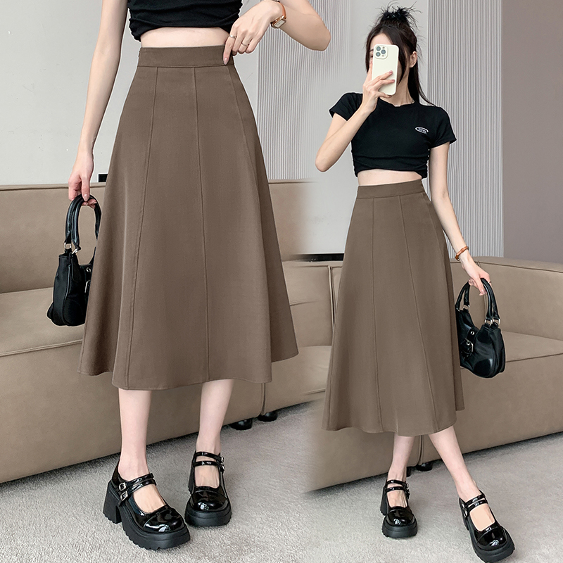 실사 커피 색상 모직 반신 스커트 가을 겨울철 2025 새로운 여성 A라인 스커트 중간 길이 하이웨이스트 슬림해 보이는 우산 치마