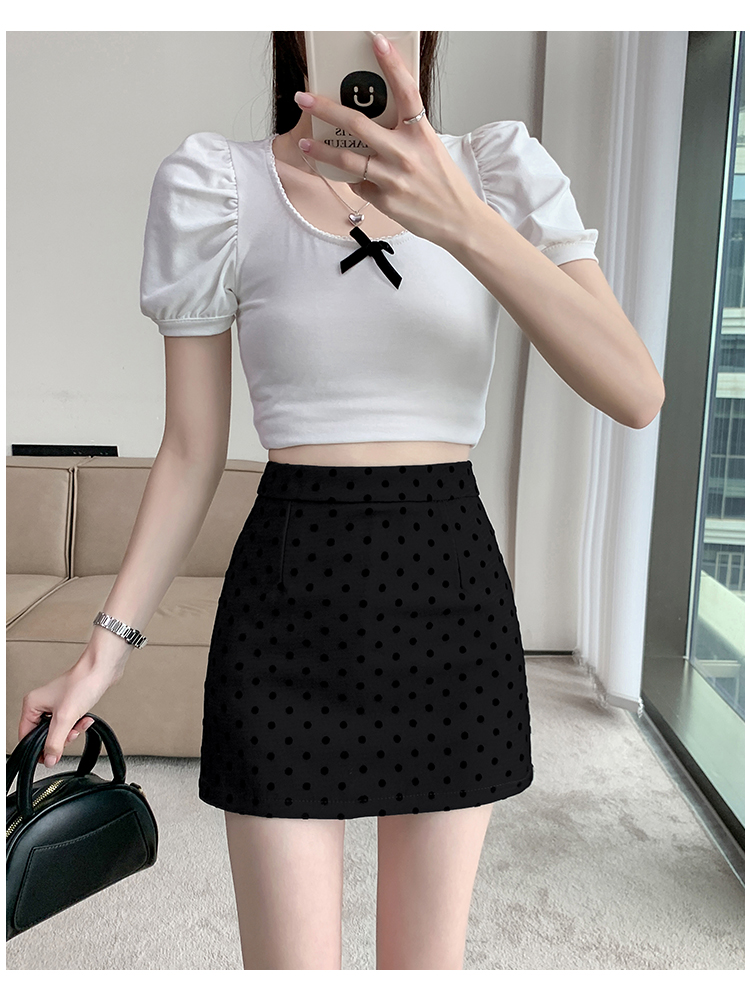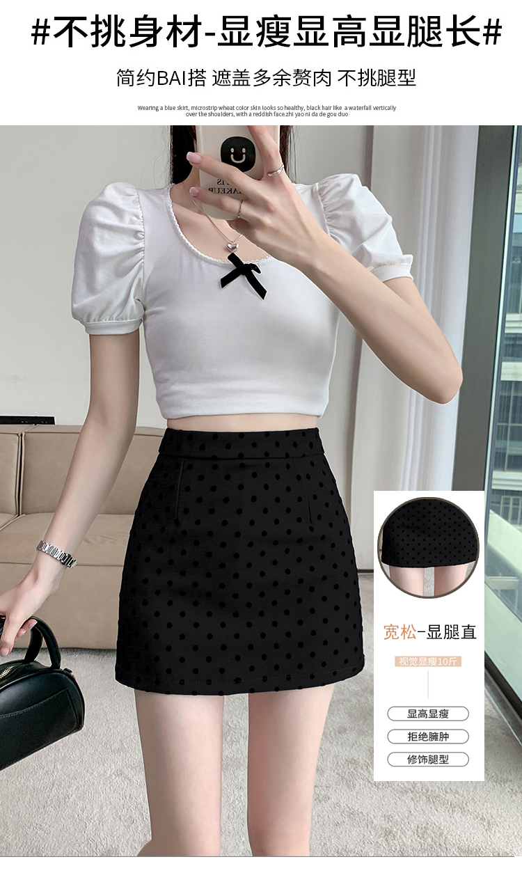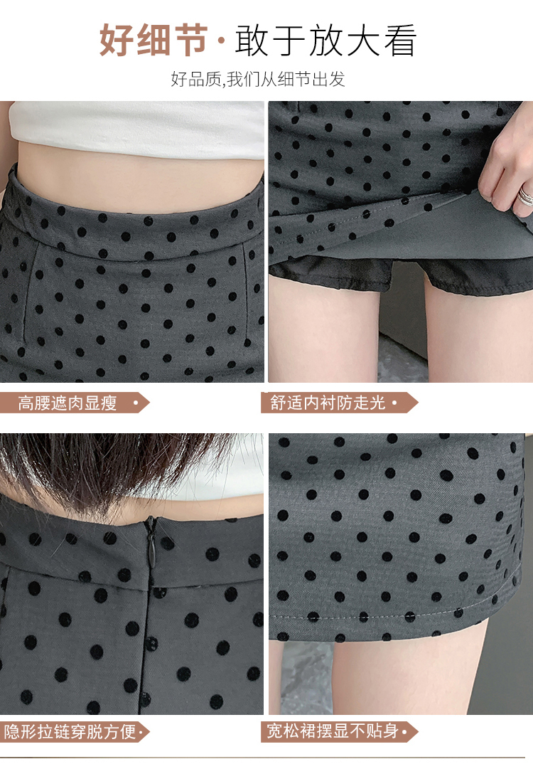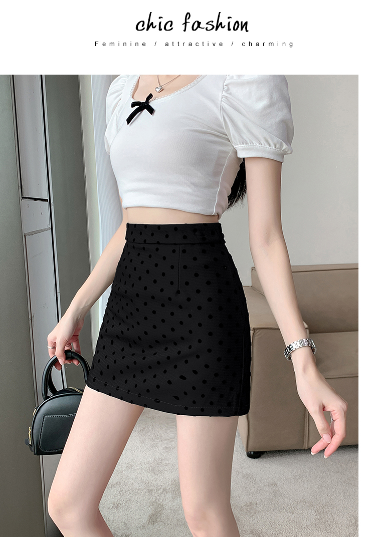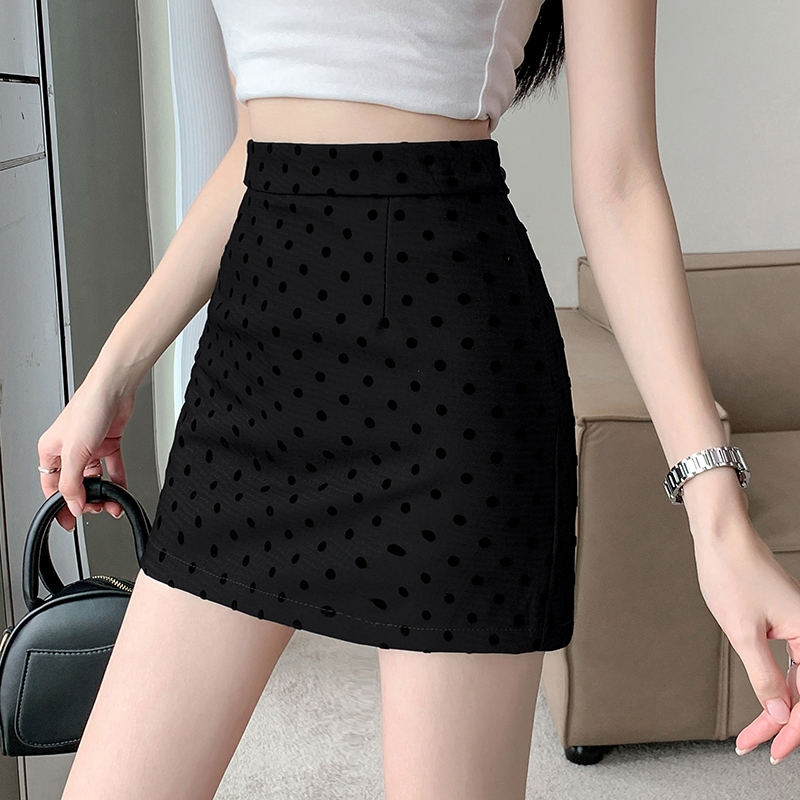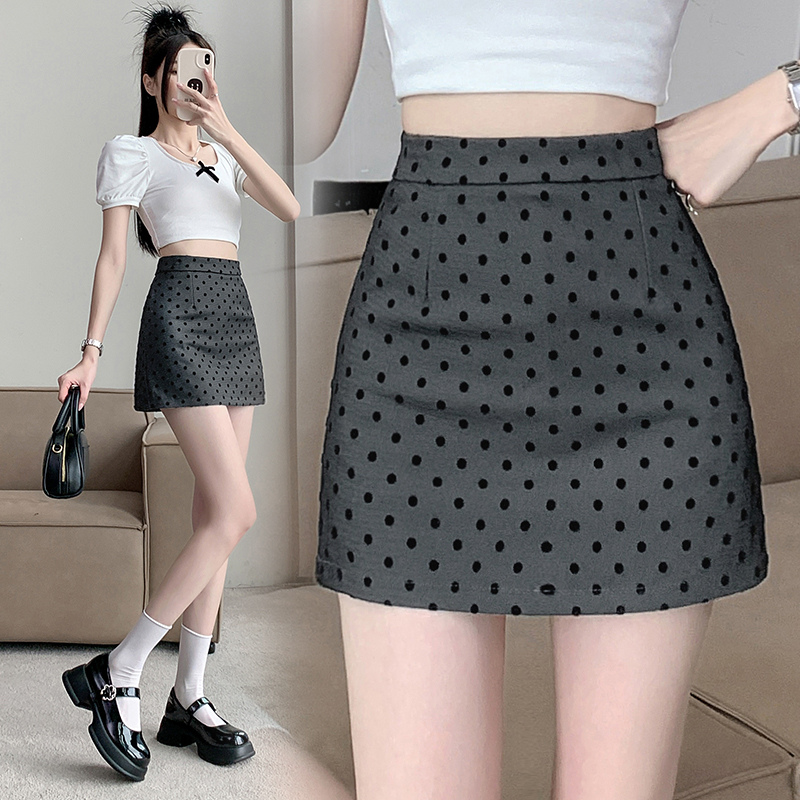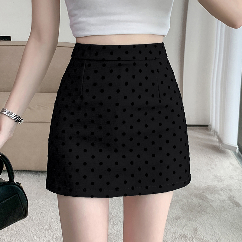 실사 레트로 소녀 센스 식물 플러시 도트 무늬 하이웨이스트 슬림해 보이는 반신 스커트 여성 한 마디 미니 스커트