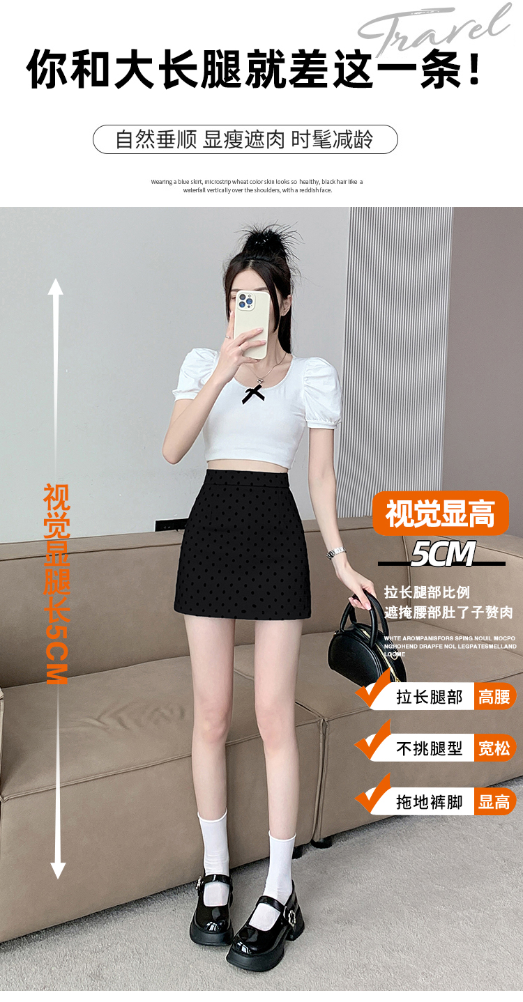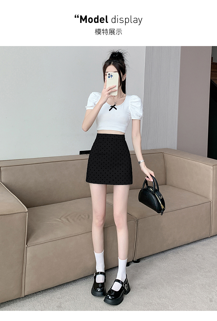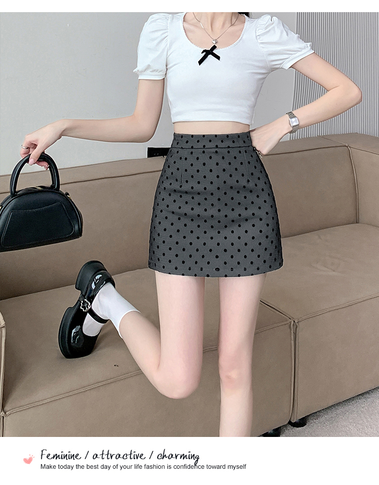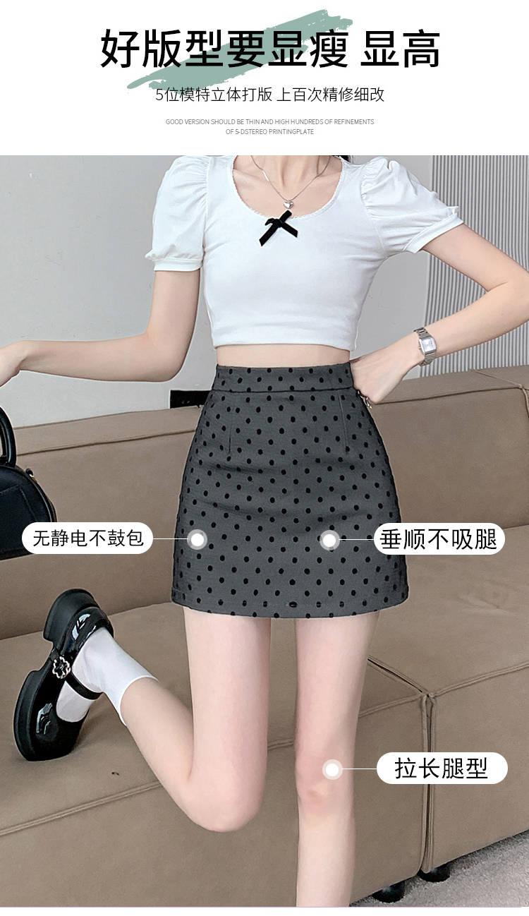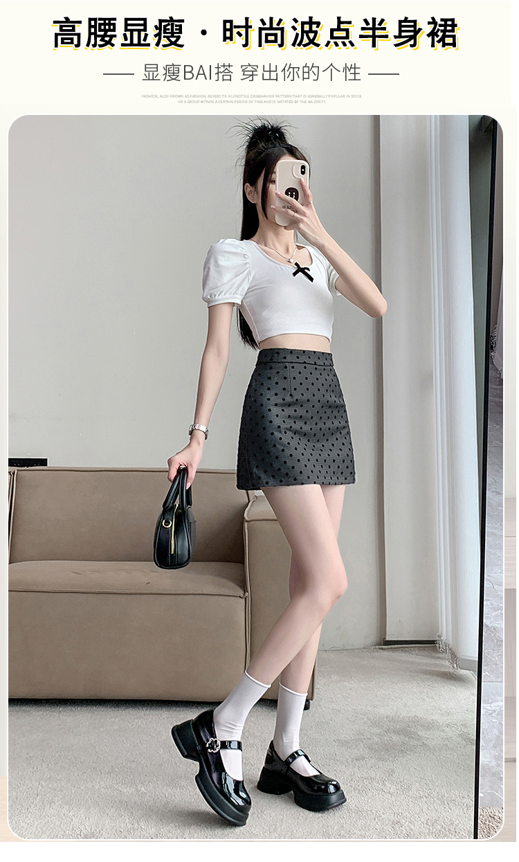 실사 레트로 소녀 센스 식물 플러시 도트 무늬 하이웨이스트 슬림해 보이는 반신 스커트 여성 한 마디 미니 스커트