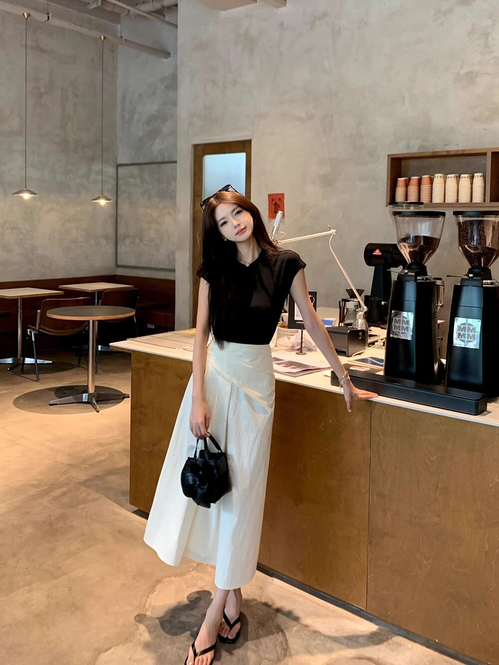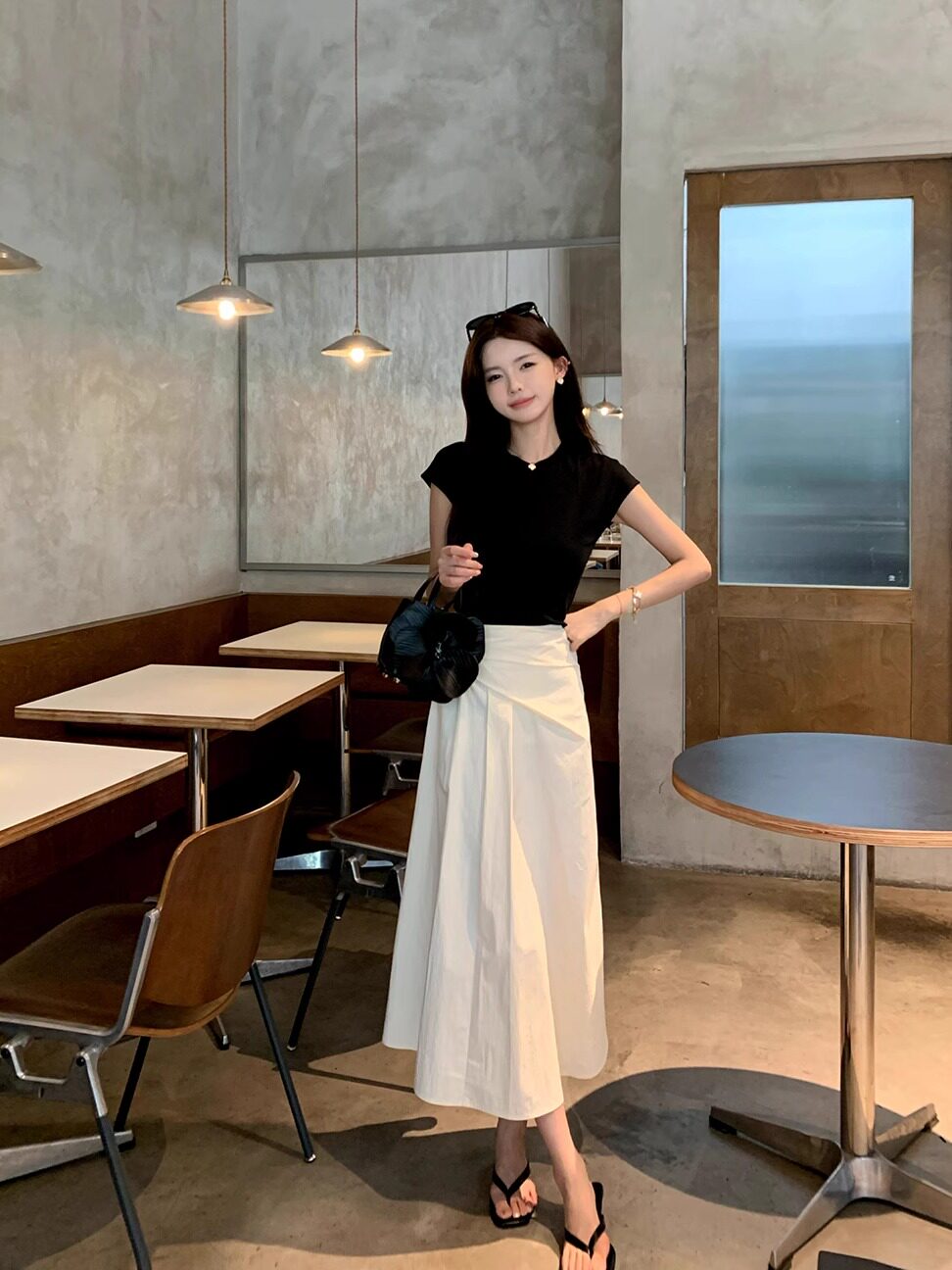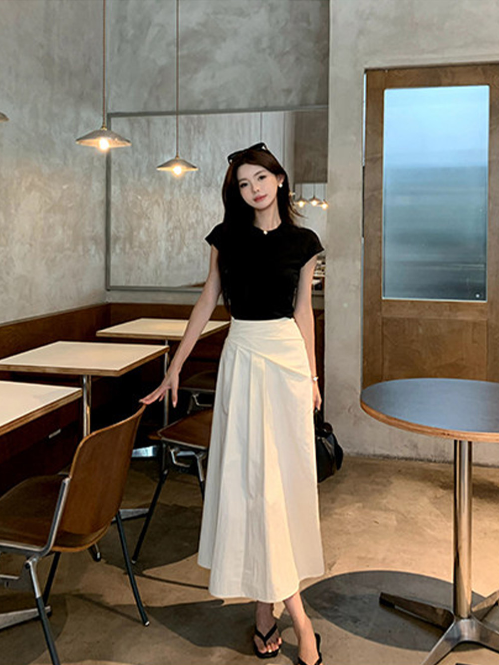 작은 키 허리 명중 Pleat 불규칙 반신 스커트 여름 여성 허리 수축 슬림해 보이는 단어 버전 롱 코트 치마
