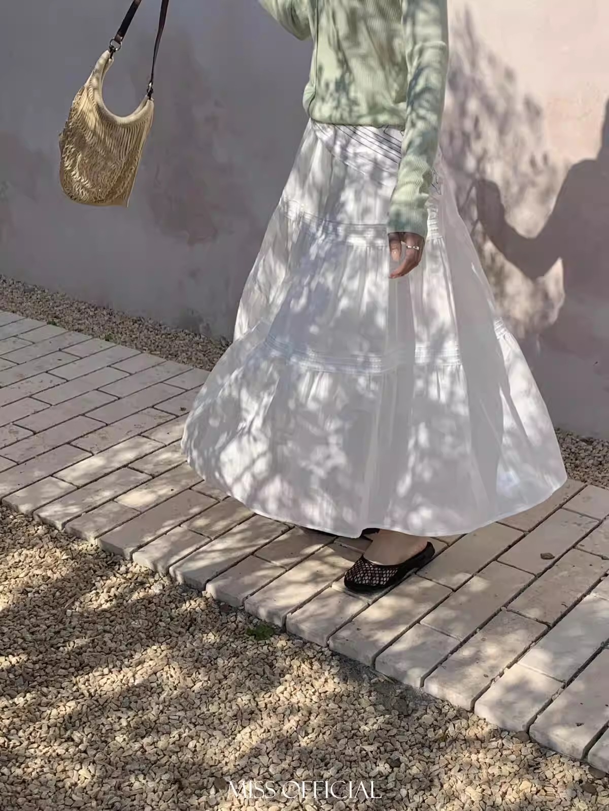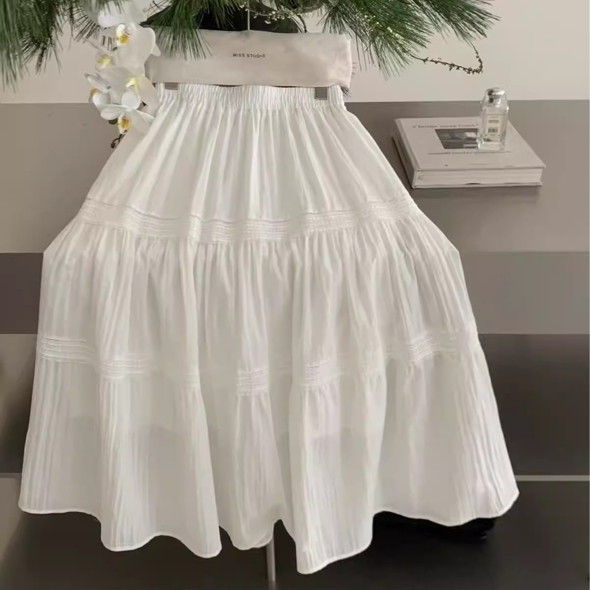 화이트 깃발 반신 스커트 여성 봄 가을 여름 섹션 하이웨이스트 요정 슬림해 보이는 표지 넓적 다리 도루 가을 센스 우아한 망사 A라인 스커트