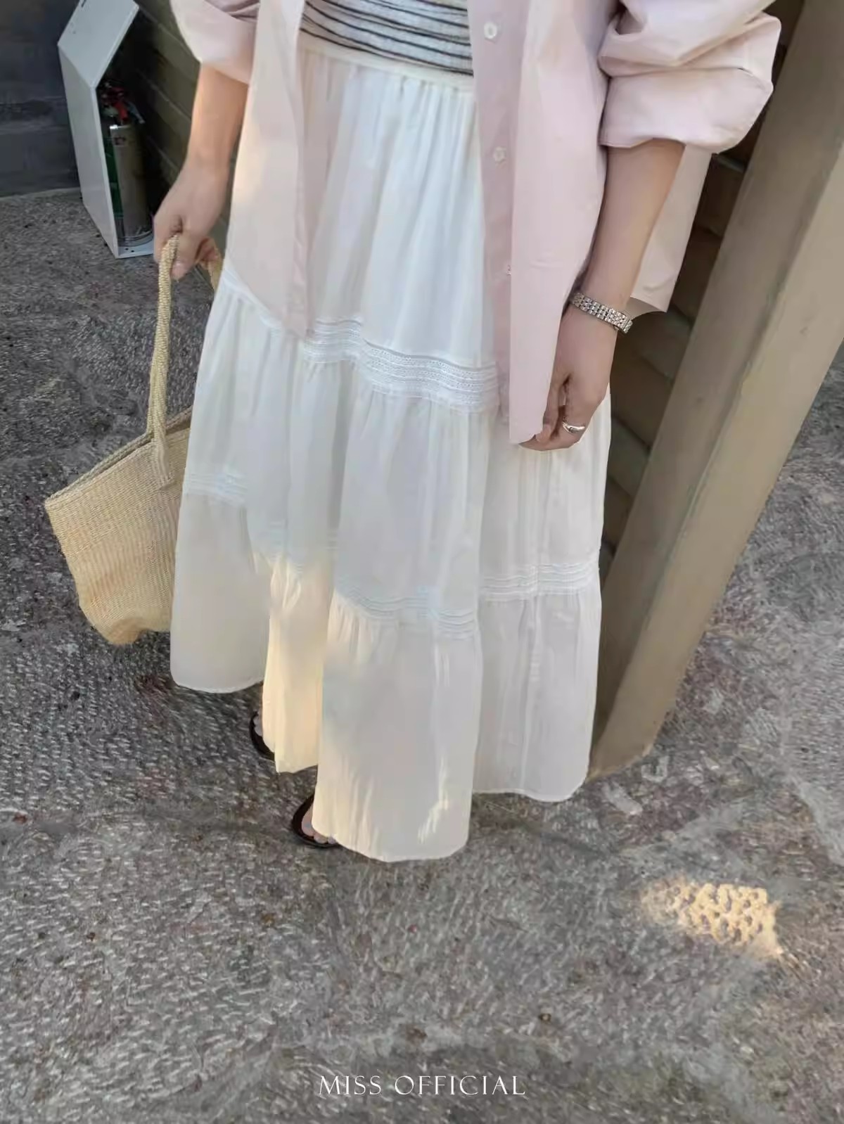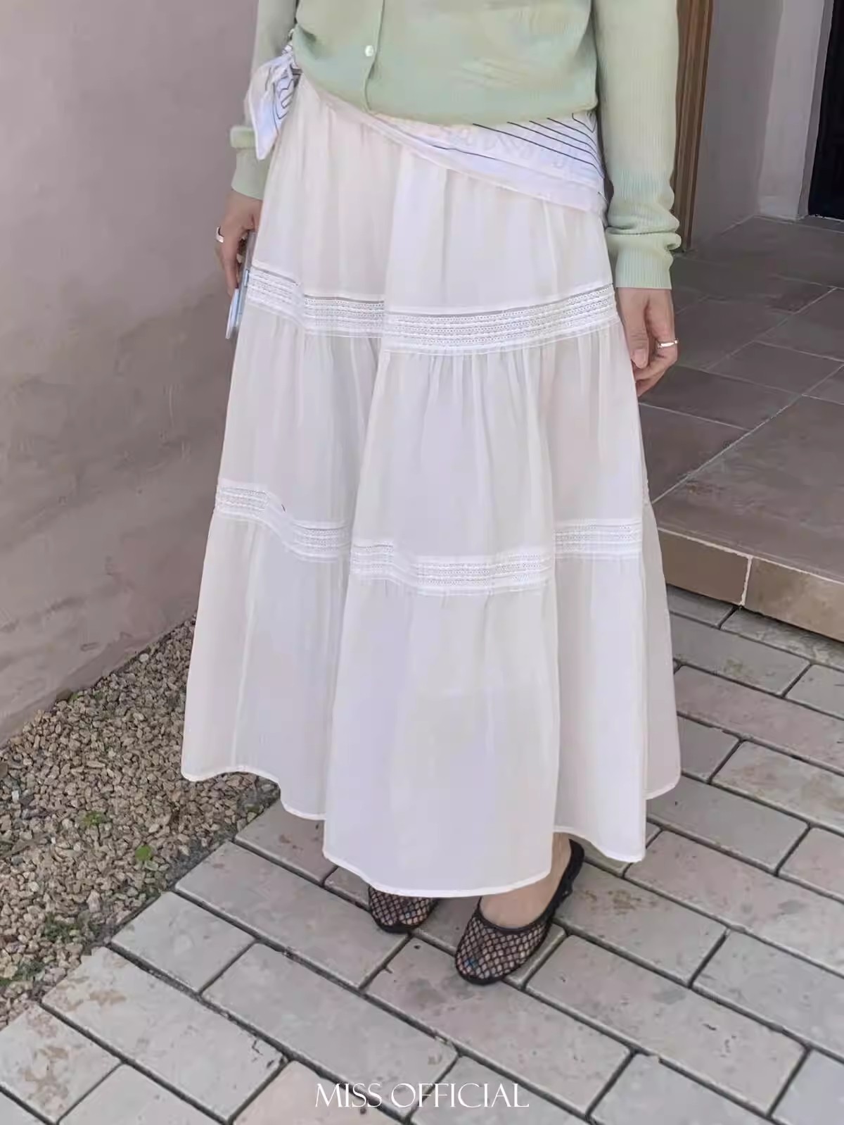 프랑스식 무거운 작업 화이트 레이스 반신 스커트 여성 여름 디자인 센스 하이웨이스트 슬림해 보이는 대 치마 한 마디 롱 스커트 봄 가을