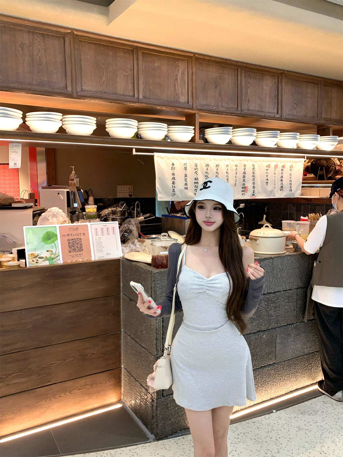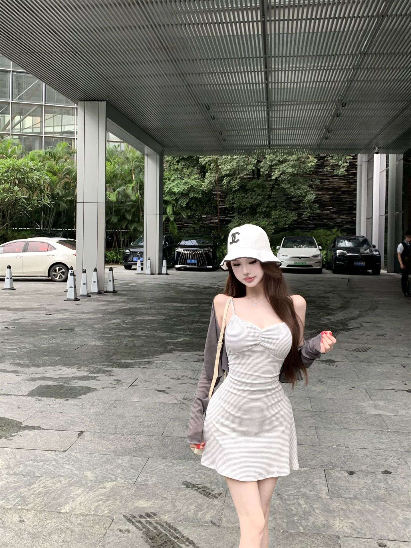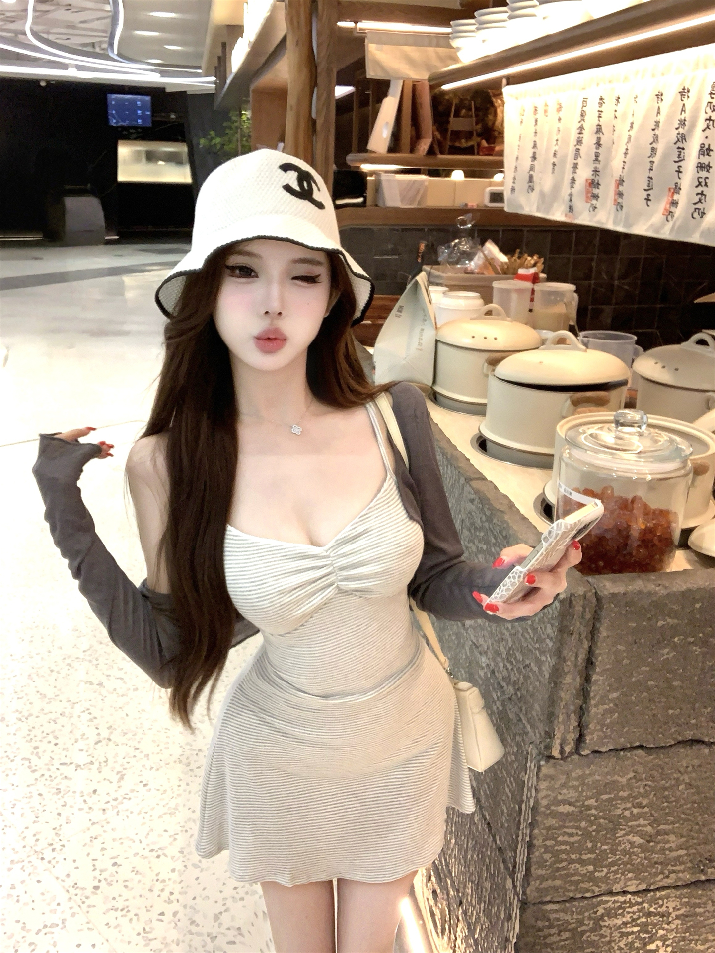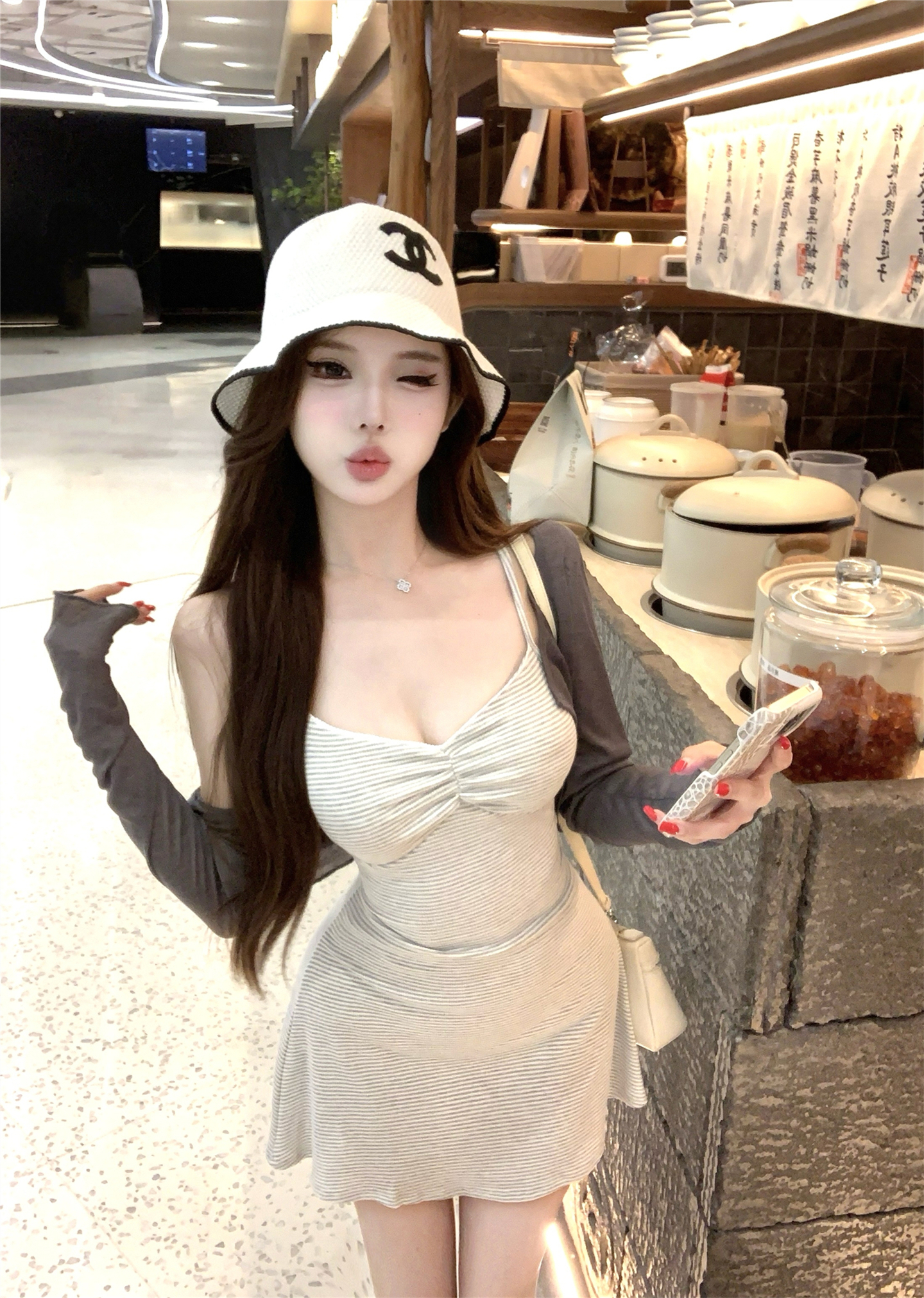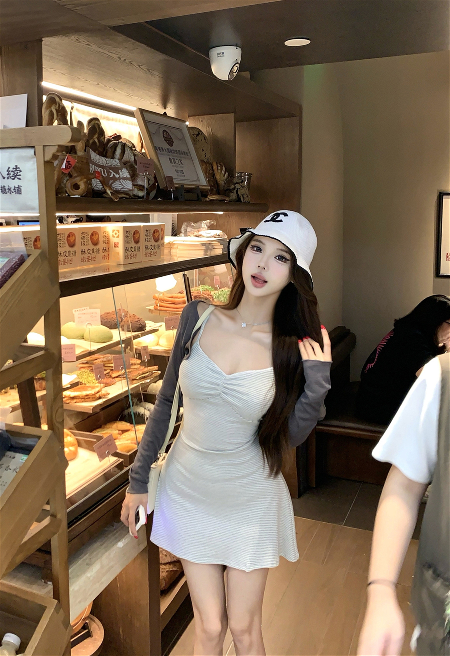 실사 봄 여름 빛 사람들 아름다움 센스 세트 그룹 주름 몸매 가꾸기 슬립 여성 드레스 주간 실크 오픈 가디건 투피스 세트