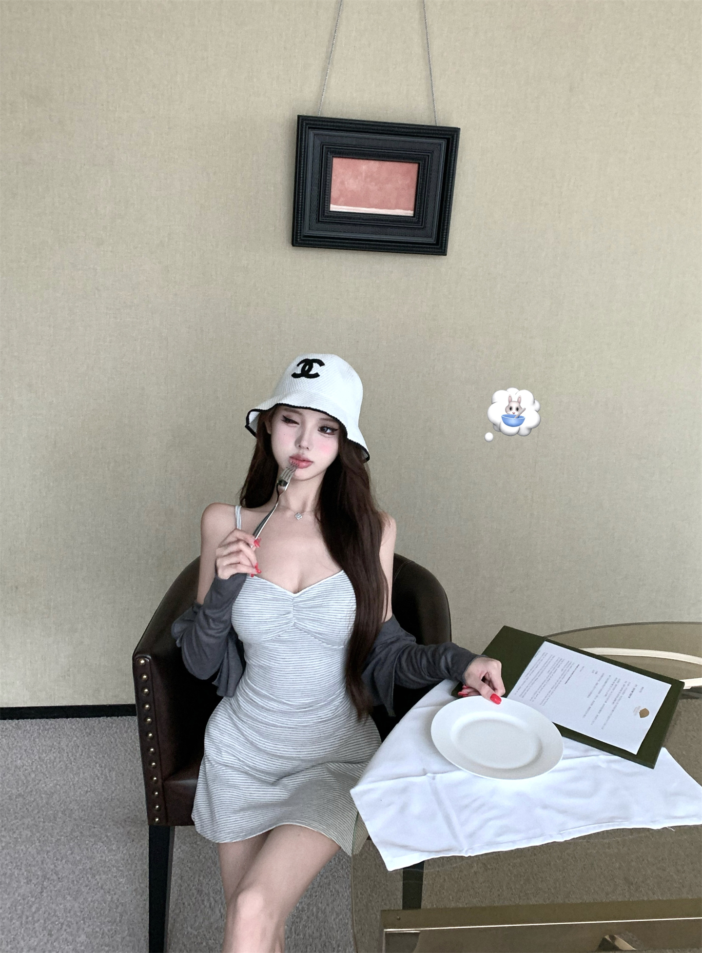 실사 새로운 봄 여름 한국 스타일 패션 다용도 슬림해 보이는 스트라이프 긴팔 맨위 반신 스커트 세 조각 여성 세트