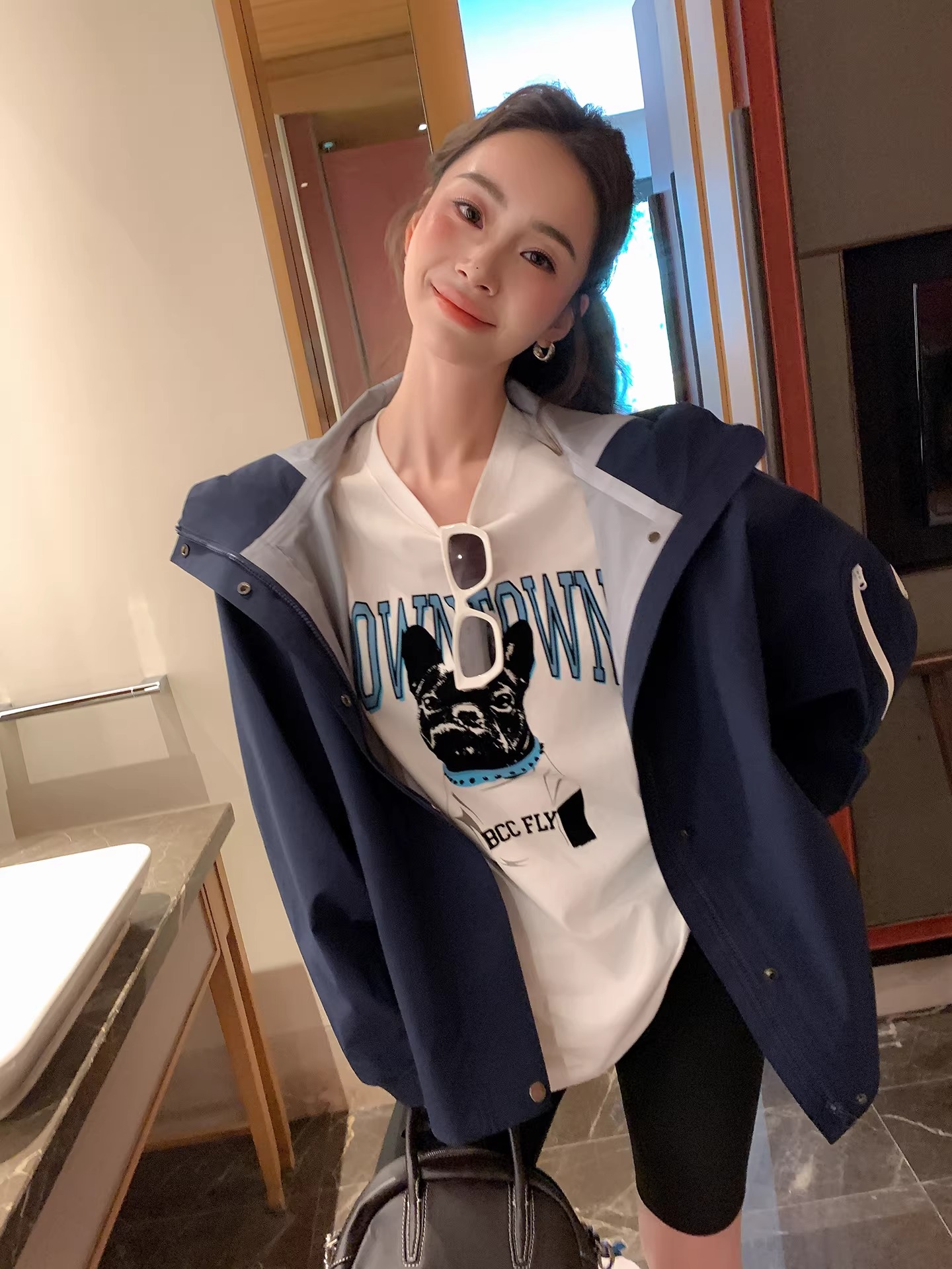 실사 배색 라운드 넥 반팔 티셔츠 여성 여름 새로운 몸매 가꾸기 한국 스타일 인사이드 가져 가라. 기본 셔츠 디자인 센스 맨위 서비스