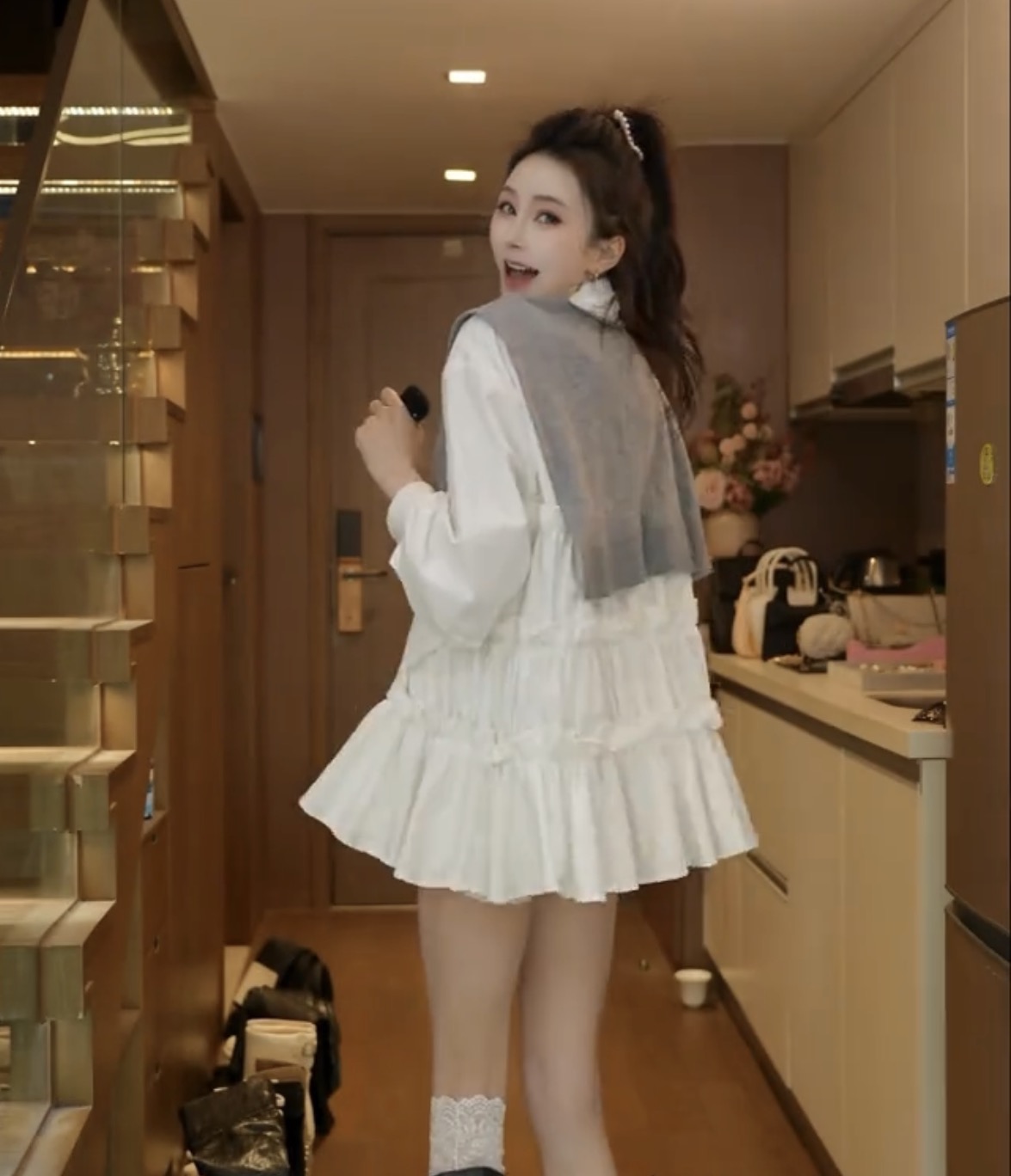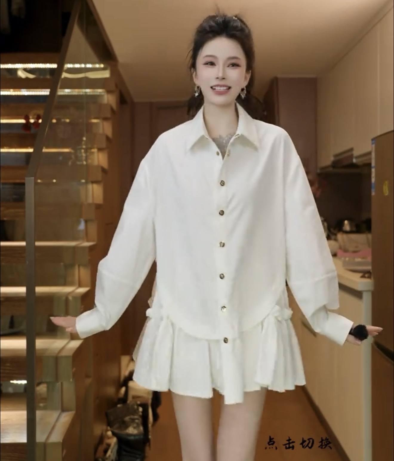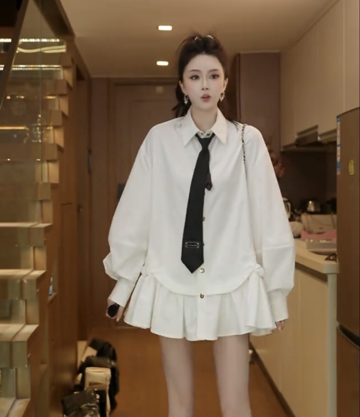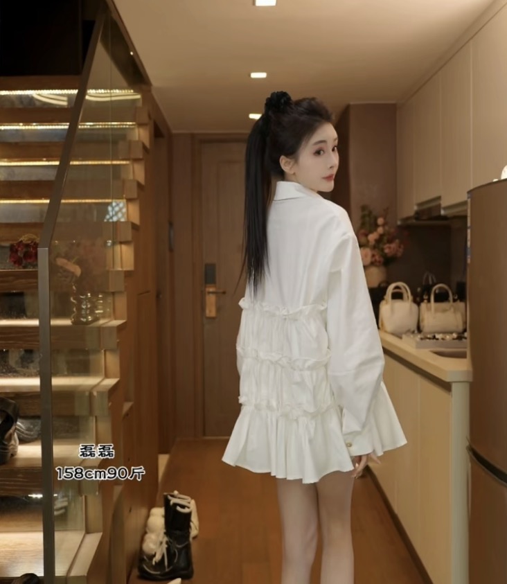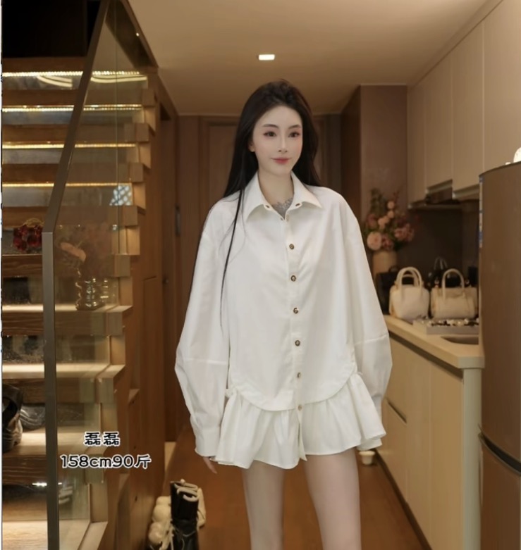 릴리 예 장 원자바오 부드러운 미니멀리즘 꽃잎 소매 우유 화이트 긴팔 셔츠 화이트 2026 맨위 외국 가스 새로운