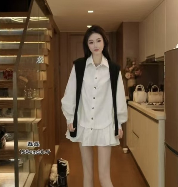 흔들어서 톤 폭발 2026 봄 새로운 페이크 레이어드 오프숄더 맨위 플러스 반 스커트 투피스 세트 세트