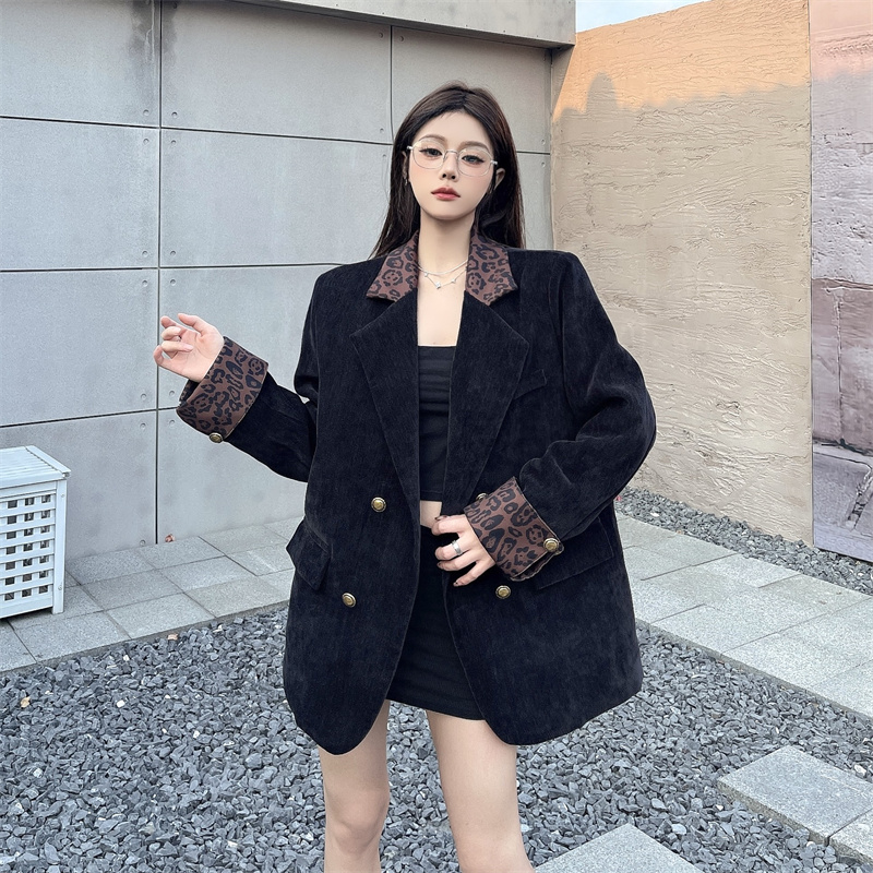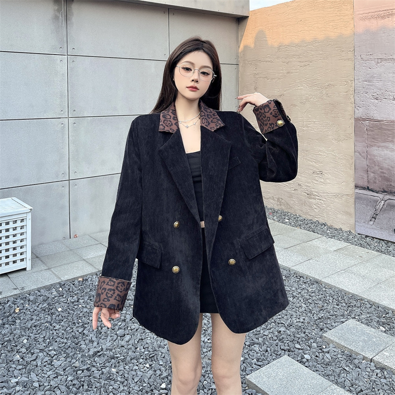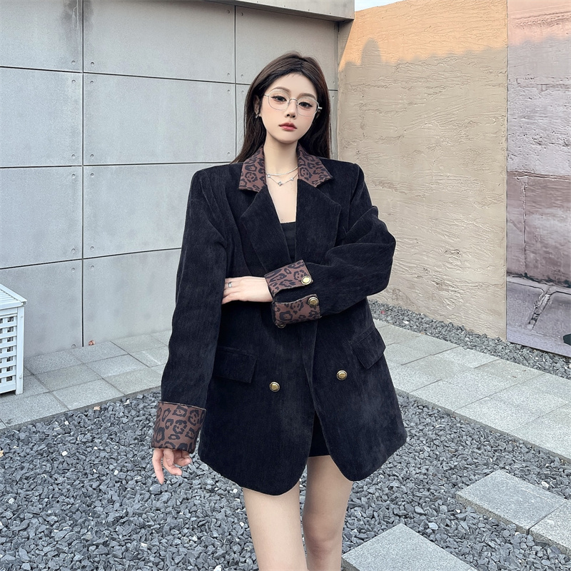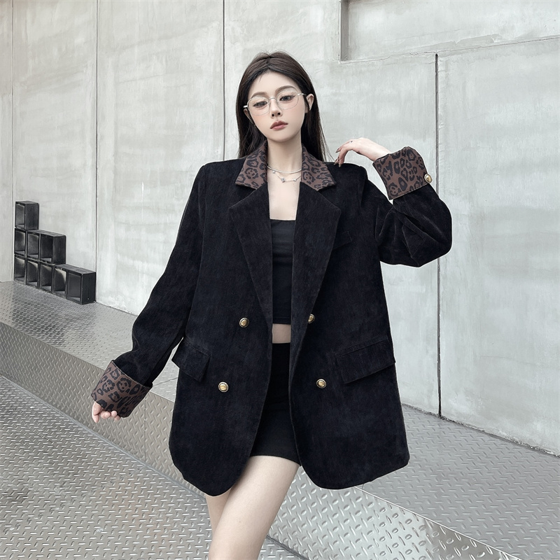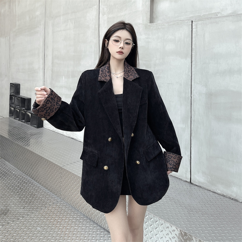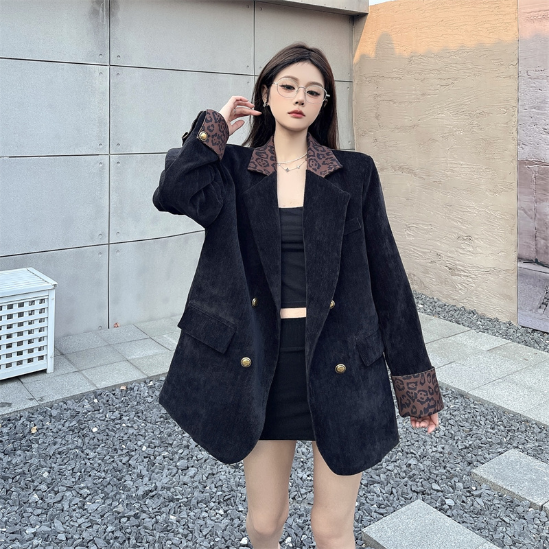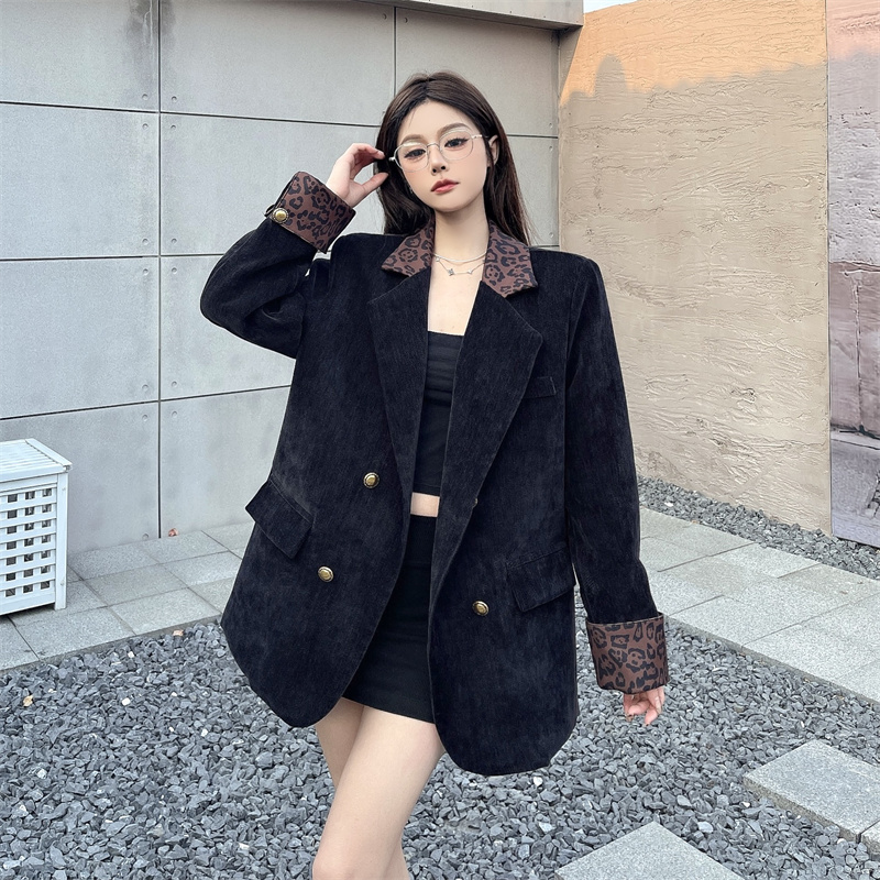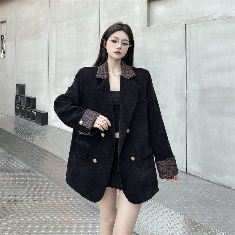 실사 새로운 숙련 된 출퇴근 바람 정장 칼라 못 훈련 이중 버튼 조끼 여성 루즈핏 중간 길이 맨위