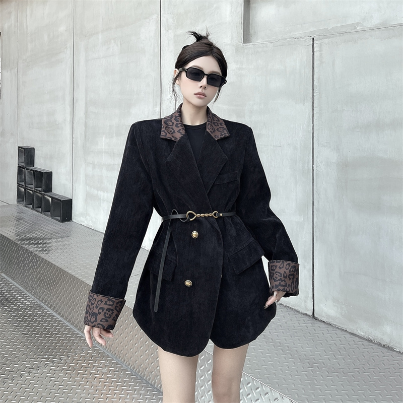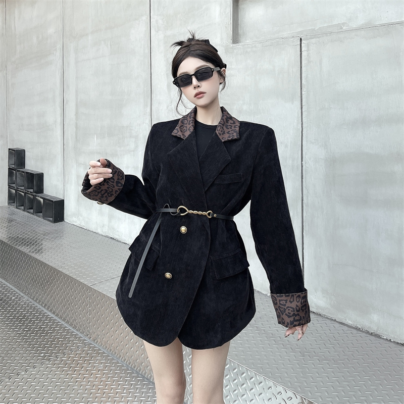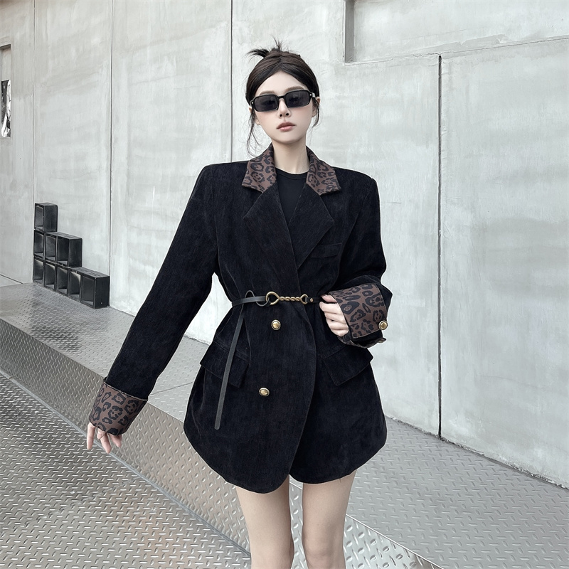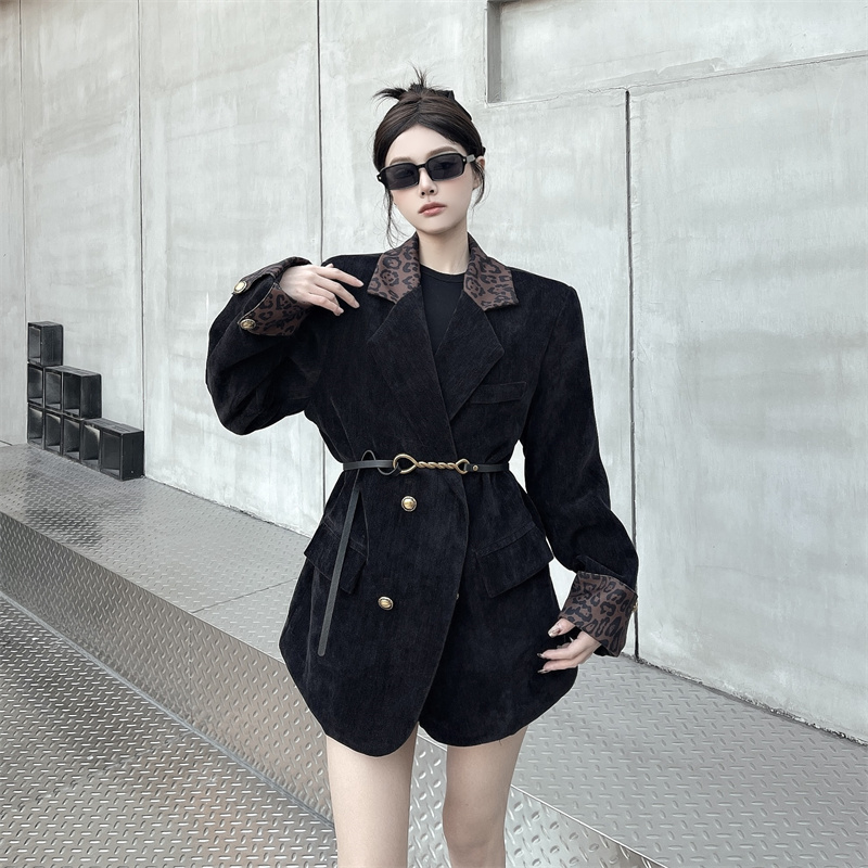실사 Gypsophila 뿌리다 분말 디자인 센스 검정색 정장 여성 코트 다림질 금박 반짝임 고급 센스 정장 트렌디