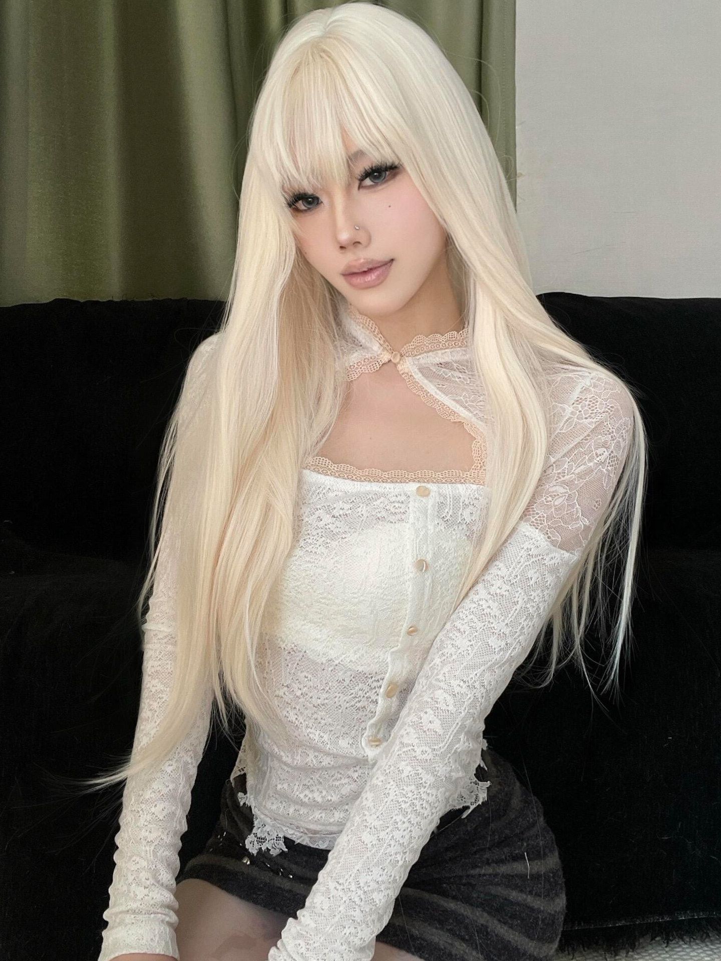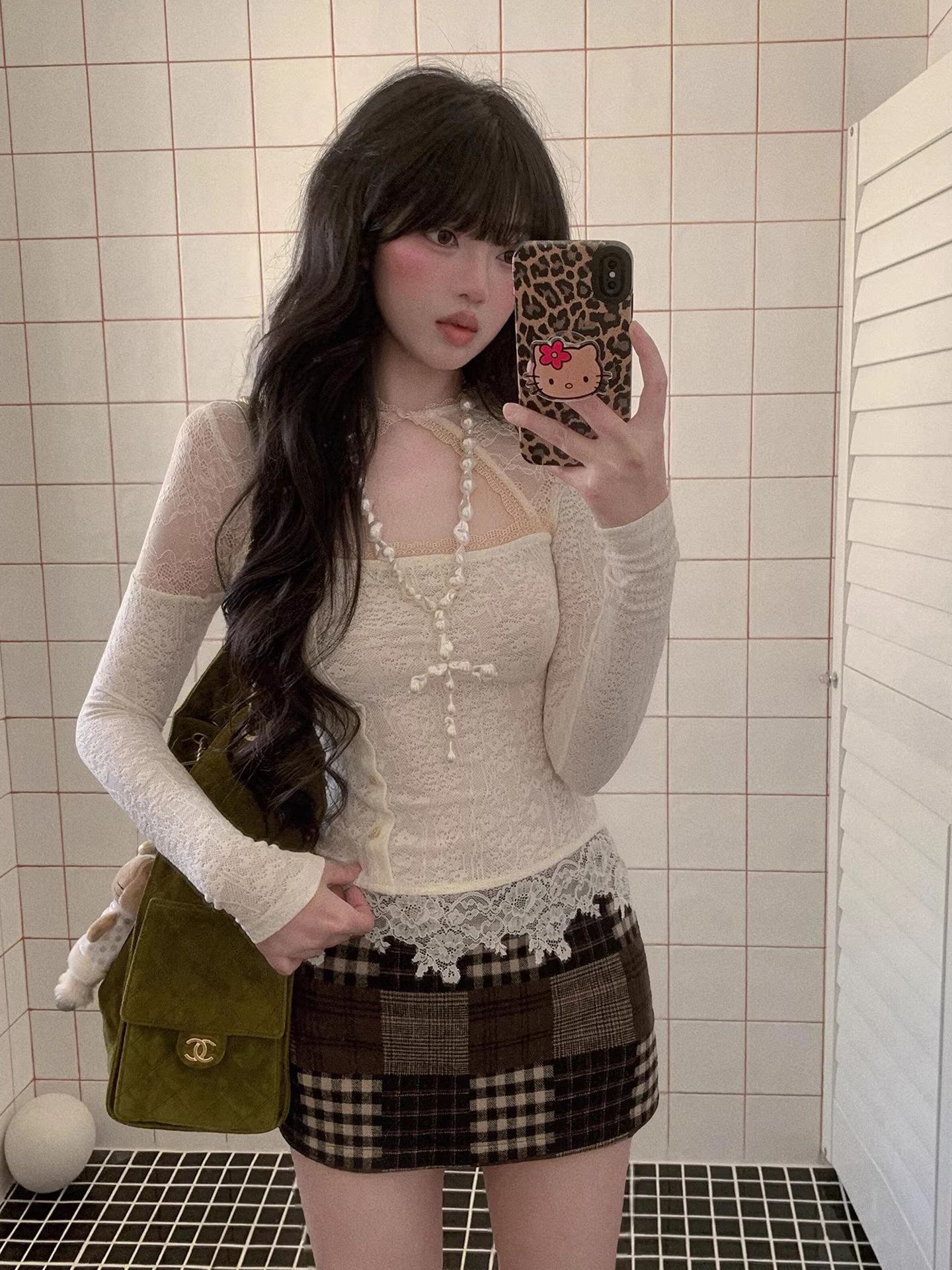 달콤함 레이스 조각 쇼트 스타일 맨위 여성 이른 봄 순수한 욕망 섹시함 나비 매듭 캐미솔 긴팔 니트 오픈 가디건