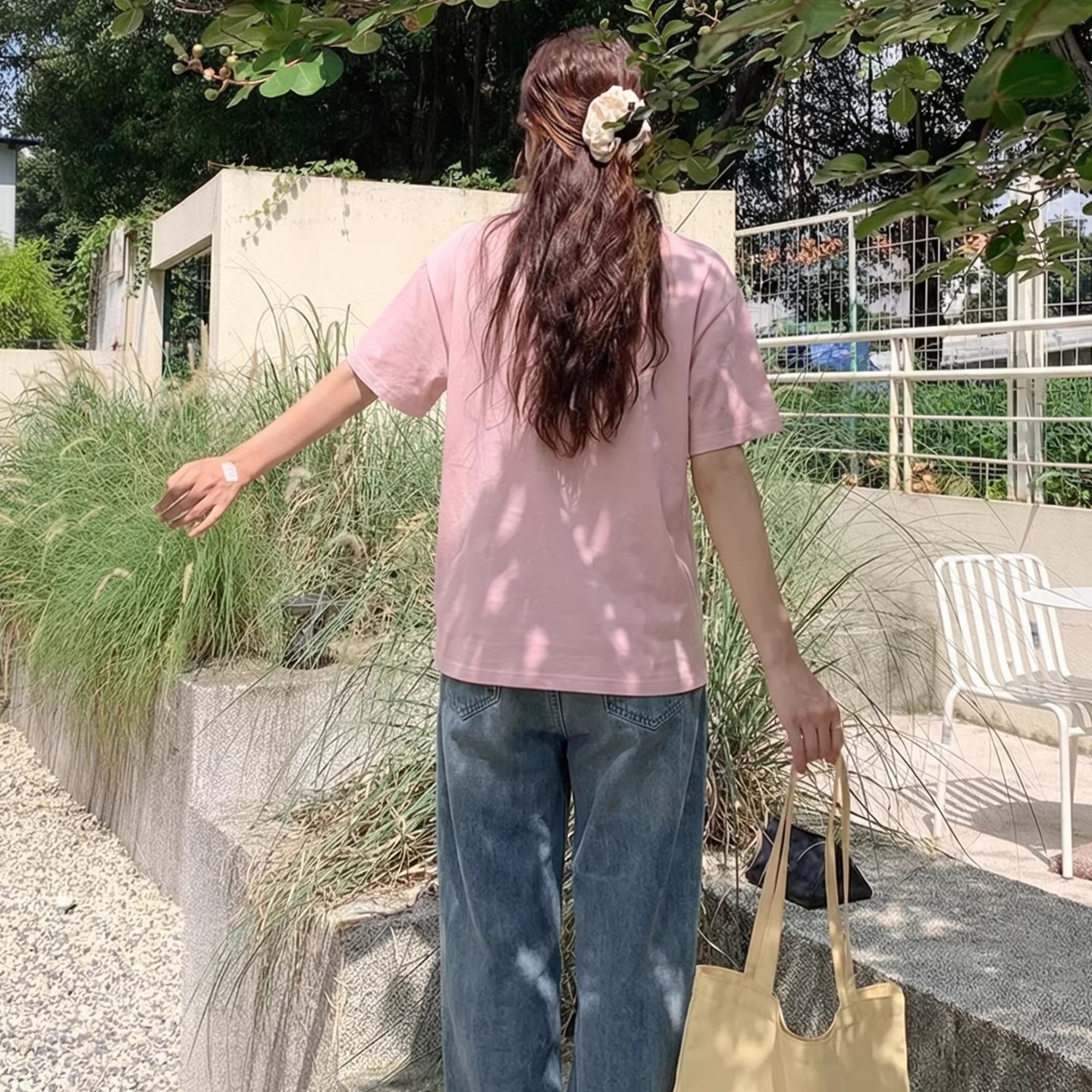 실사 배색 라운드 넥 반팔 티셔츠 여성 여름 새로운 몸매 가꾸기 한국 스타일 인사이드 가져 가라. 기본 셔츠 디자인 센스 맨위 서비스