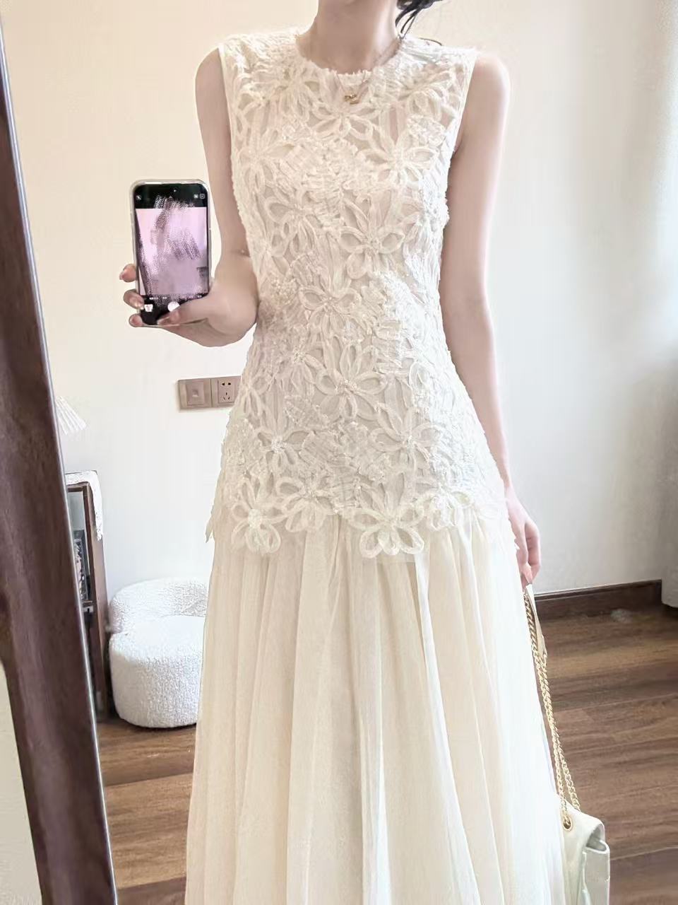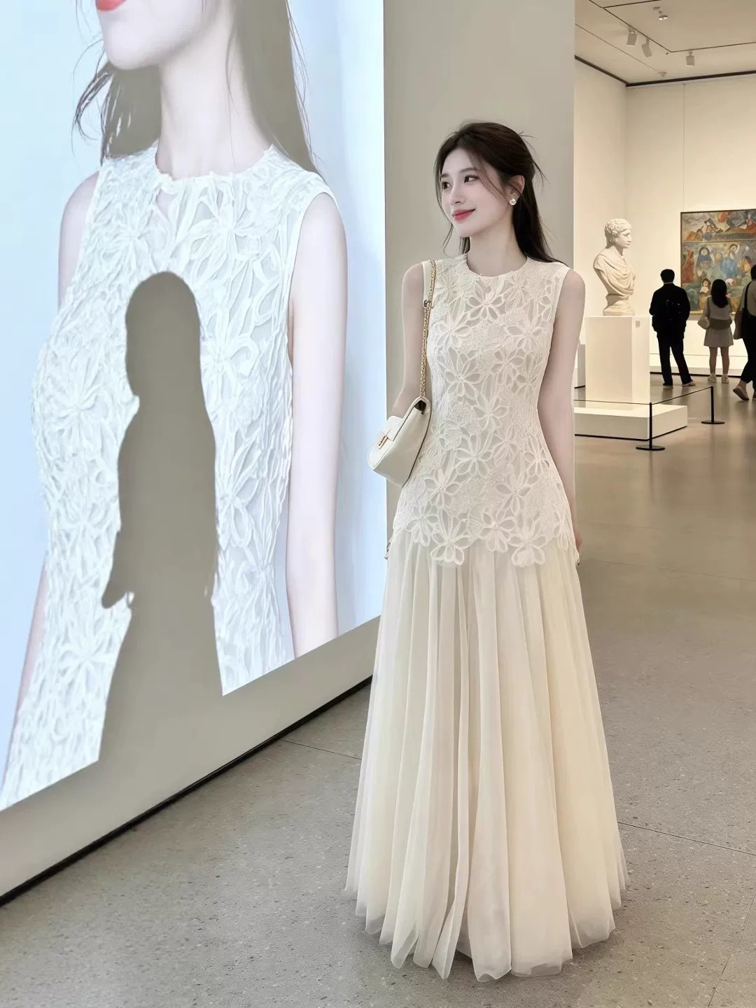 이른 봄 아름다운 여성 드레스 2026 새로운 민소매 패치워크 치마 화이트 조끼 스커트 여름