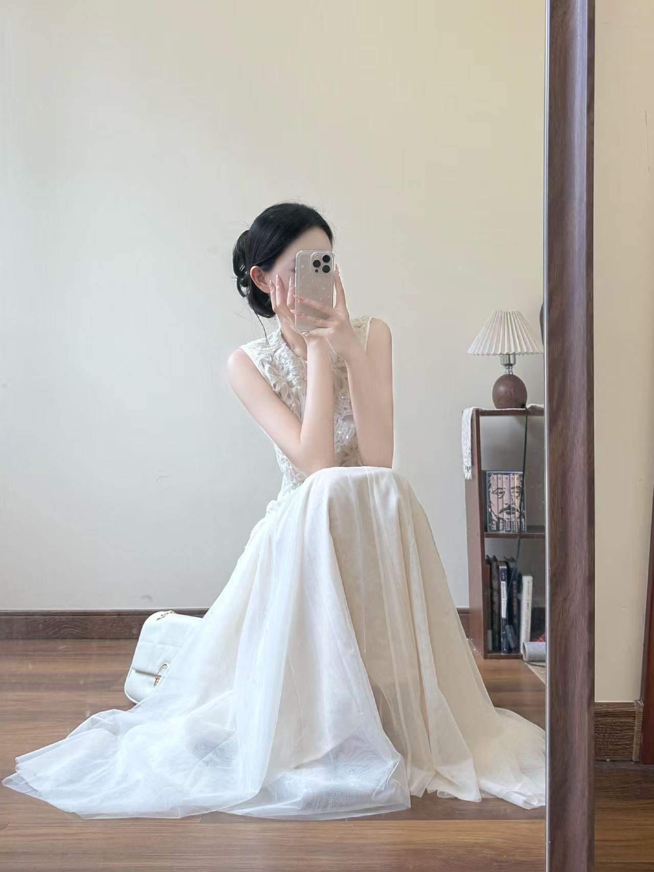 이른 봄 아름다운 여성 드레스 2026 봄 여름 새로운 민소매 부드러운 품격 패치워크 치마 화이트 조끼 치마