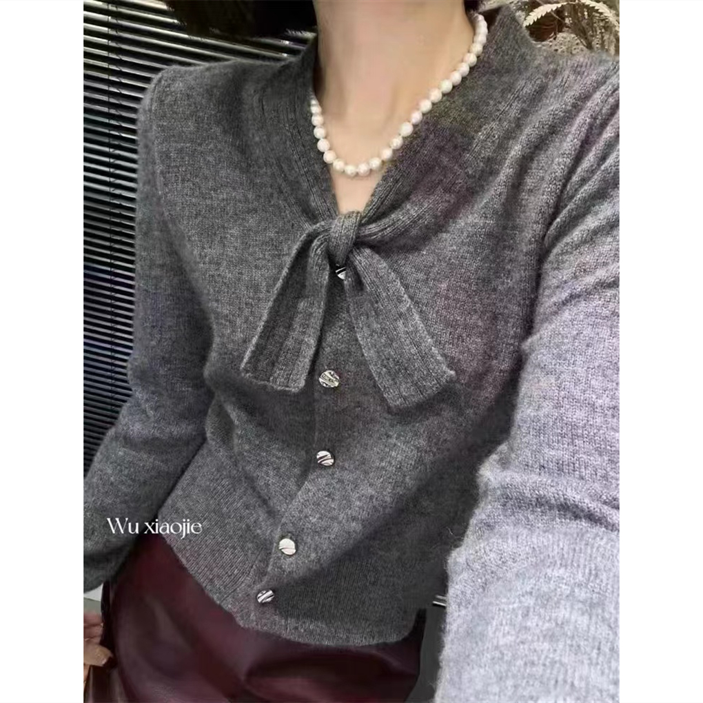 2026 봄 새로운 한 부서 슈퍼 잘 생긴 닥스 훈트 자수 부드럽다 편안함 얼음 실크 긴팔 오픈 가디건 니트 스웨터 여성