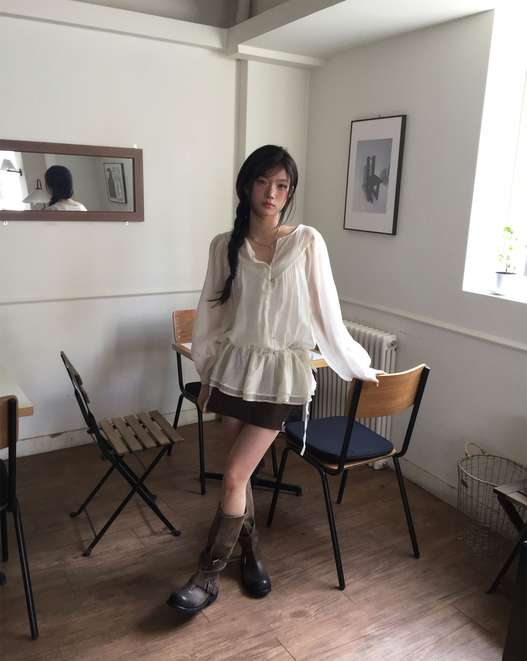 한국 동대문 2026 새로운 한국 스타일 인형 셔츠 레이스업 맨위 여성