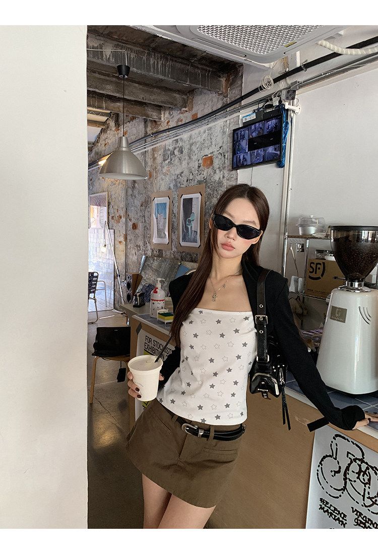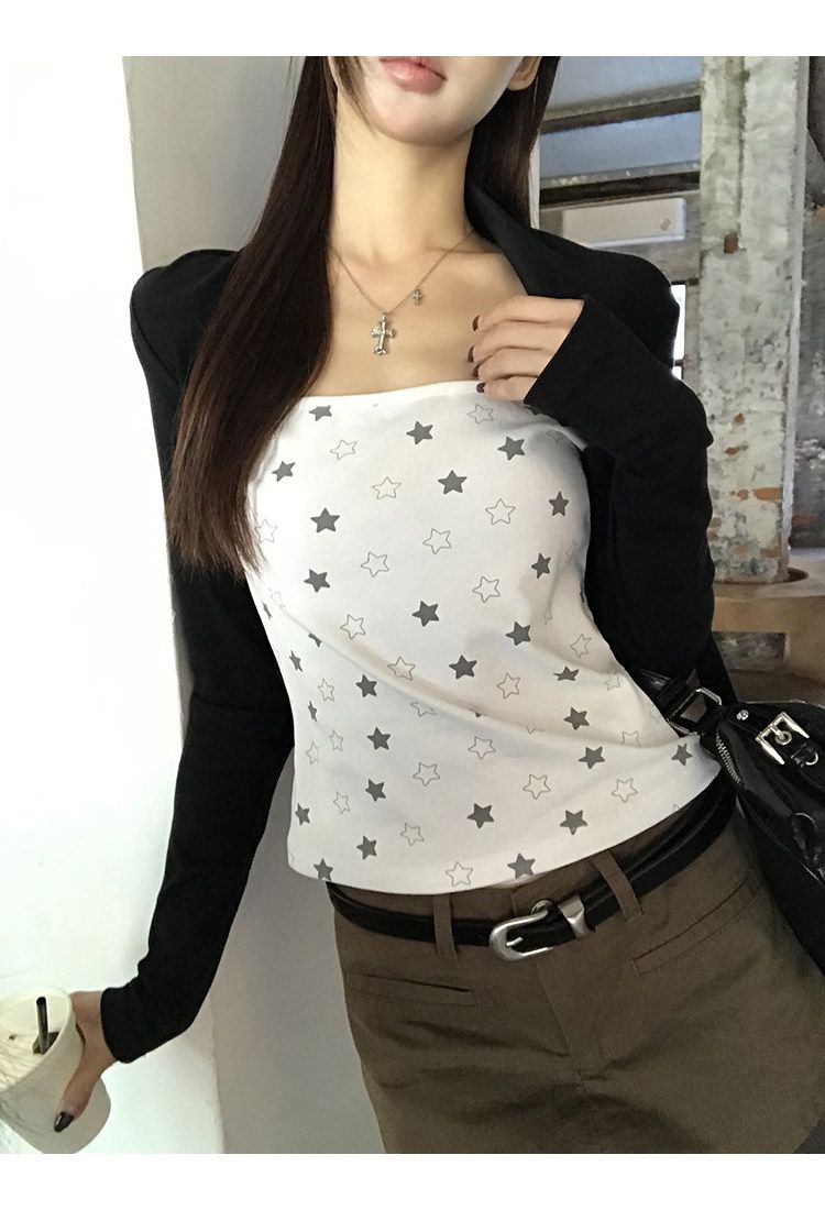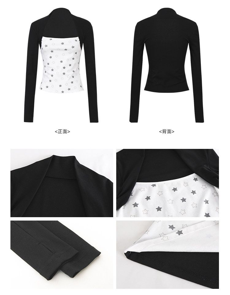 2026 봄 슈퍼 잘 생긴 인사이드 가져 가라. 긴팔 다용도 기본 셔츠 맨위 사람들 면 배색 삽입 어깨 소매 티셔츠 여성