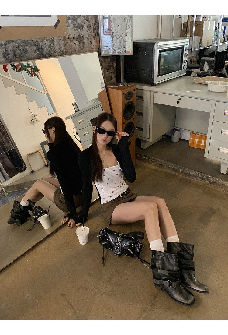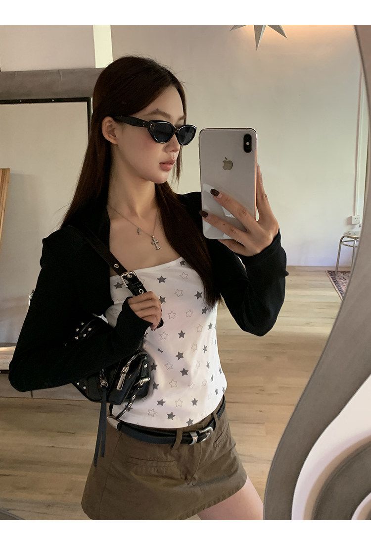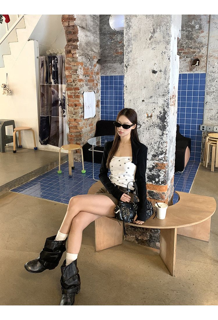 달콤함 레이스 조각 쇼트 스타일 맨위 여성 이른 봄 순수한 욕망 섹시함 나비 매듭 캐미솔 긴팔 니트 오픈 가디건