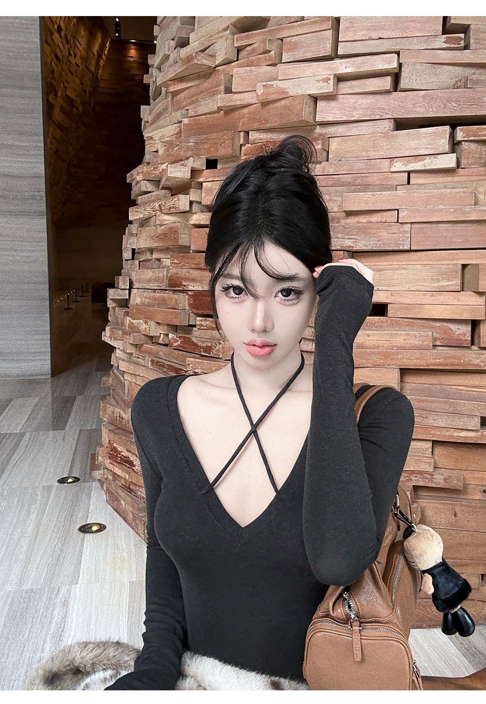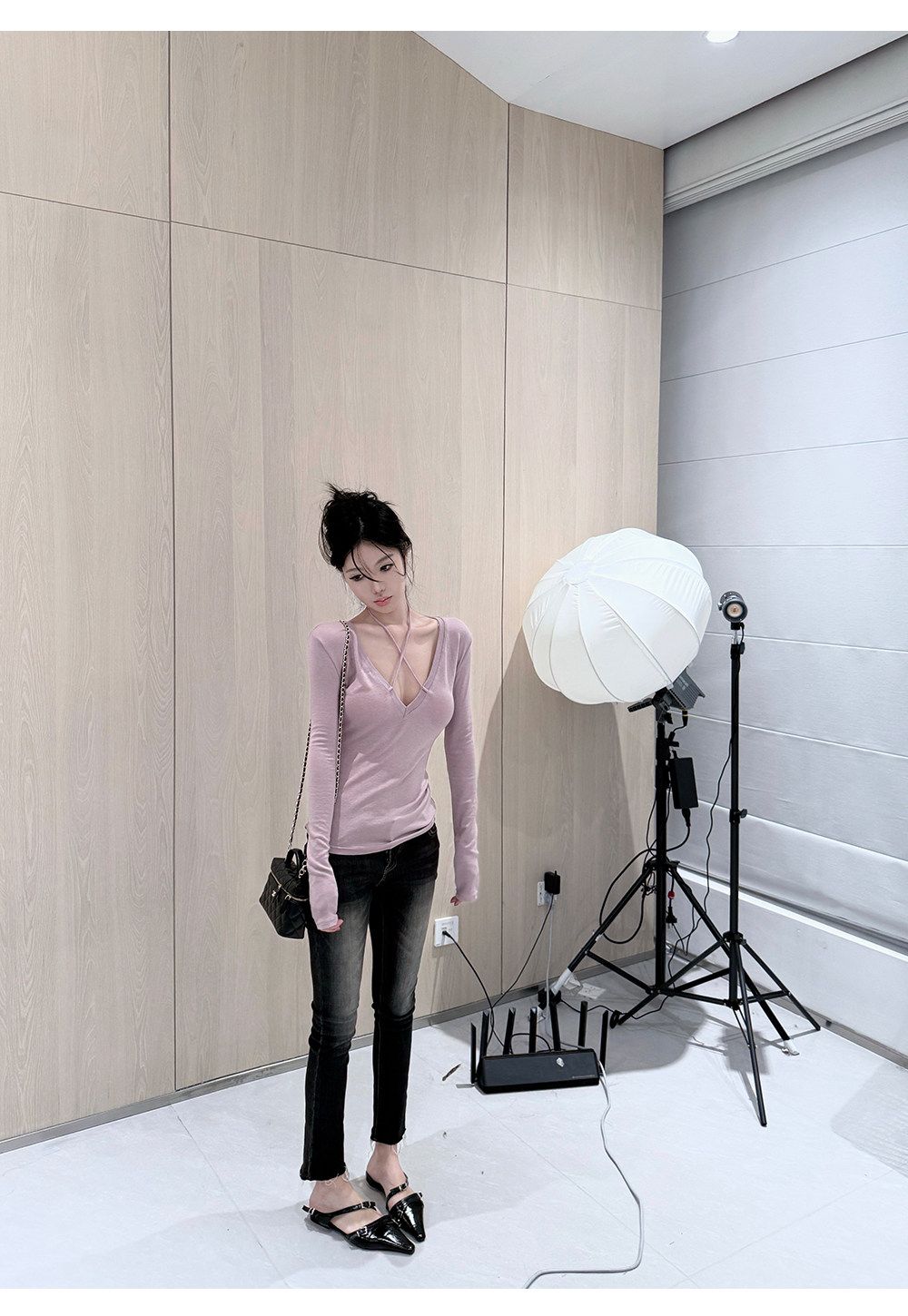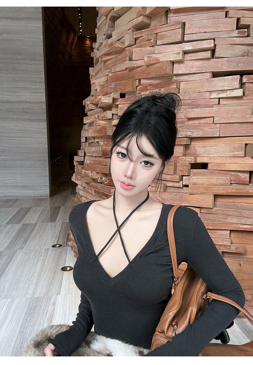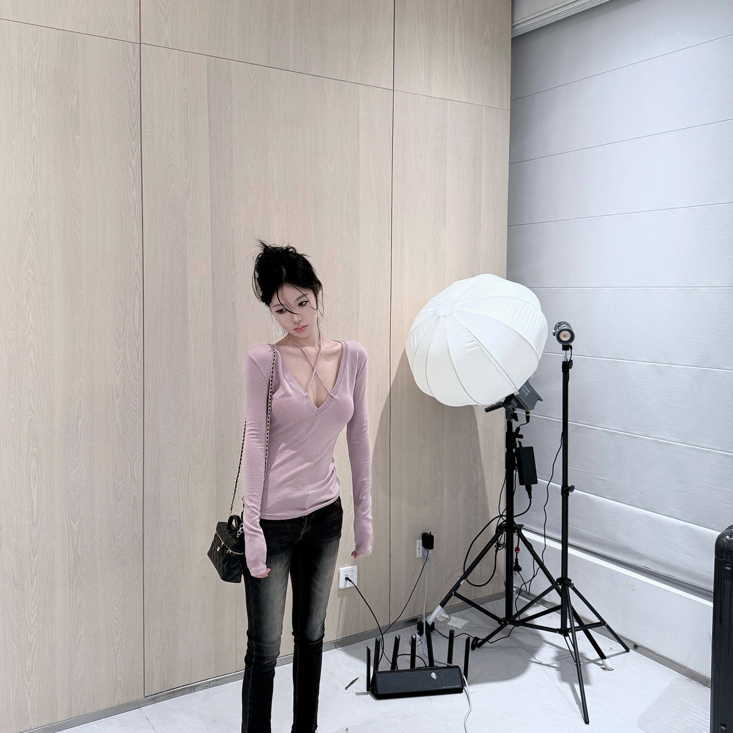 봄 여름 새로운 사람들 면 핫걸 단색 깊은 v 행침 목 인사이드 가져 가라. 기본 셔츠 여성 다용도 무거운 작업 핫픽스 맨위