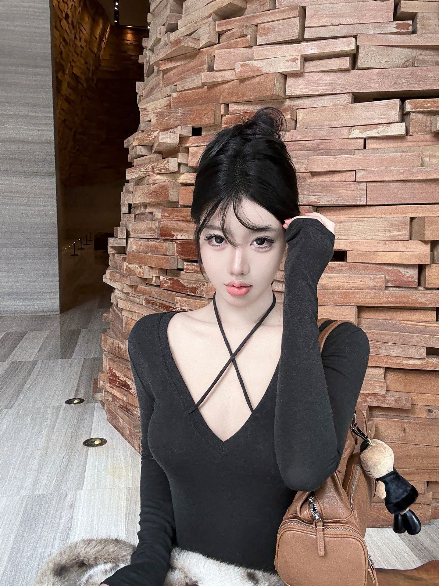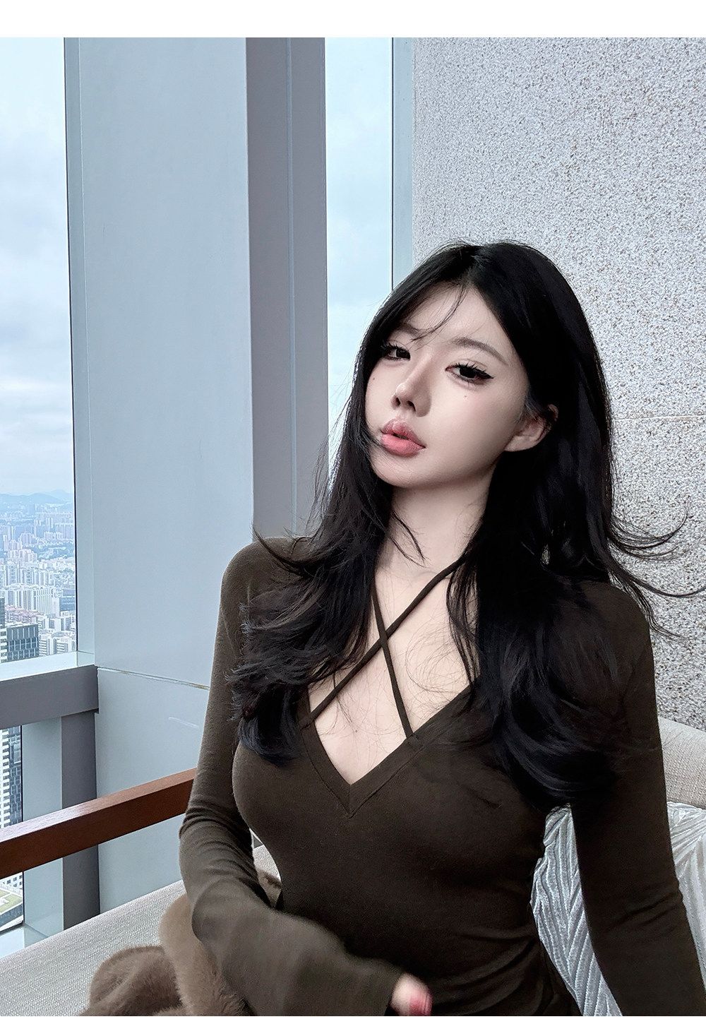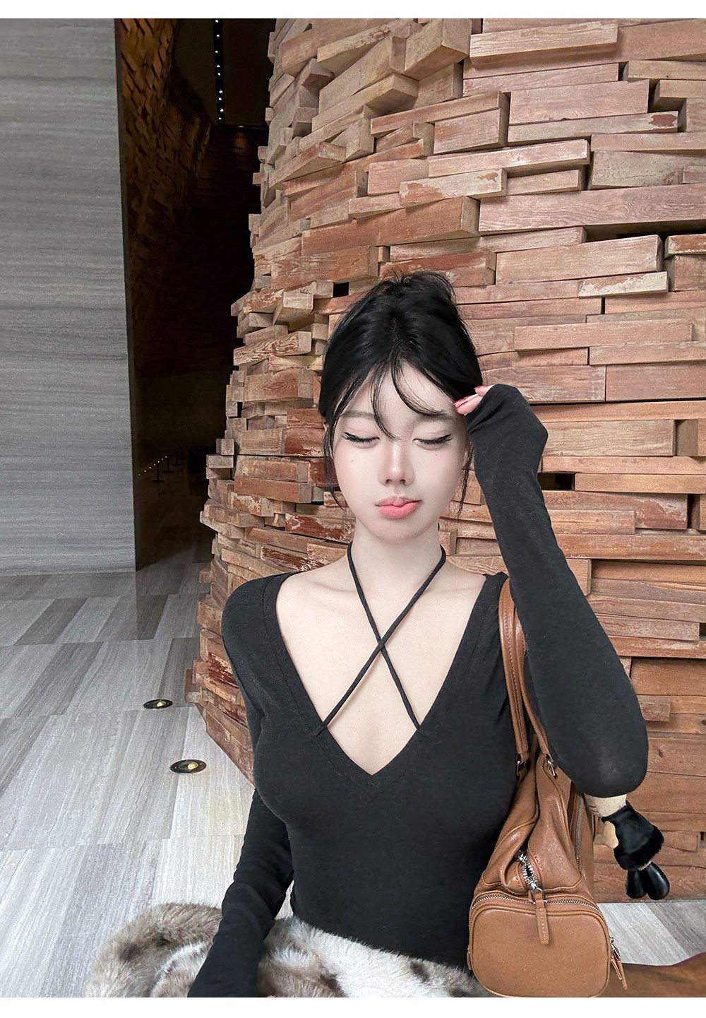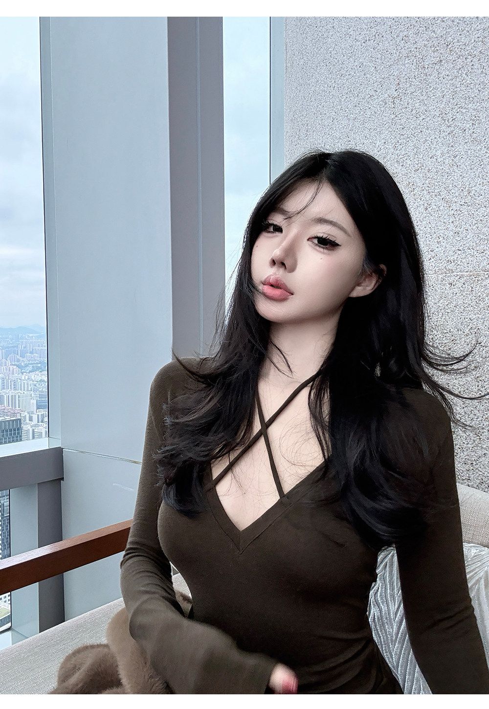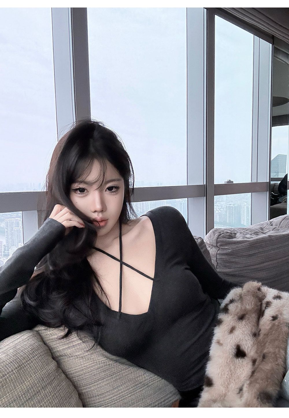 봄 여름 새로운 사람들 면 핫걸 단색 깊은 v 행침 목 인사이드 가져 가라. 기본 셔츠 여성 다용도 무거운 작업 핫픽스 맨위