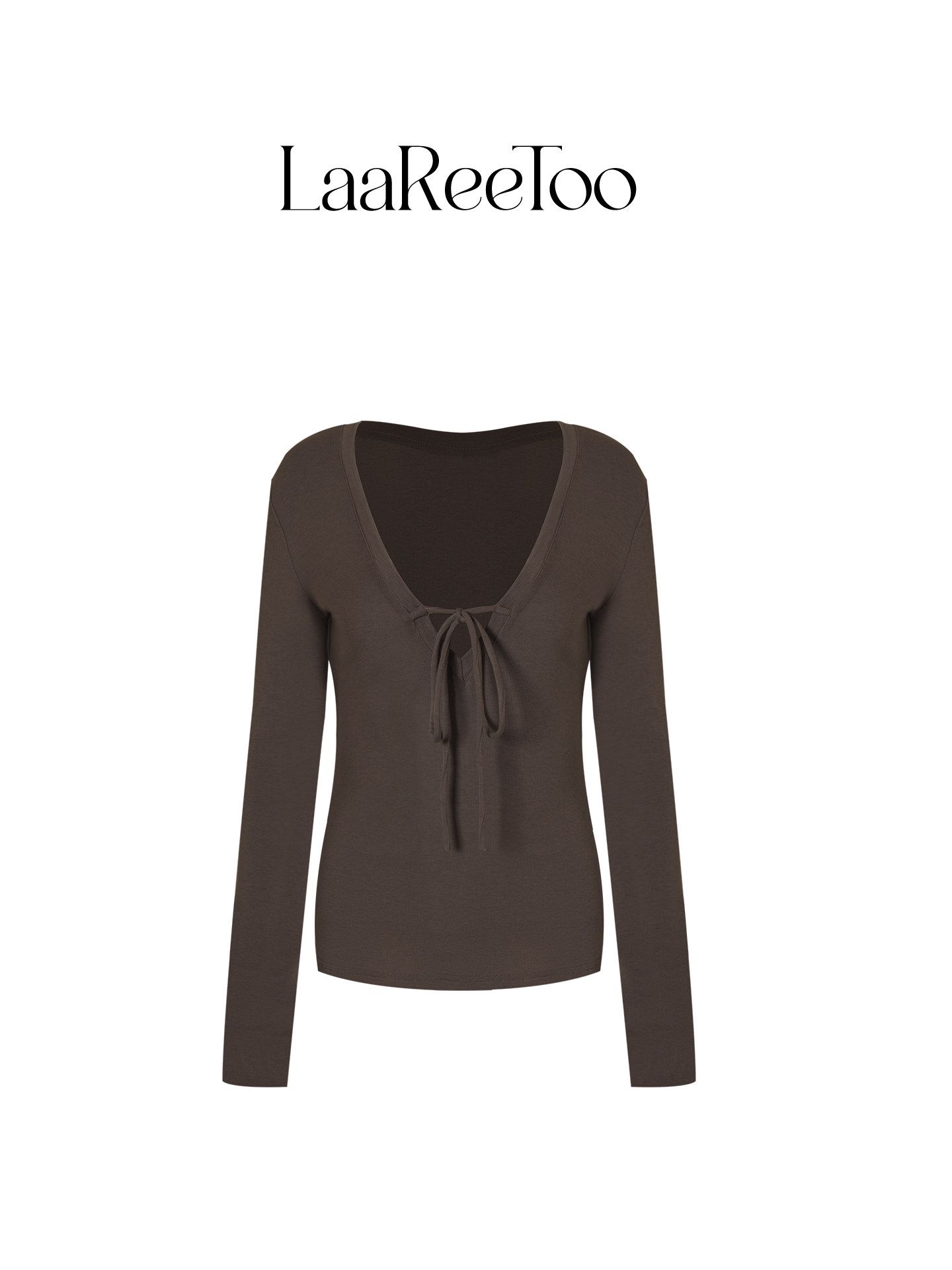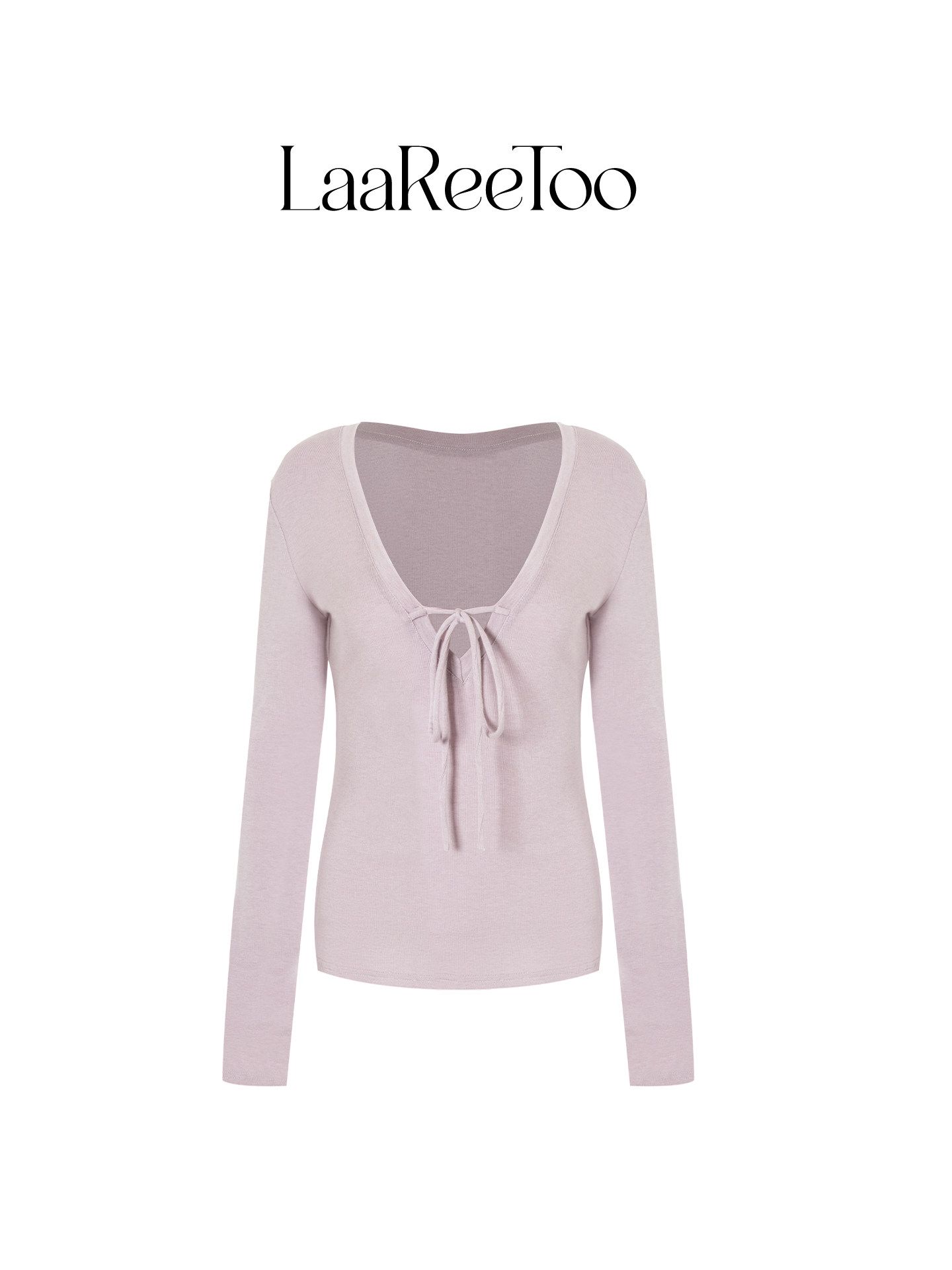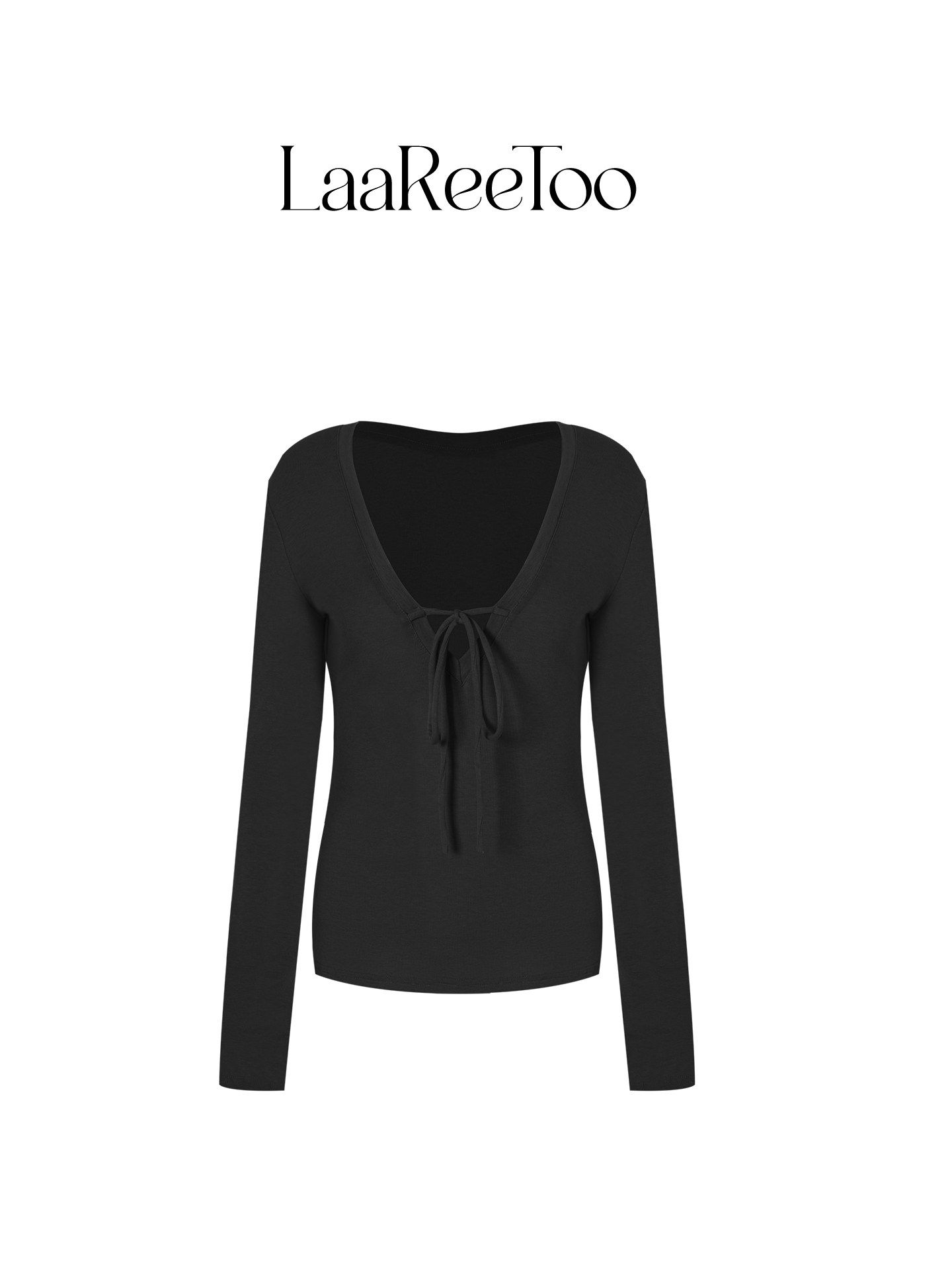 봄 새로운 사람들 면 다용도 작은 대중 고급 나비 매듭 u 칼라 맨위 여성 몸매 가꾸기 미니멀리즘 티셔츠