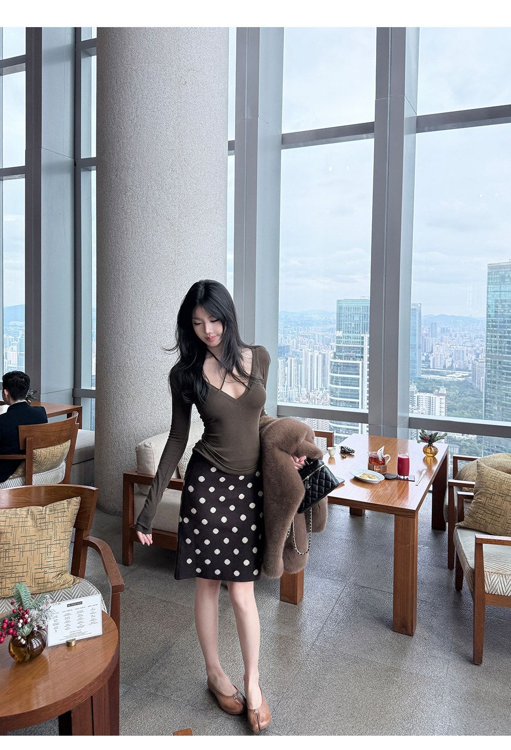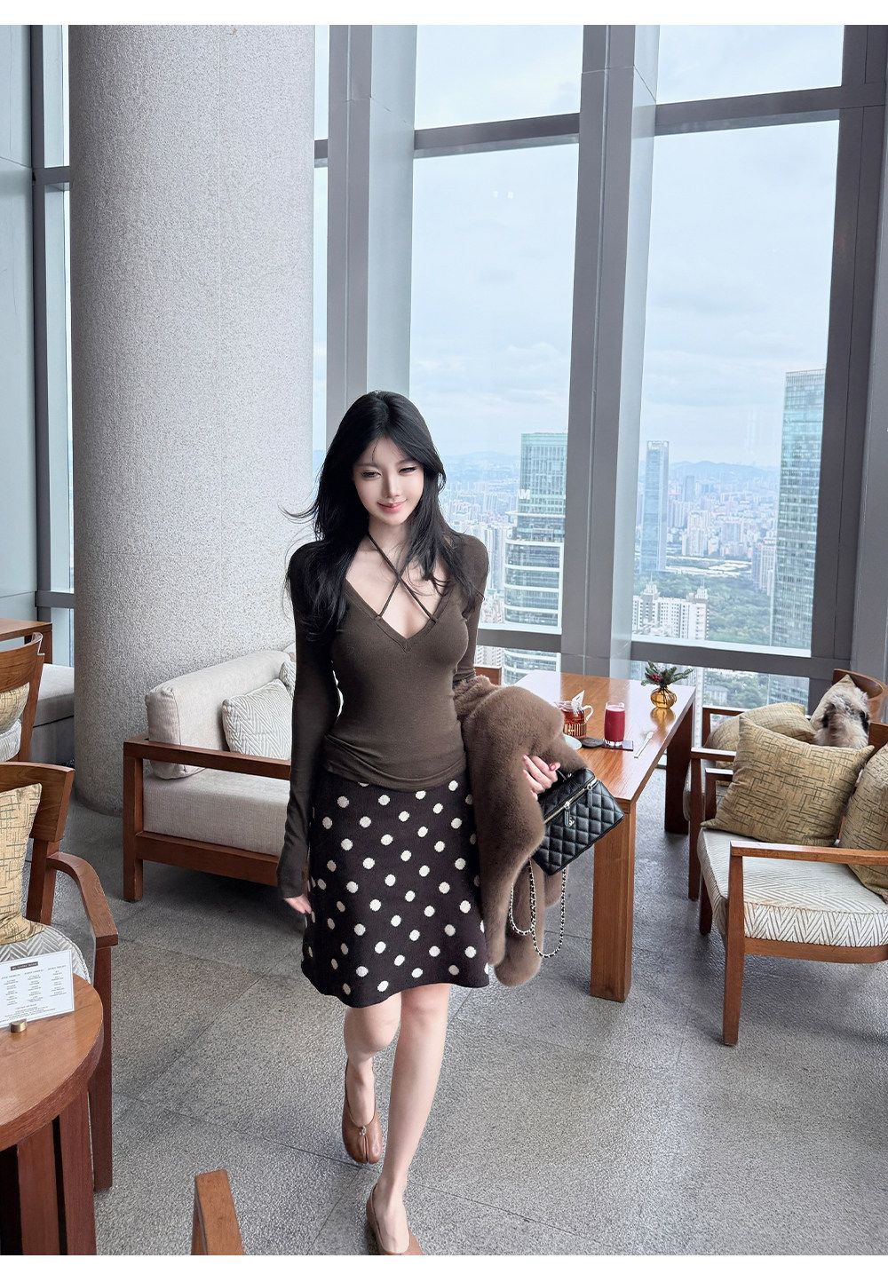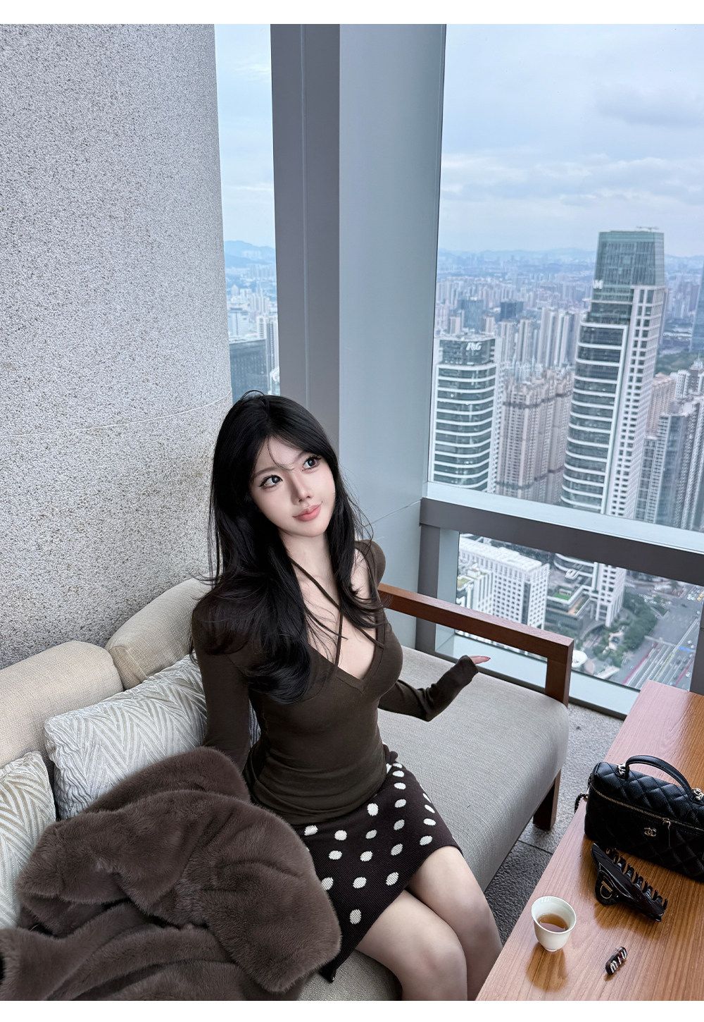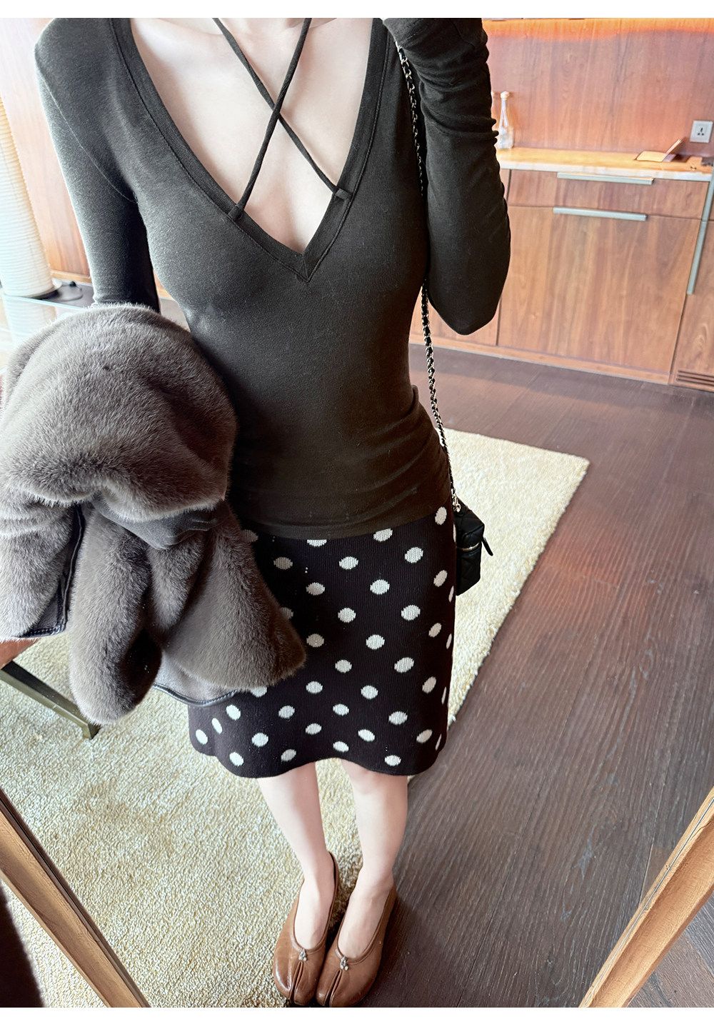 봄 여름 새로운 꽈배기 연령 감소 페이크 레이어드 V넥 도트 무늬 패치워크 니트 스웨터 여성 의류 작은 대중 새로운 Chic 맨위