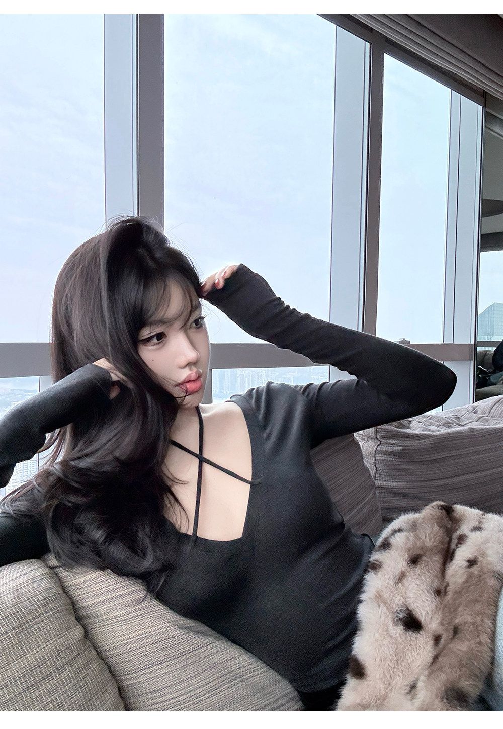2026 봄 슈퍼 잘 생긴 인사이드 가져 가라. 긴팔 다용도 기본 셔츠 맨위 사람들 면 배색 삽입 어깨 소매 티셔츠 여성