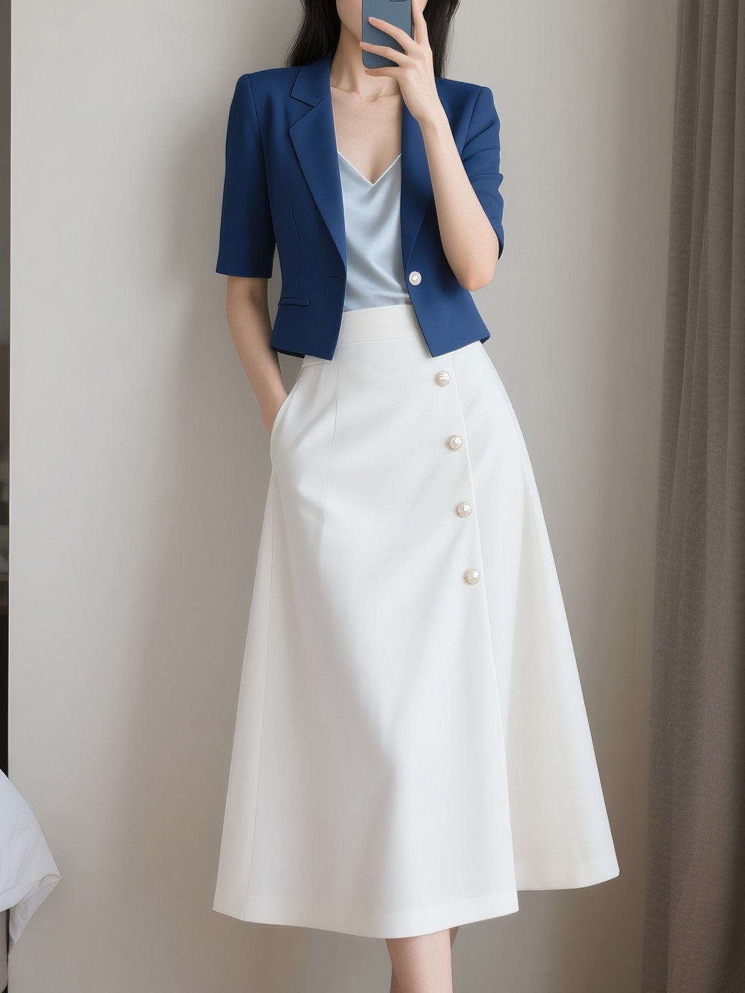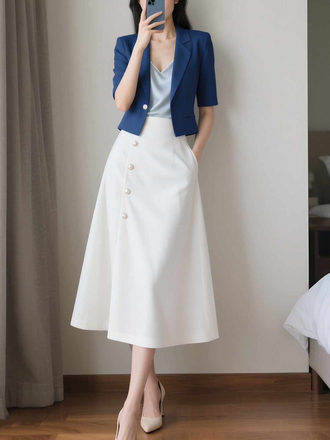 2026 새로운 여성 의류 익스트림 제인 바람 출퇴근 해군 우산 치마 한 마디 반신 스커트