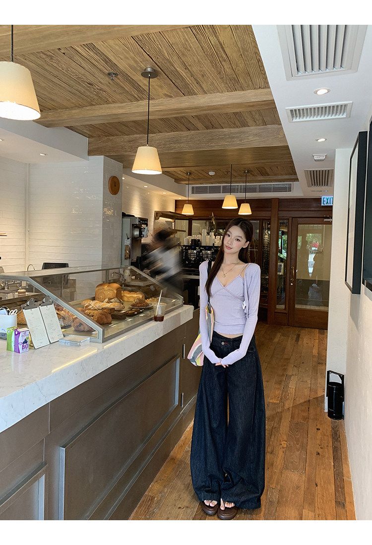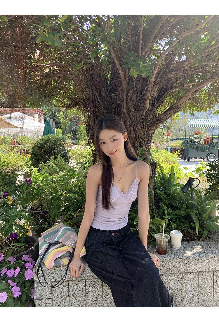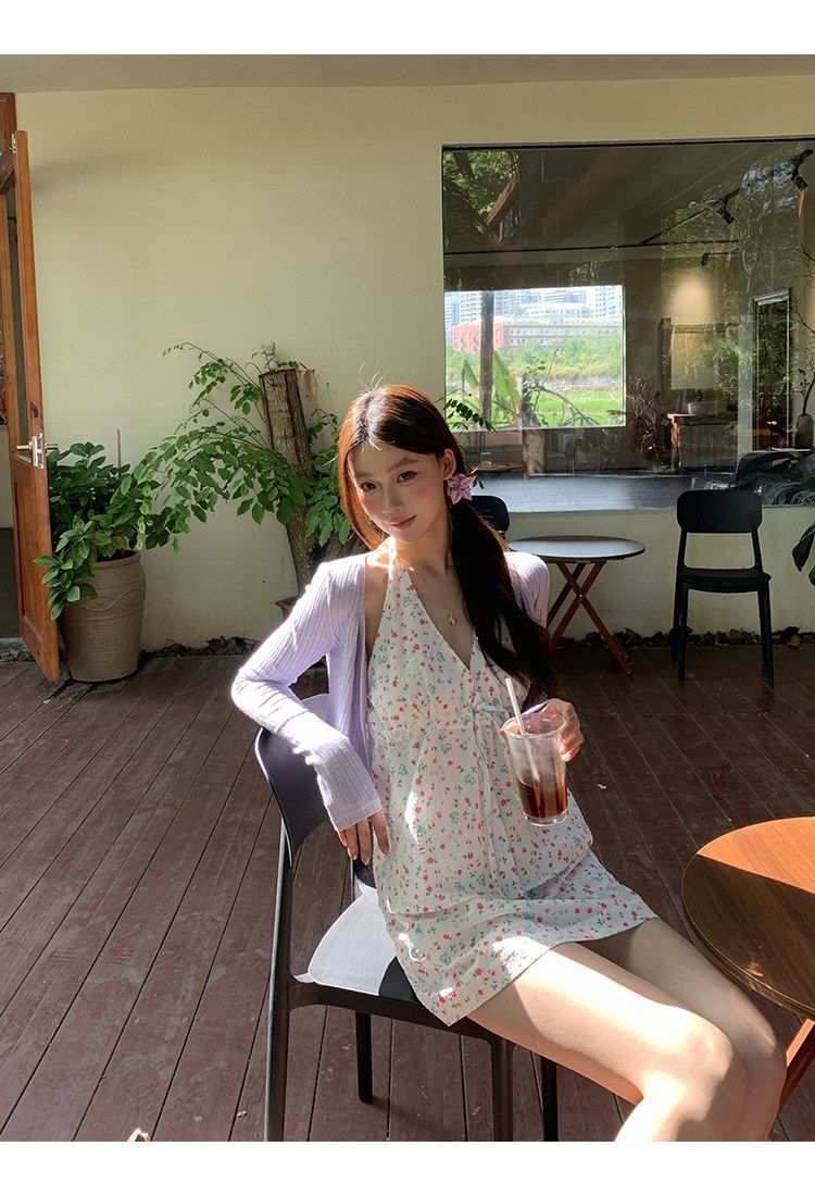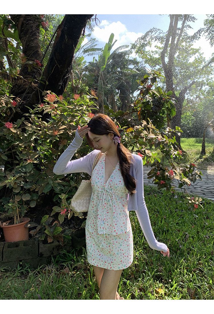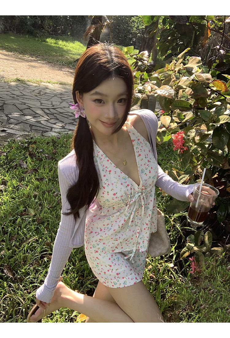핫걸 세트 보라색 니트 오픈 가디건 여성 코트 여름 새로운 인사이드 가져 가라. 레이스 캐미솔 투피스 세트