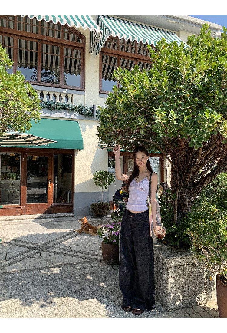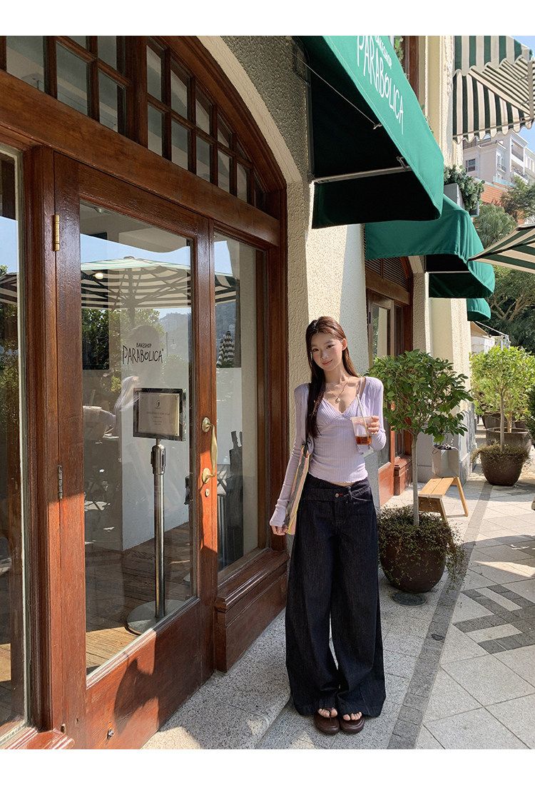 프랑스식 주머니 나비 매듭 부츠컷 청바지 여름 새로운 허리 펭 몸매 가꾸기 하이웨이스트 엉덩이 디스플레이 바닥 청소 호스 슈 바지