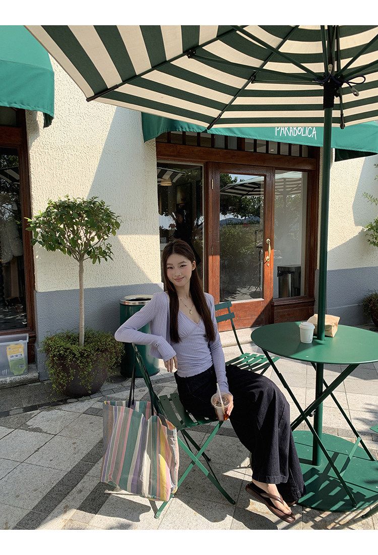 한 부서 chic 블루 회색 스트라이프 니트 반팔 여성 2026 새로운 품격 부드러운 바람 몸매 가꾸기 슬림해 보이는 티셔츠 맨위