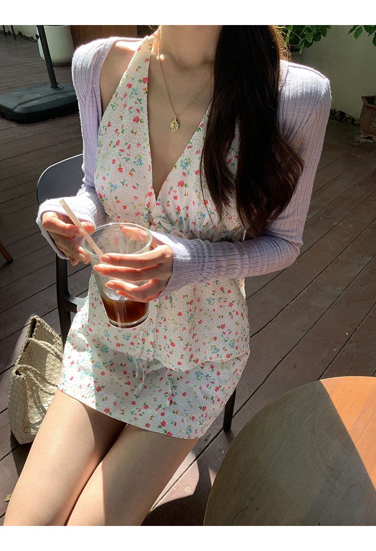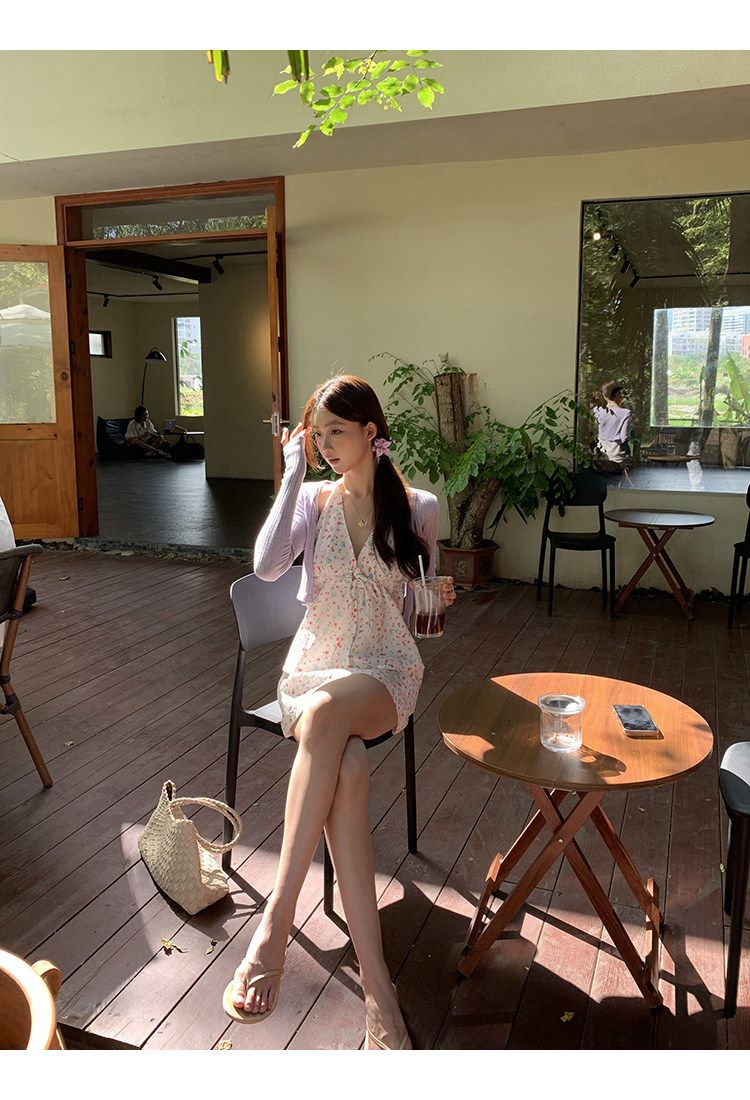 원본 것 네리 프랑스식 품격 민소매 슬림해 보이는 드레스 작은 키 첫사랑 인형 치마 꽃밭 미니 스커트