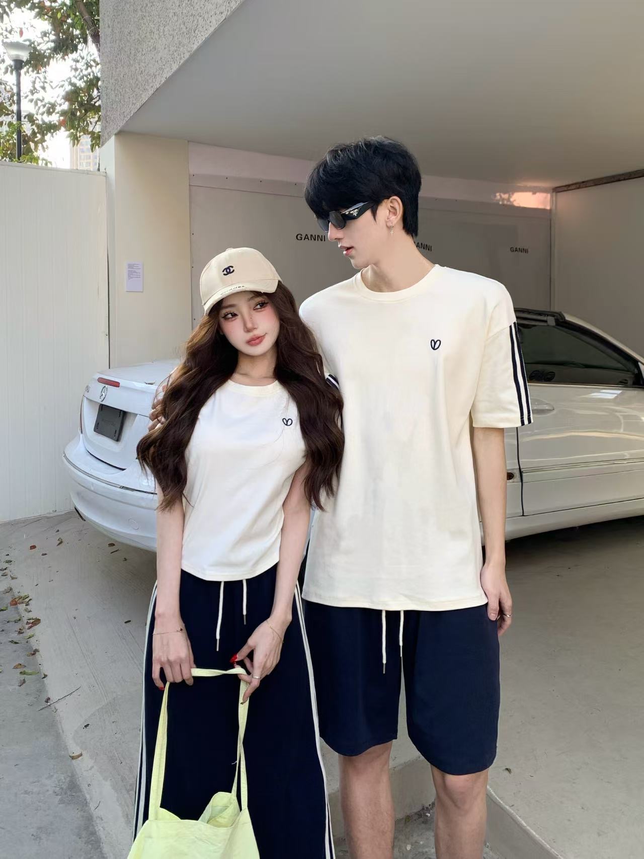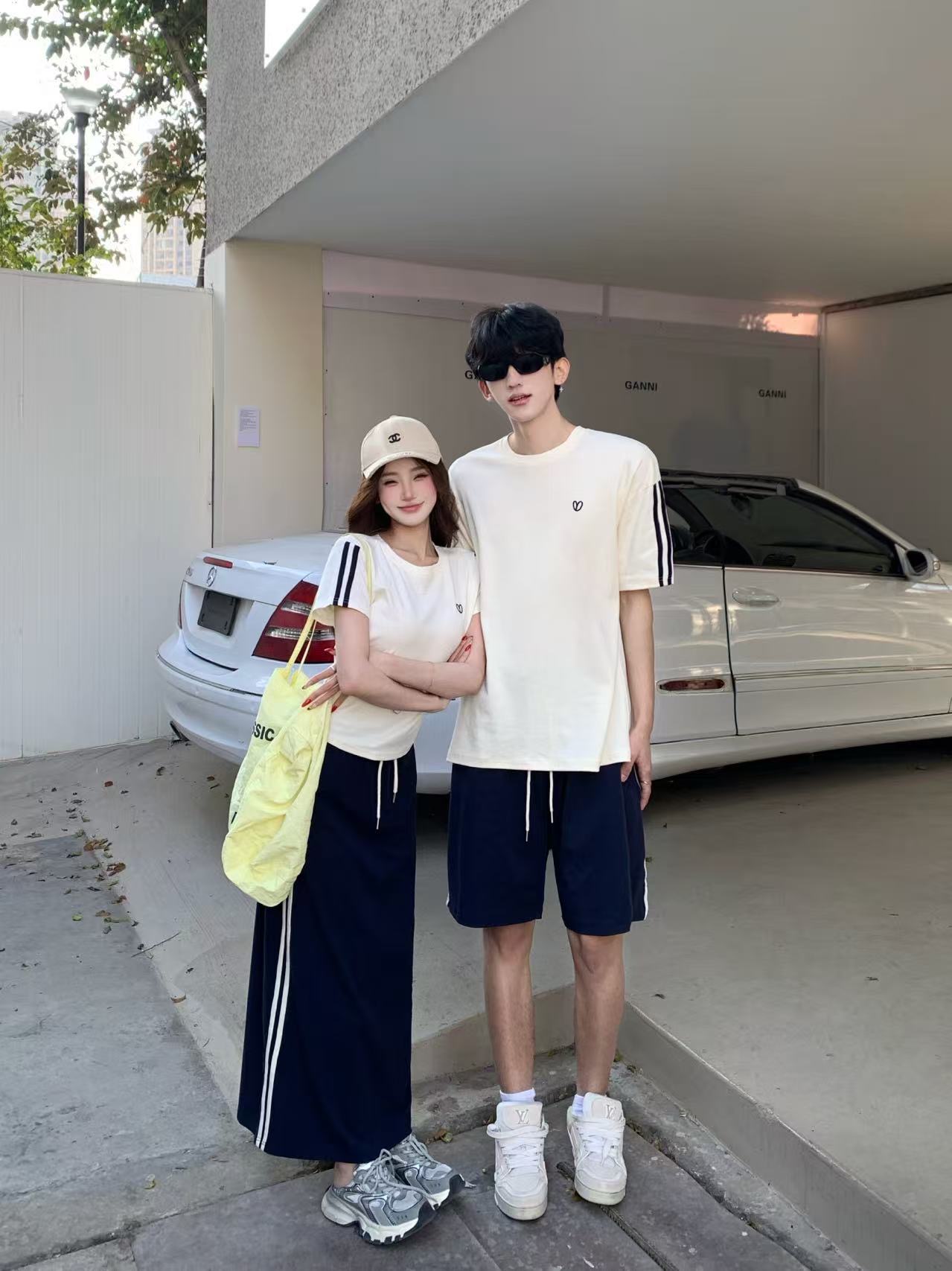 실사 캐주얼 운동복 세트 여성 여름 학생 한국 스타일 패션 반팔 미니 스커트 투피스 세트 커플룩