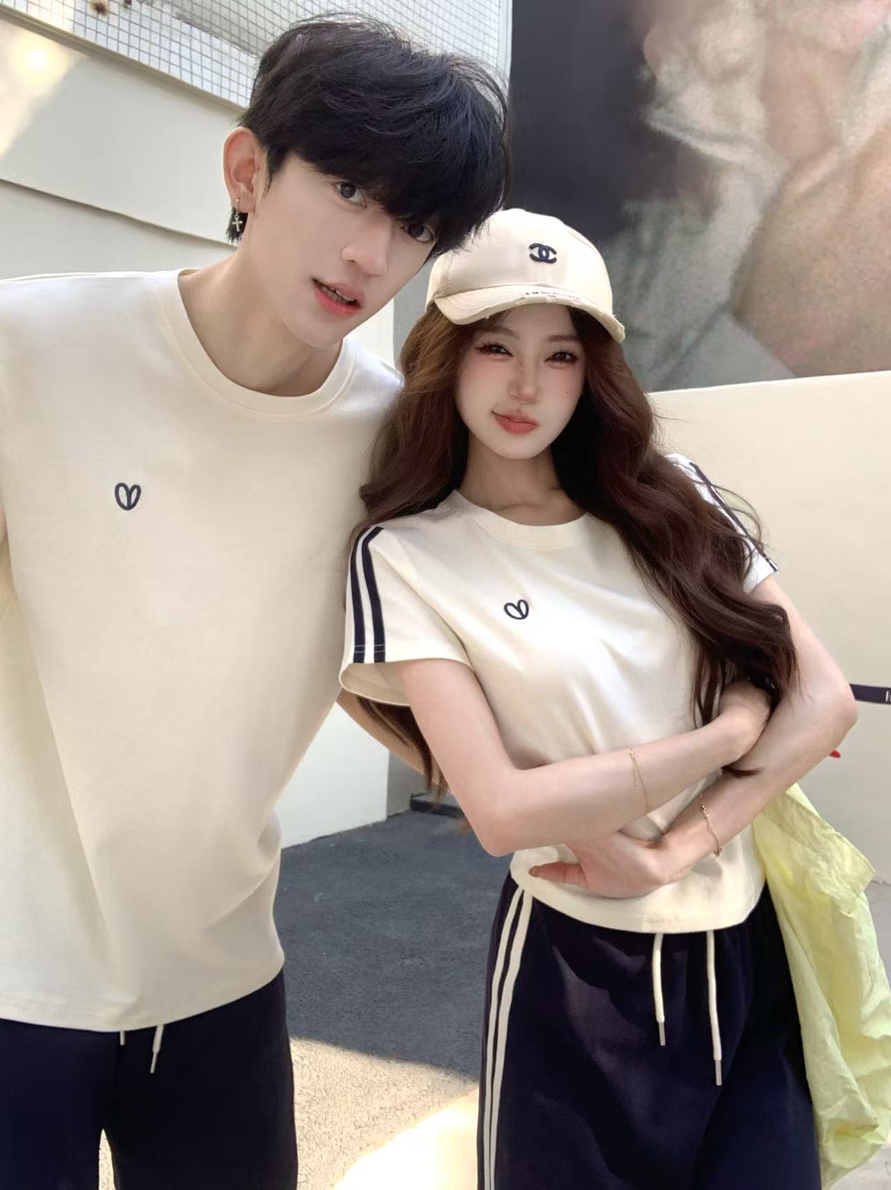 실사 여름 캐주얼 여성 품격 티셔츠 반신 스커트 여성 의류 맨위 치마 세트 커플룩