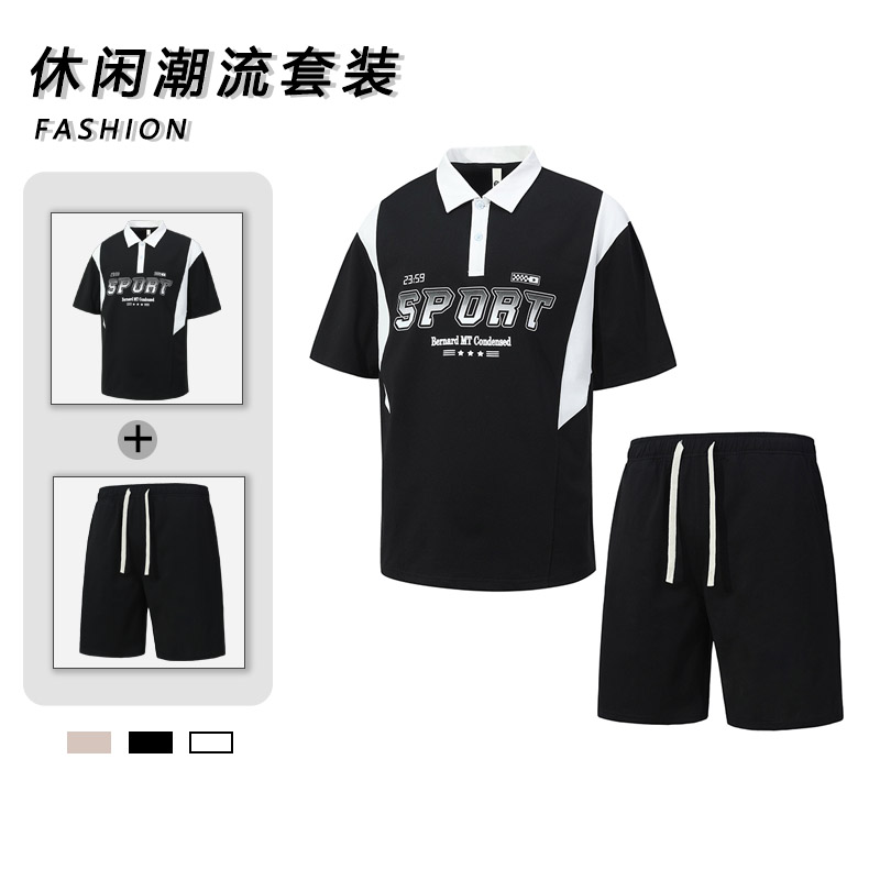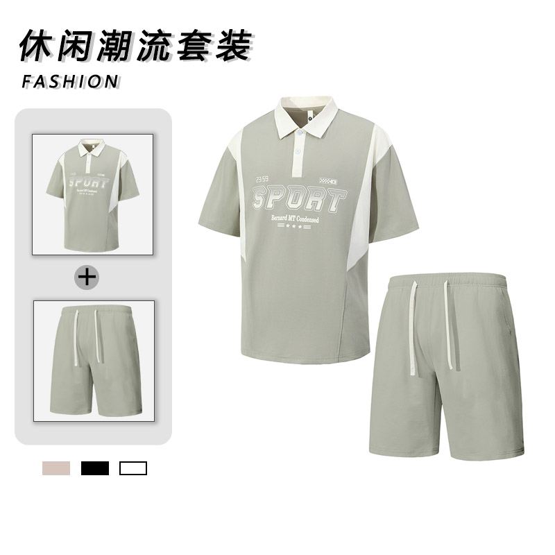 2026 새로운 루즈핏 반팔 반바지 세트 여름 캐주얼 편안함 통기성 polo 시더 프린트 맨위 반바지