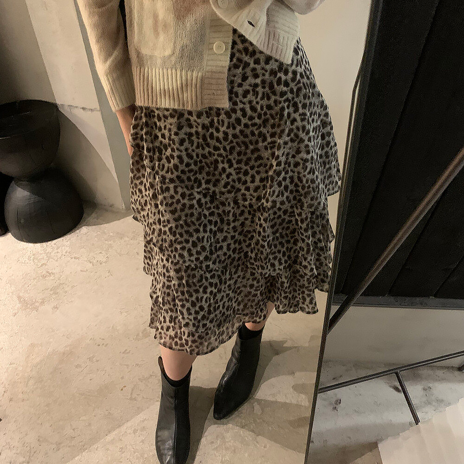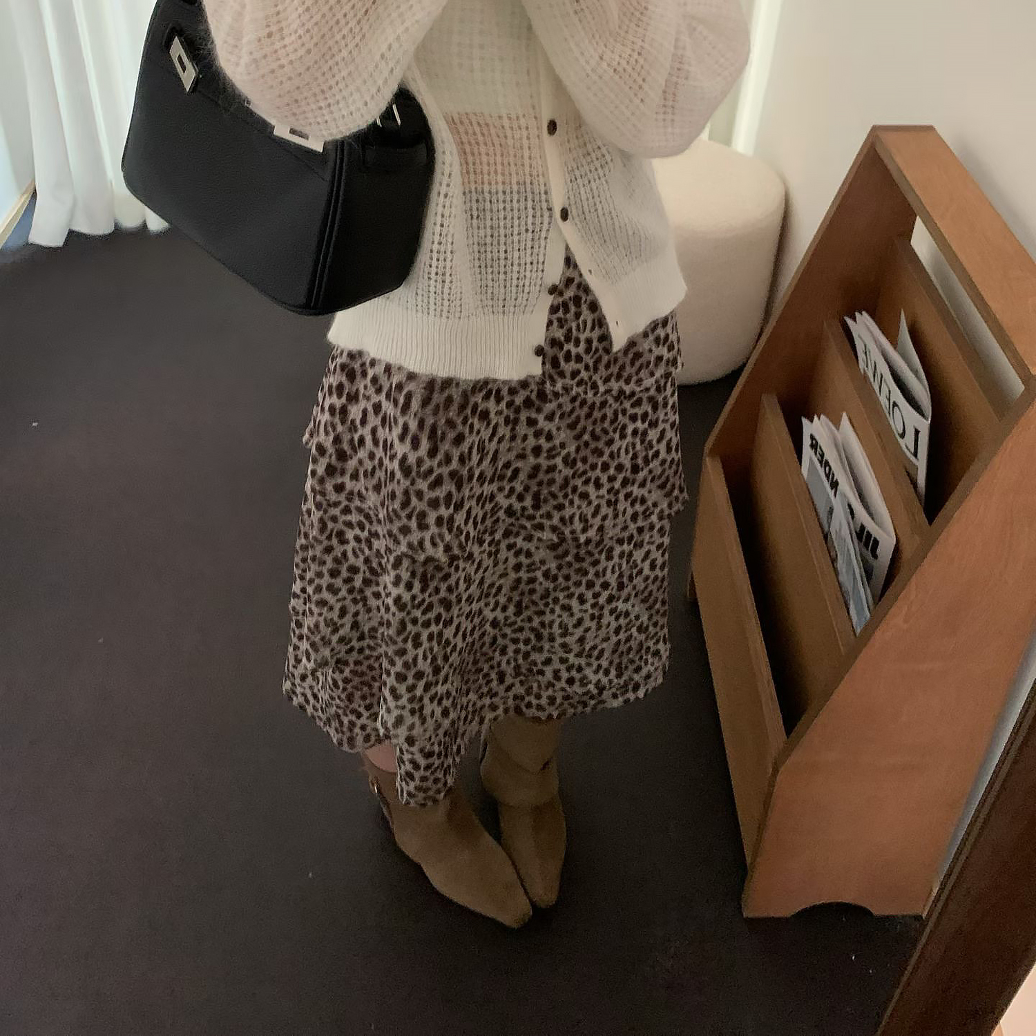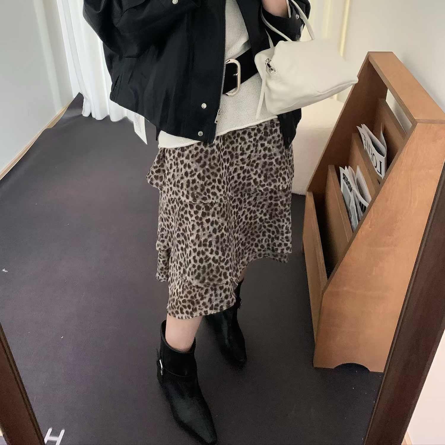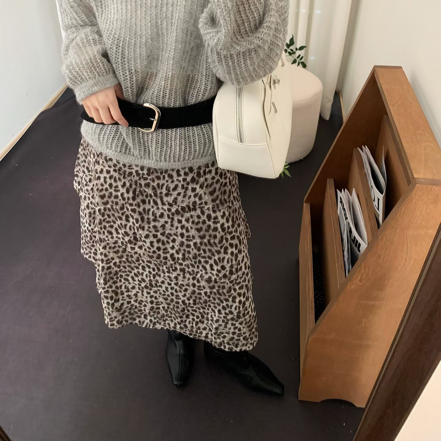 실사 겨울 켜기 새로운 두꺼운 부드러운 작은 꽃무늬 프릴 한 마디 디스플레이 다리 길이 2025 겨울 분위기 센스 반신 스커트