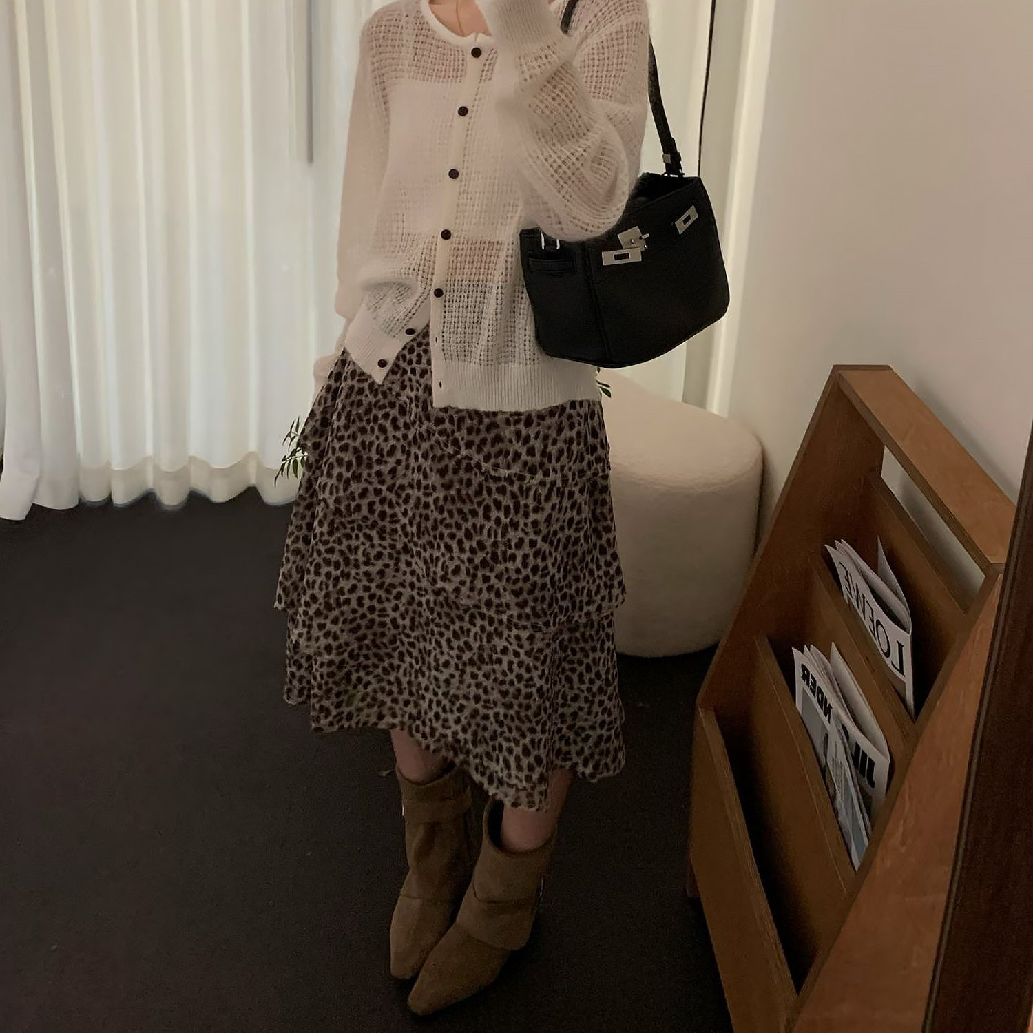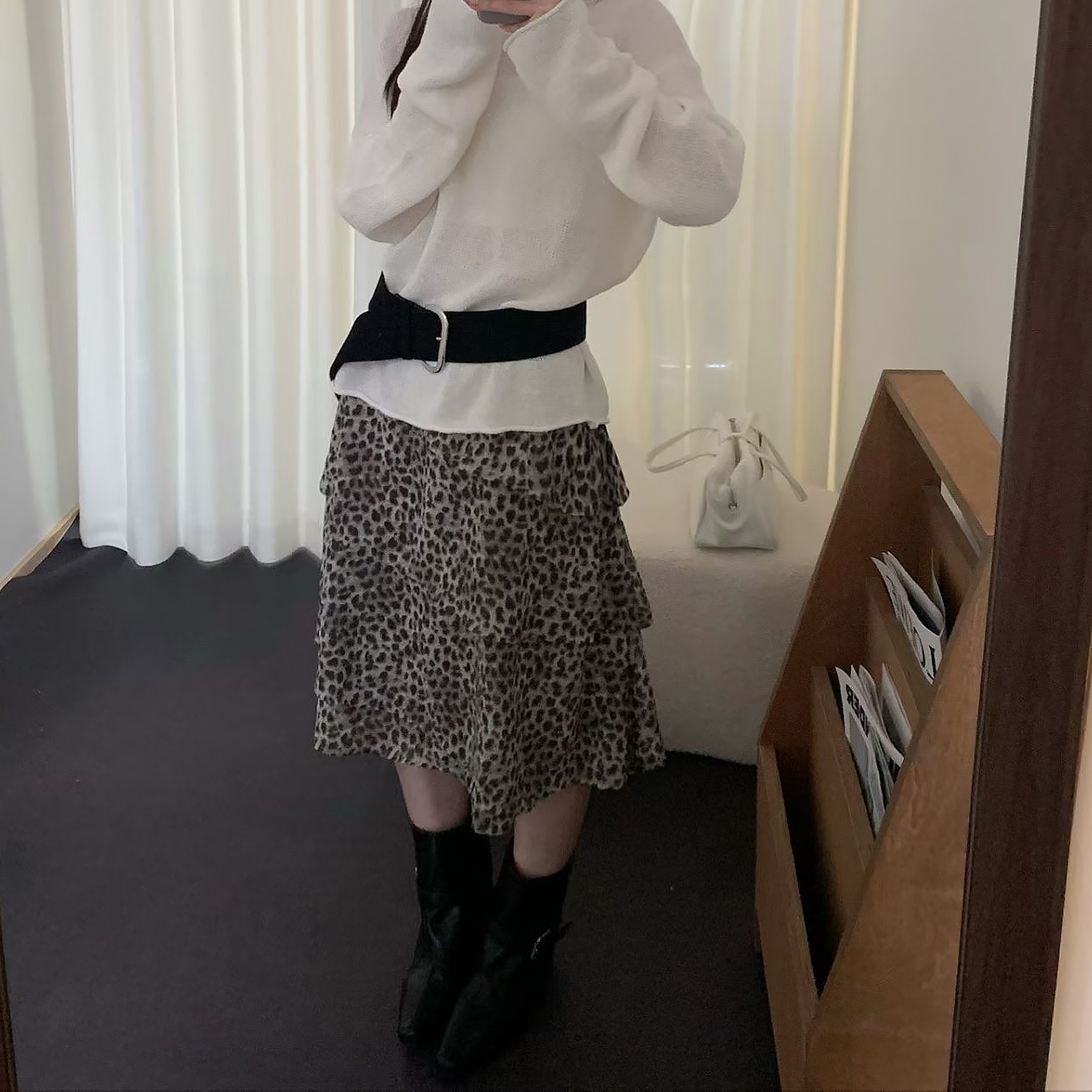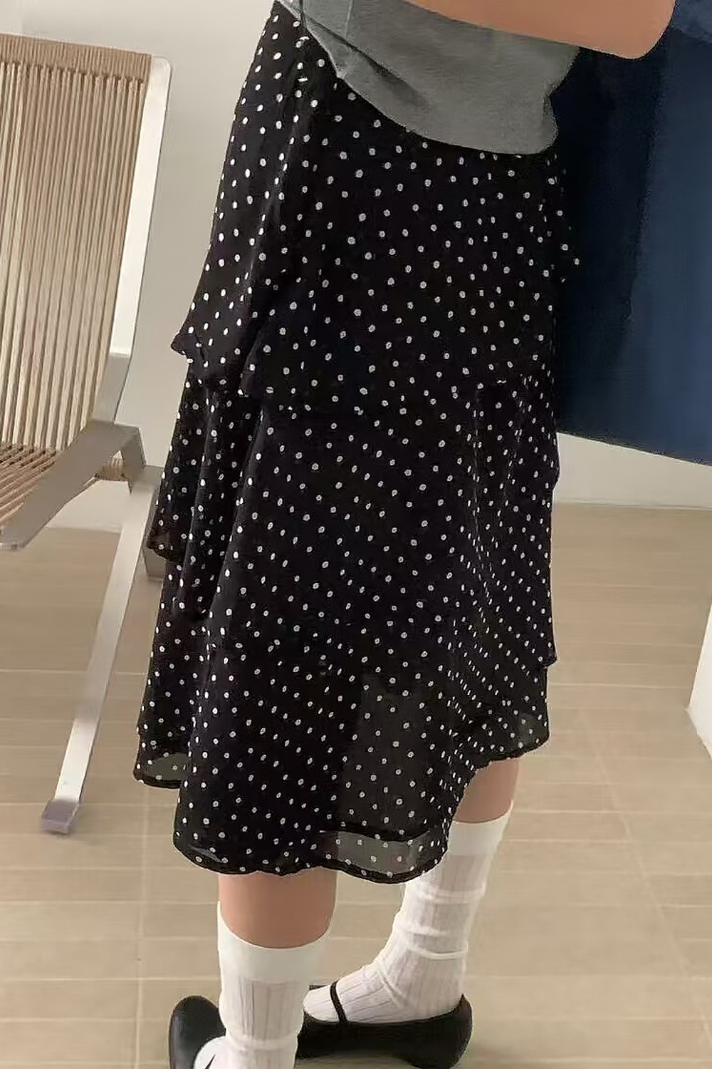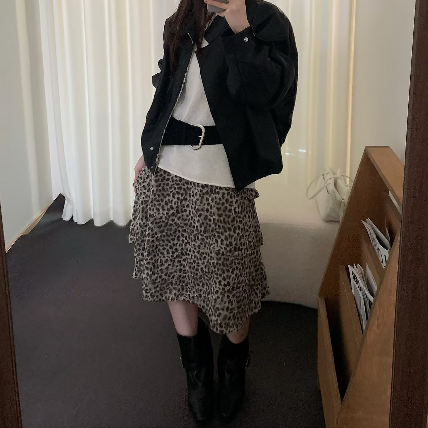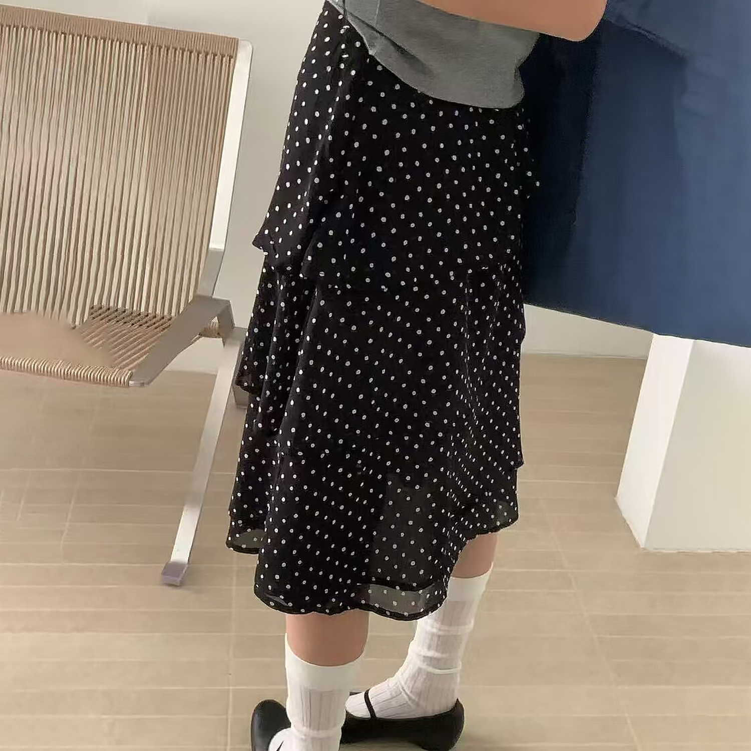 실사 겨울 켜기 새로운 두꺼운 부드러운 작은 꽃무늬 프릴 한 마디 디스플레이 다리 길이 2025 겨울 분위기 센스 반신 스커트