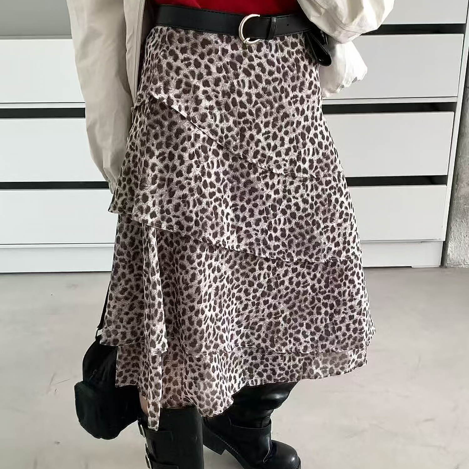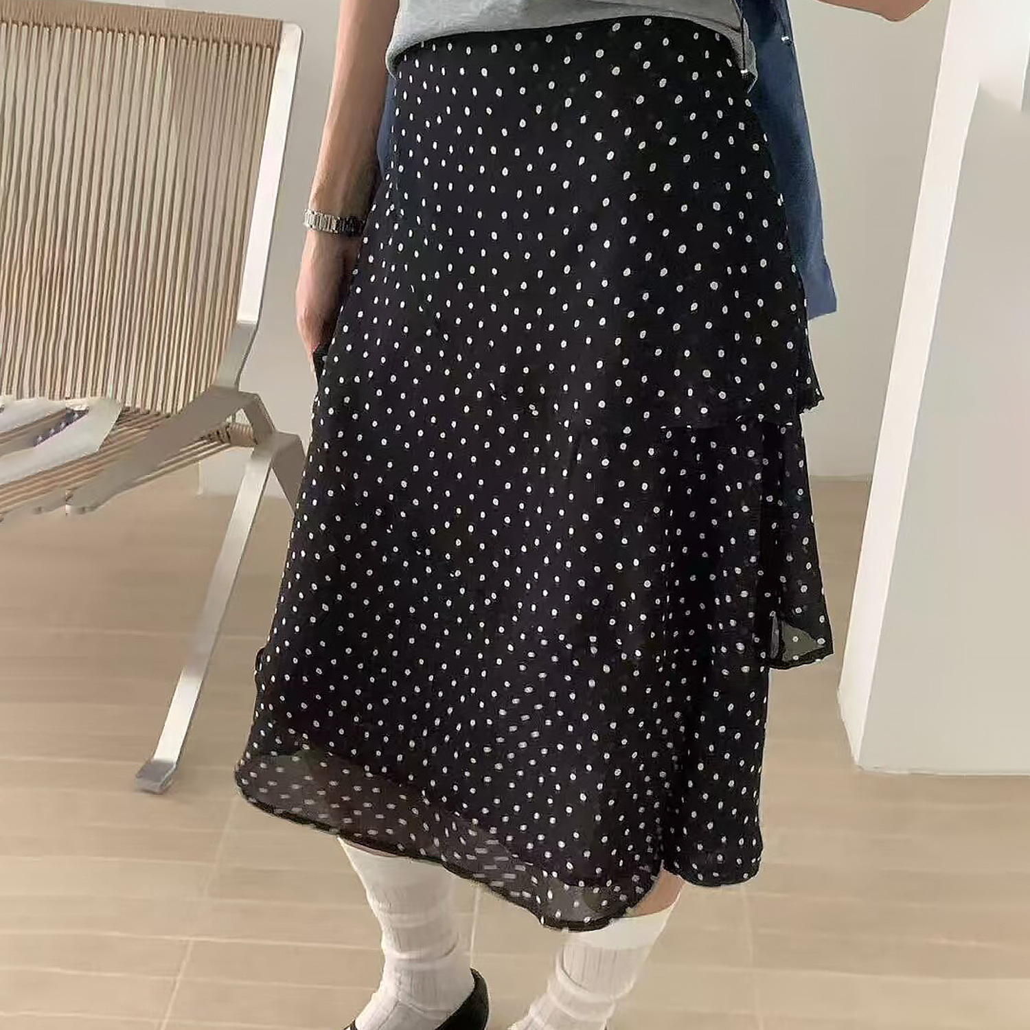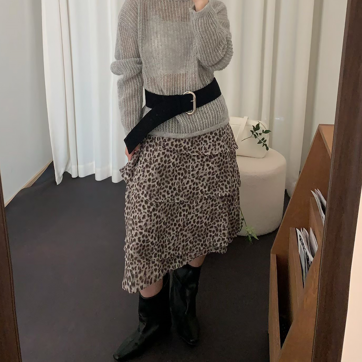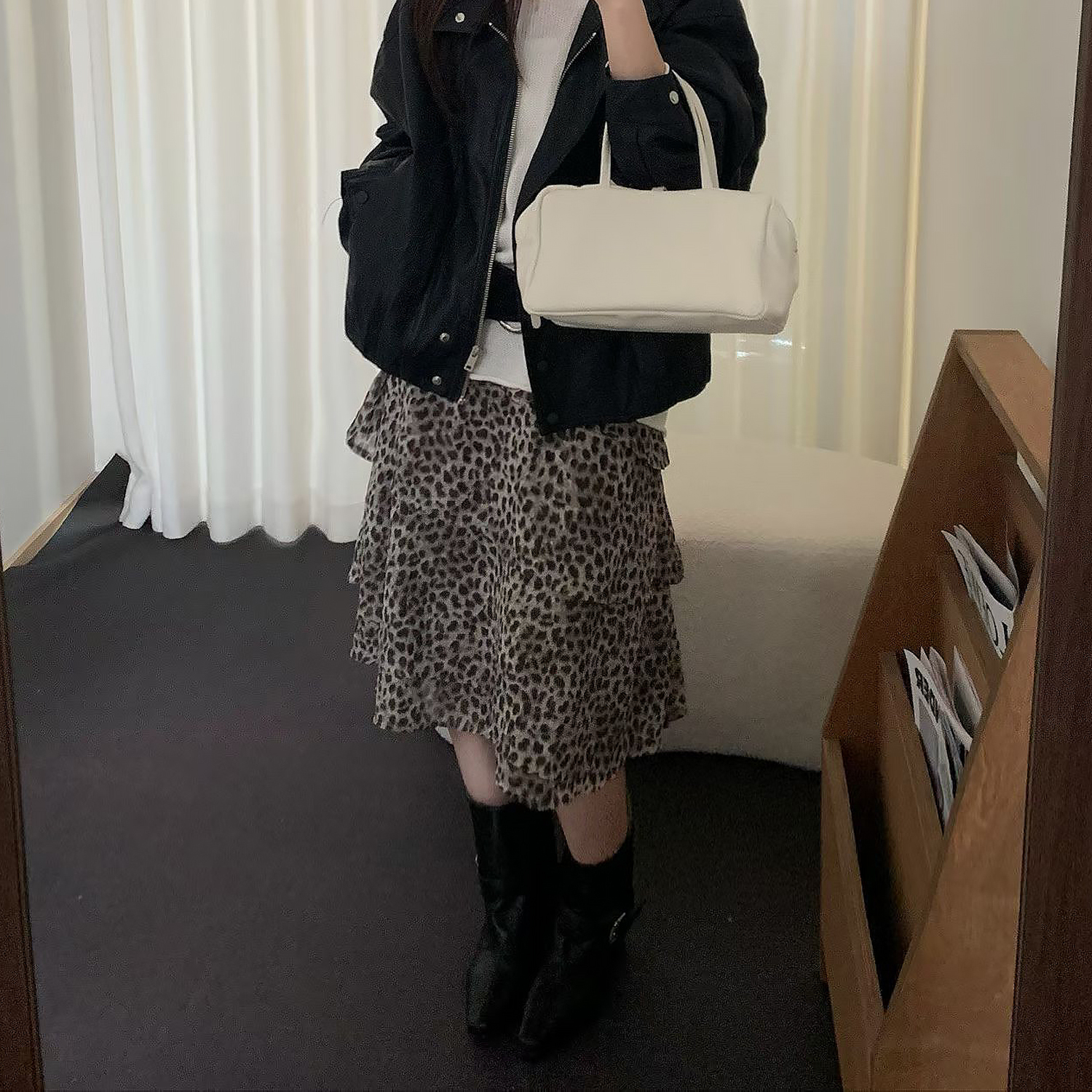 실사 겨울 켜기 새로운 두꺼운 부드러운 작은 꽃무늬 프릴 한 마디 디스플레이 다리 길이 2025 겨울 분위기 센스 반신 스커트