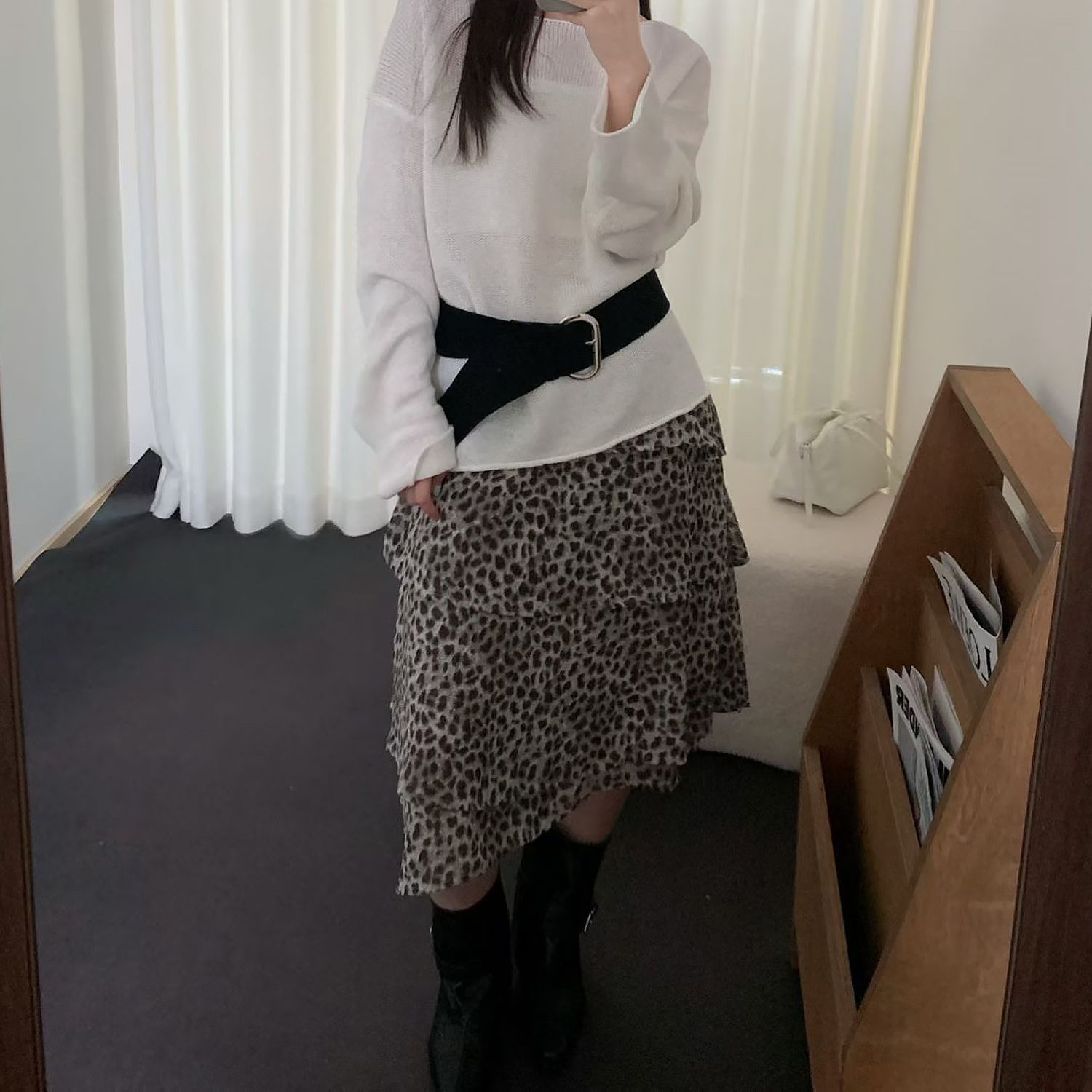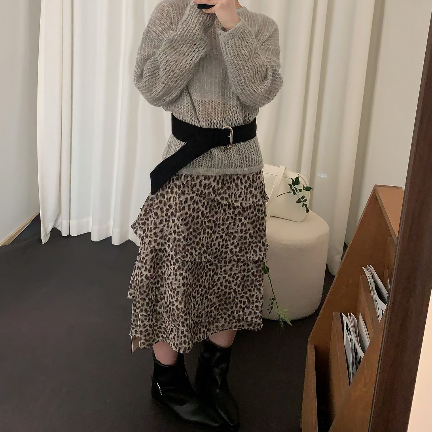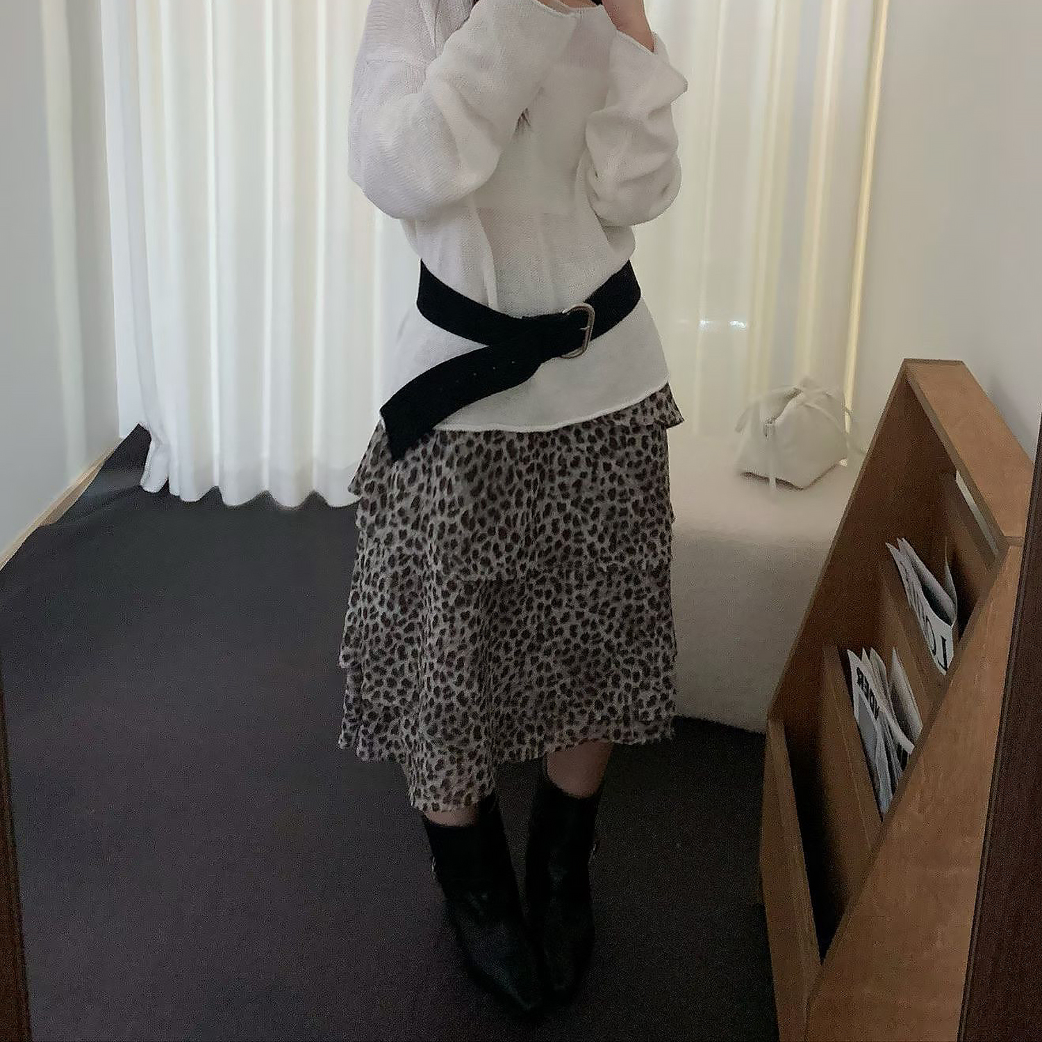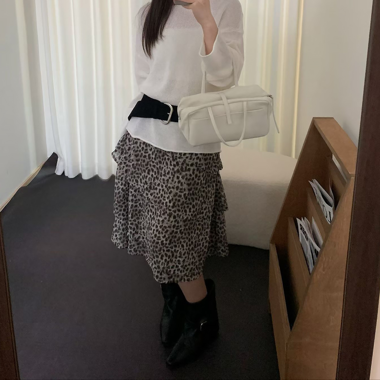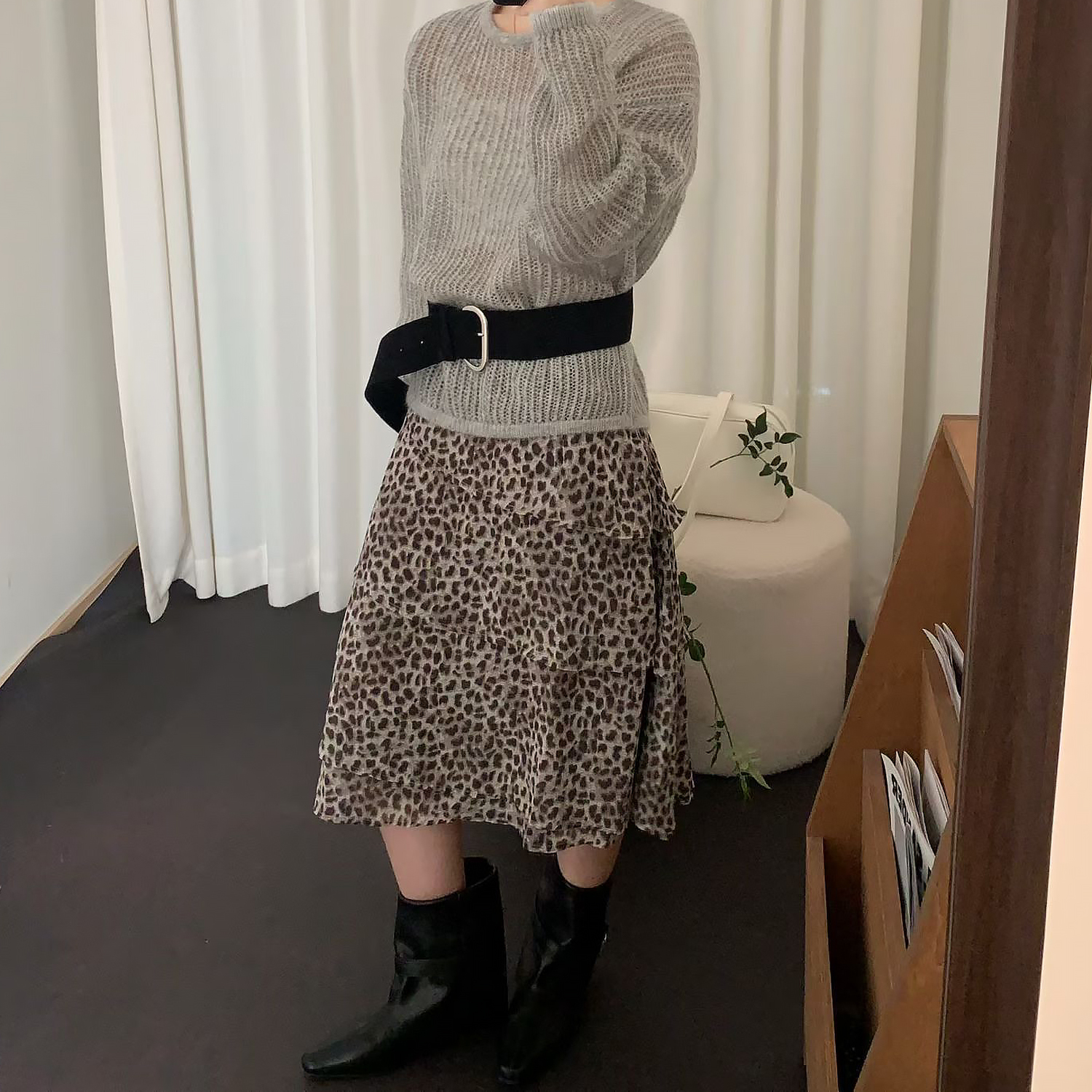 실사 겨울 켜기 새로운 두꺼운 부드러운 작은 꽃무늬 프릴 한 마디 디스플레이 다리 길이 2025 겨울 분위기 센스 반신 스커트