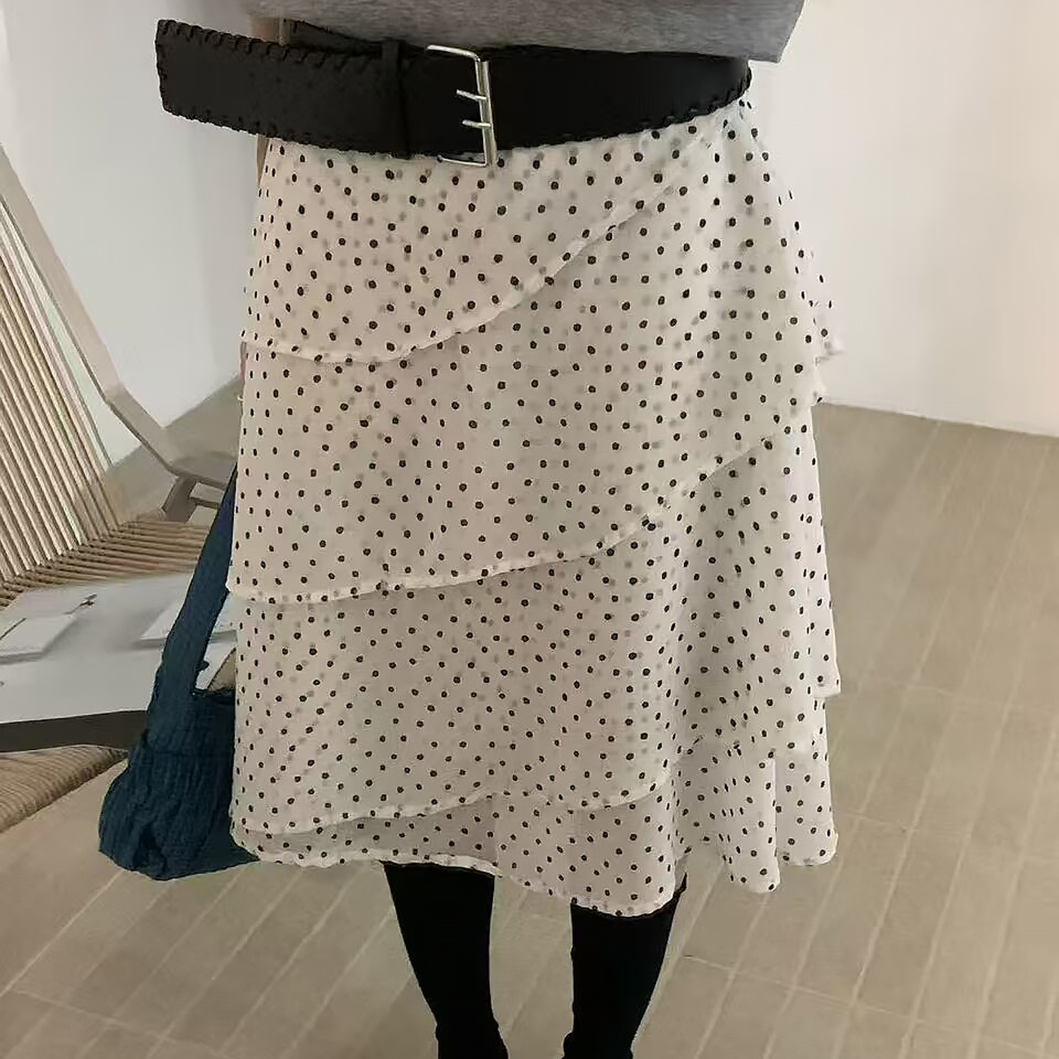 실사 새로운 프랑스식 낭만주의 층 A라인 스커트 프릴 퍼프 스커트 중간 스커트 반신 스커트 새로운 망사 치마