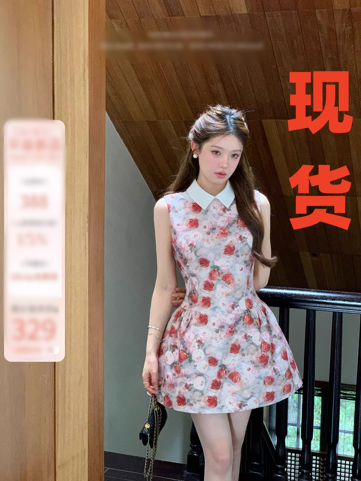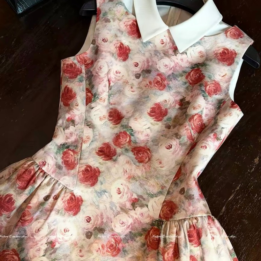 q 여자 집 3 23 꽃 증서 로즈 가든 길다 미니 스커트 더블 버전 분위기 센스 빨간색 휴가 꽃무늬 드레스