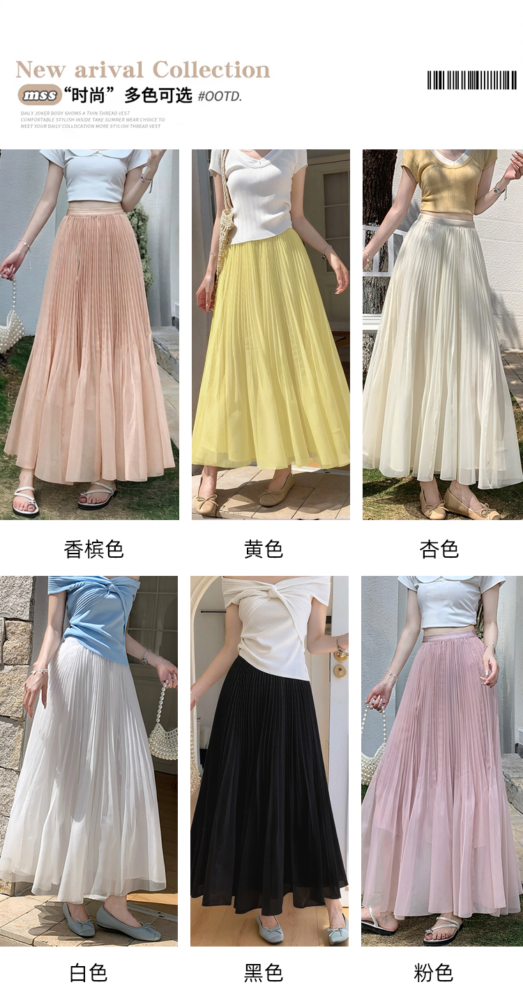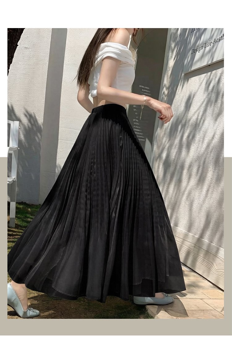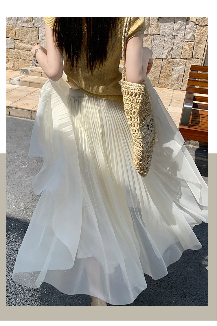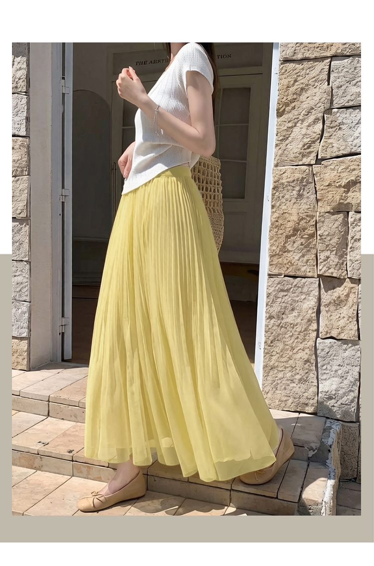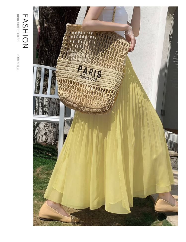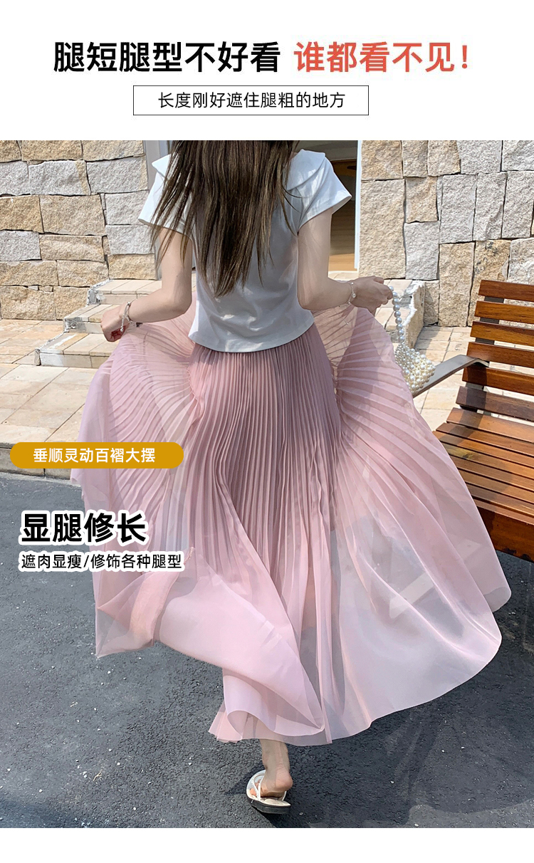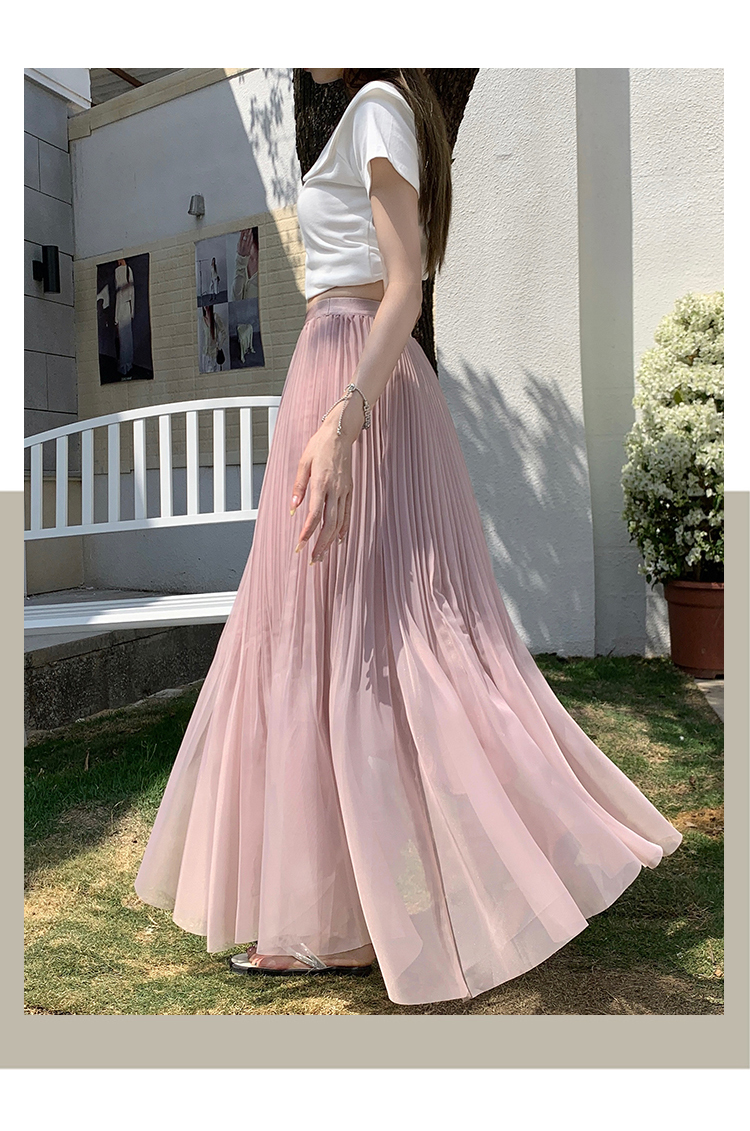 빛 럭셔리 도루 가을 센스 플리츠 쉬폰 반신 스커트 여성 여름 큰 진자 하이웨이스트 슬림해 보이는 한 마디 표지 넓적 다리 플리츠 롱 스커트
