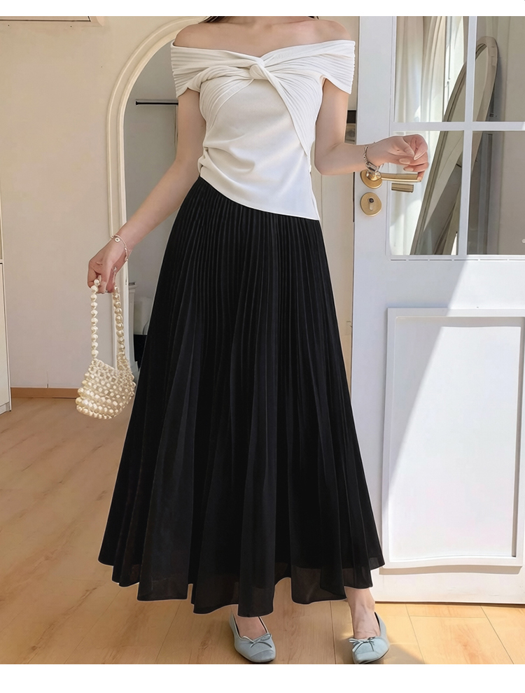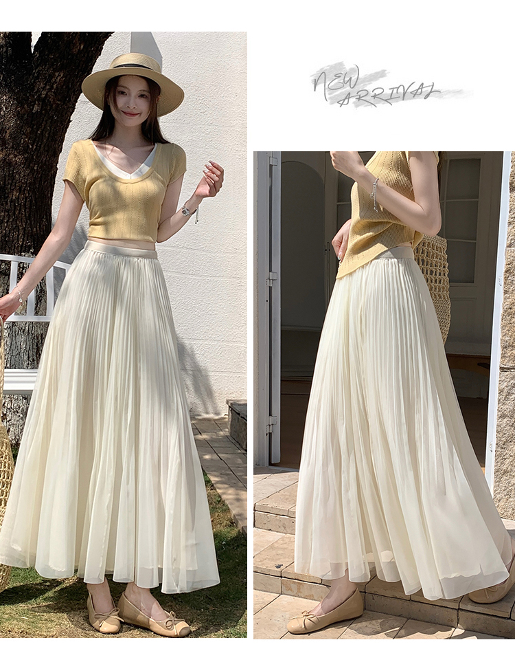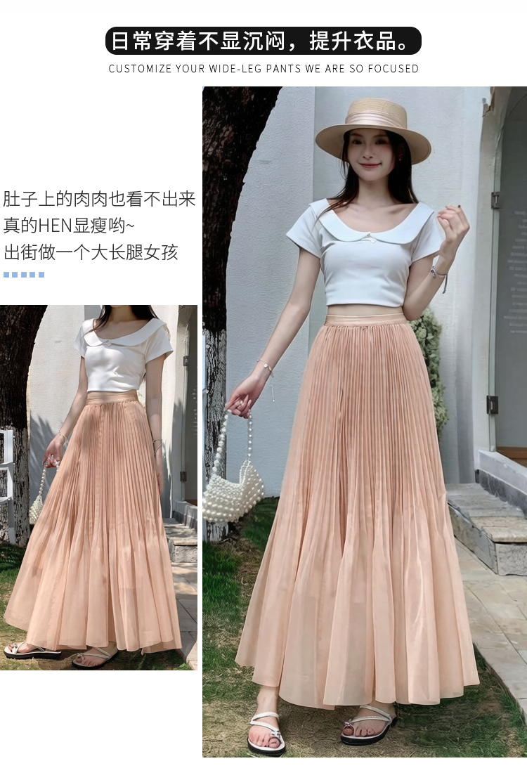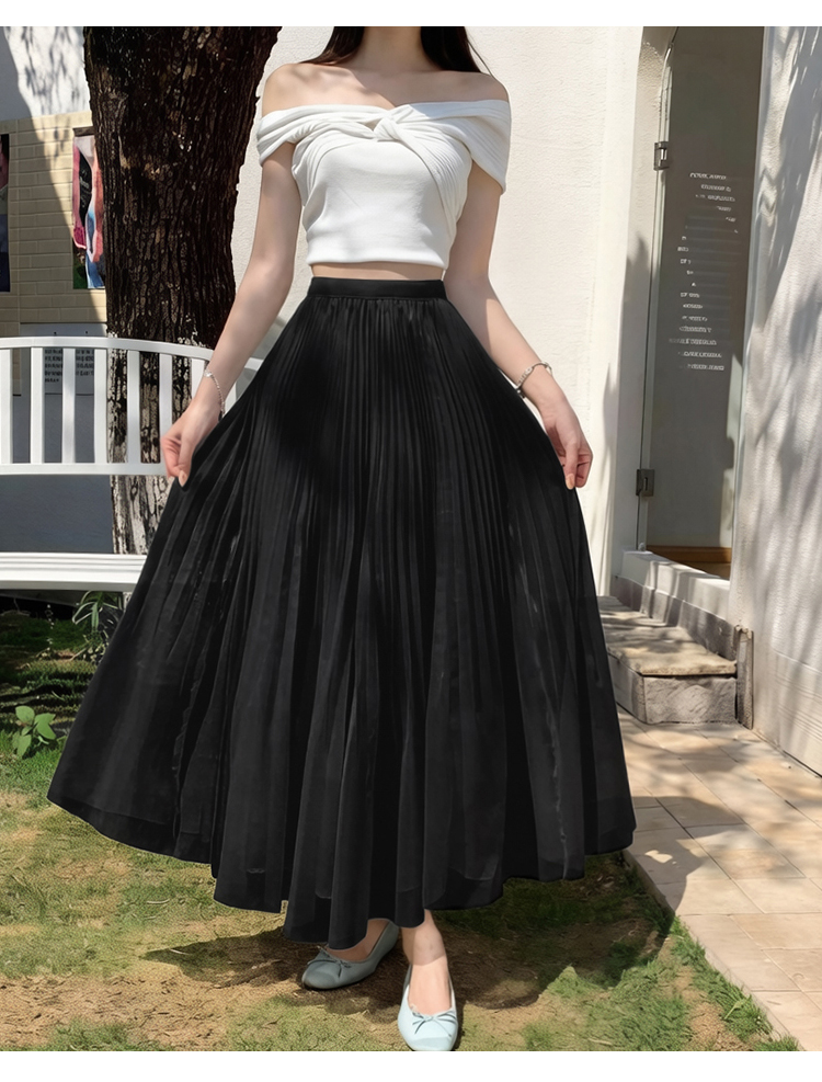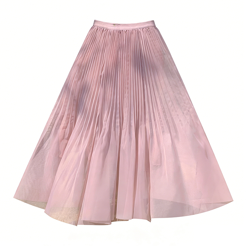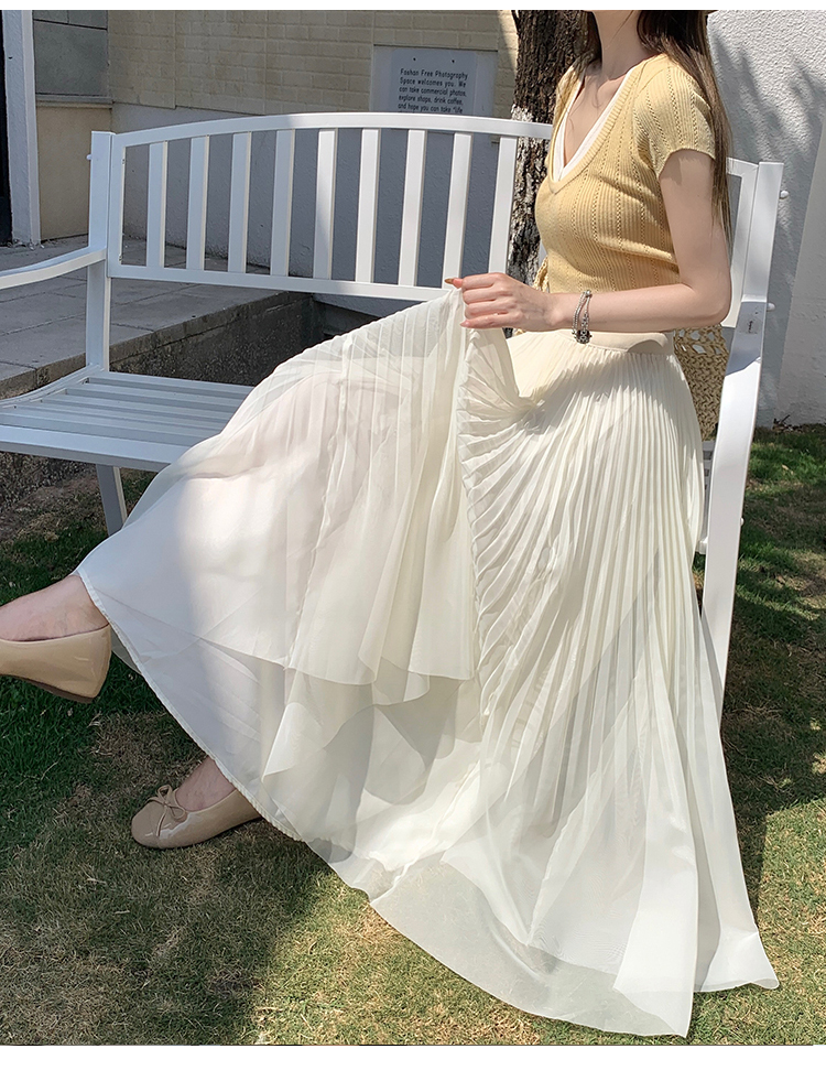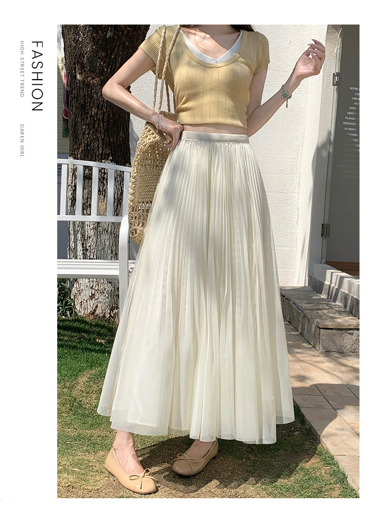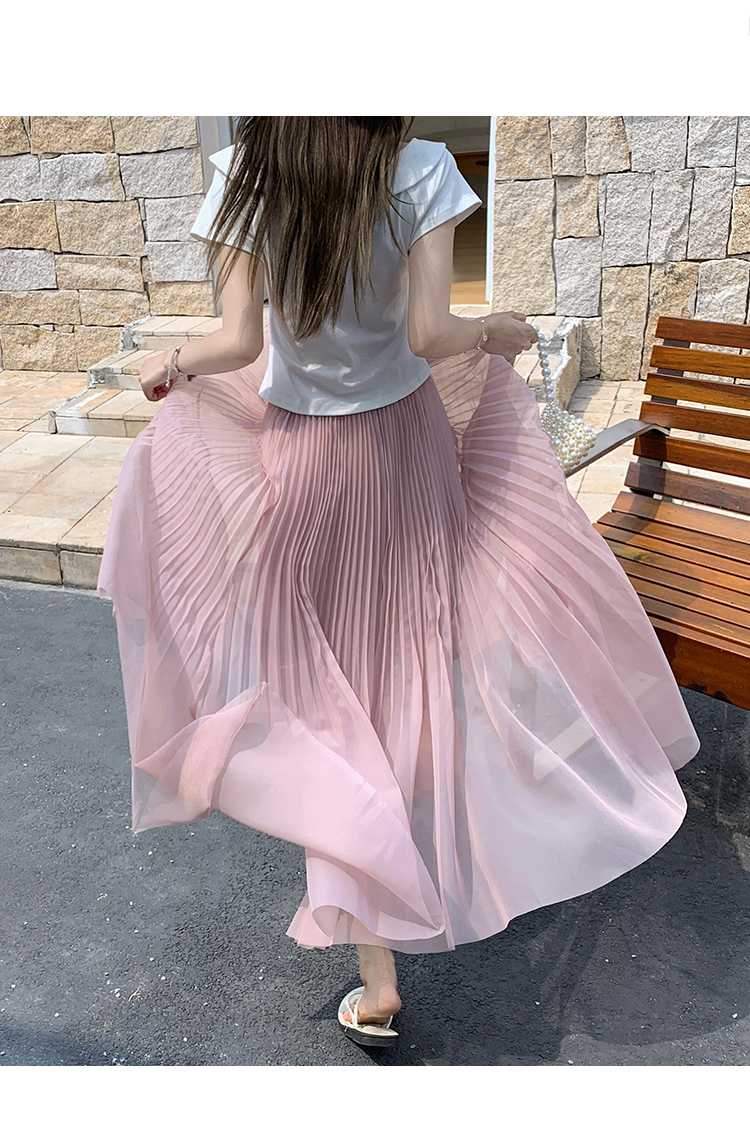 빛 럭셔리 도루 가을 센스 플리츠 쉬폰 반신 스커트 여성 여름 큰 진자 하이웨이스트 슬림해 보이는 한 마디 표지 넓적 다리 플리츠 롱 스커트