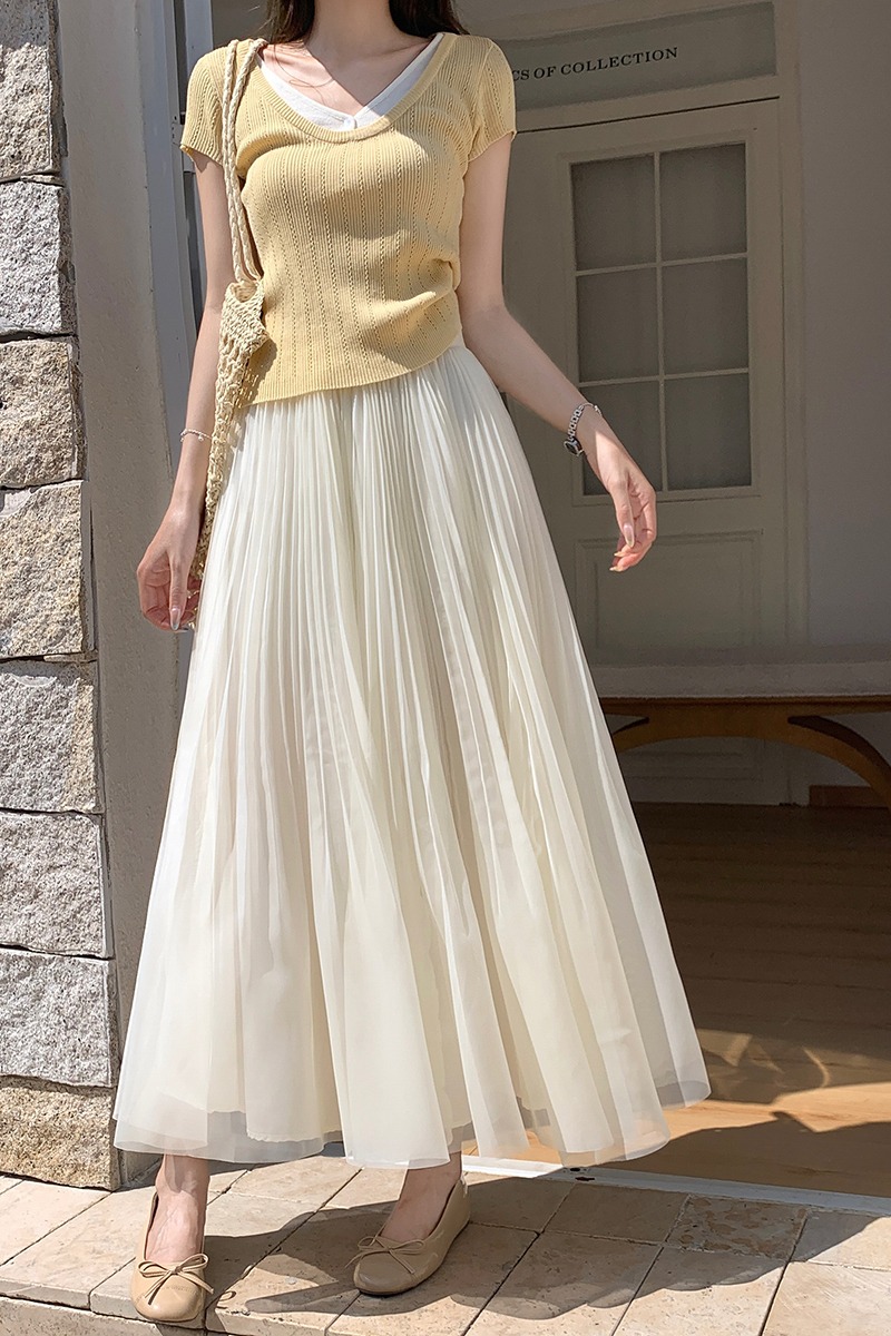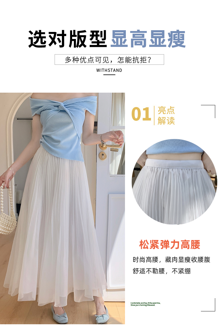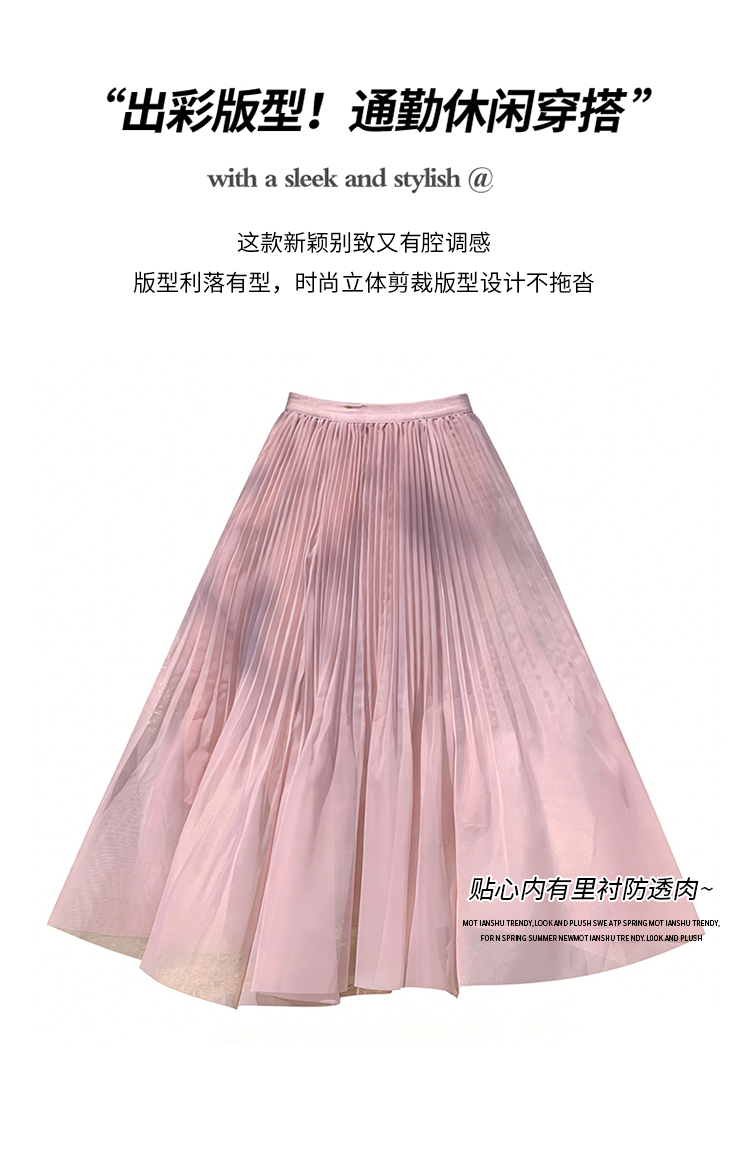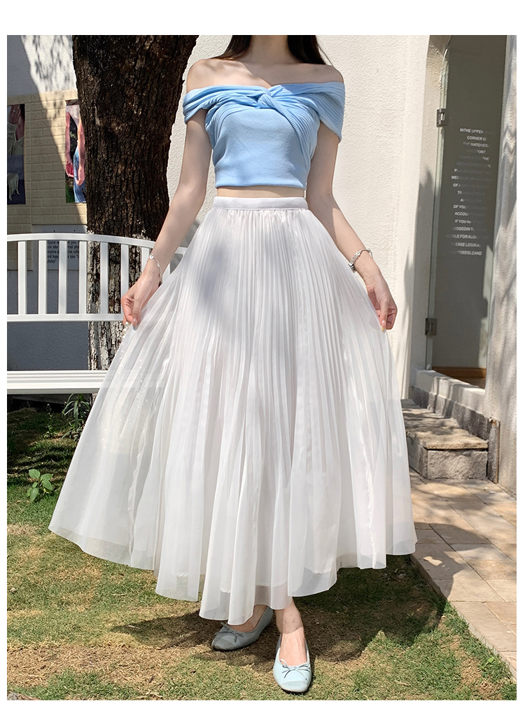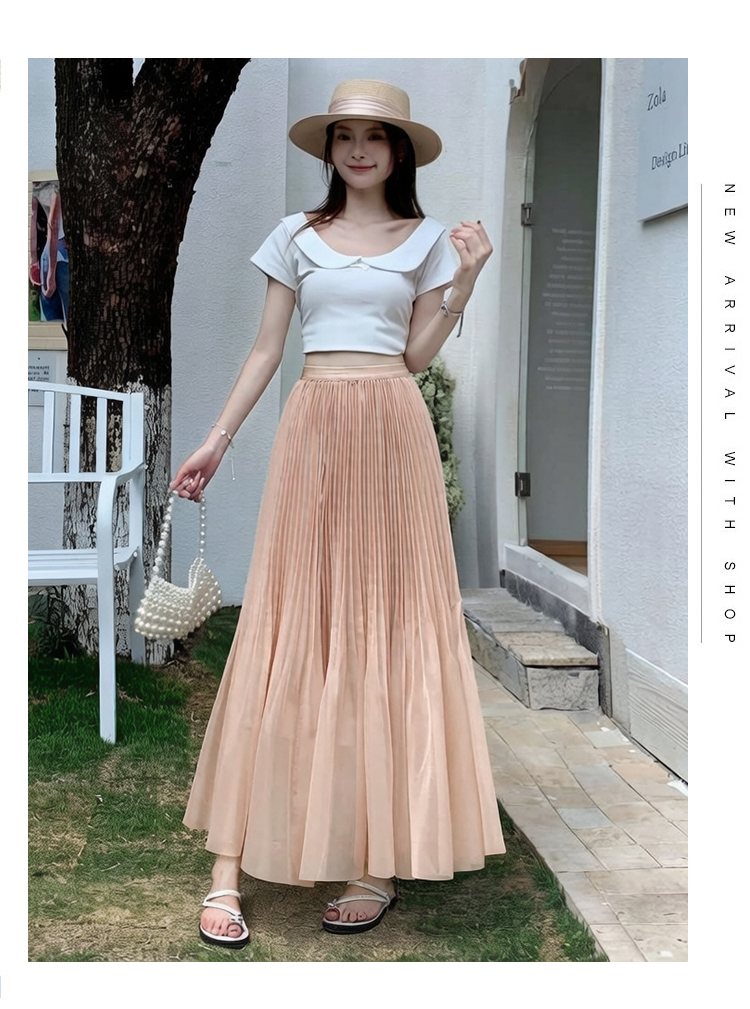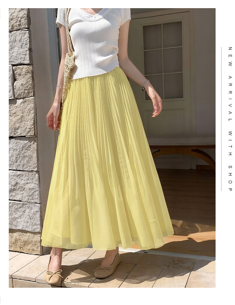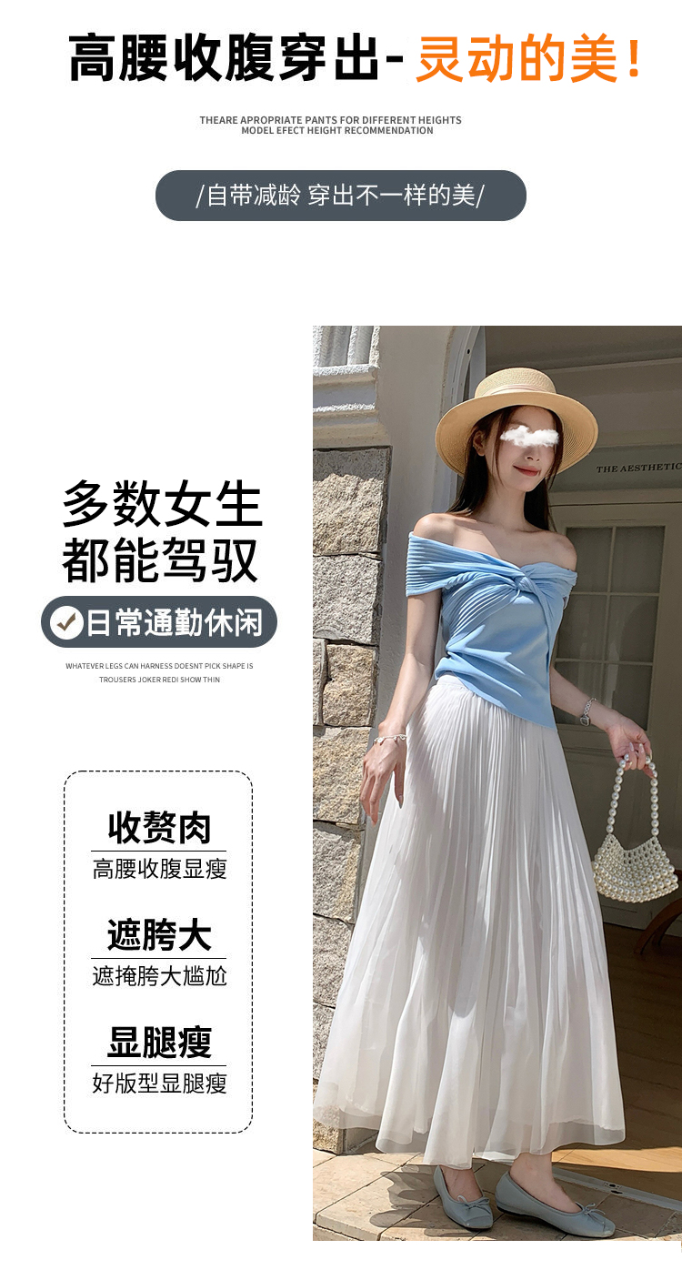 빛 럭셔리 도루 가을 센스 플리츠 쉬폰 반신 스커트 여성 여름 큰 진자 하이웨이스트 슬림해 보이는 한 마디 표지 넓적 다리 플리츠 롱 스커트